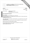 w w ap eP m e tr .X w om .c s er UNIVERSITY OF CAMBRIDGE INTERNATIONAL EXAMINATIONS General Certificate of Education Advanced Subsidiary Level and Advanced Level 9700/13 BIOLOGY Paper 1 Multiple Choice May/June 2013 1 hour Additional Materials: *9832585139* Multiple Choice Answer Sheet Soft clean eraser Soft pencil (type B or HB is recommended) READ THESE INSTRUCTIONS FIRST Write in soft pencil. Do not use staples, paper clips, highlighters, glue or correction fluid. Write your name, Centre number and candidate number on the Answer Sheet in the spaces provided unless this has been done for you. DO NOT WRITE IN ANY BARCODES. There are forty questions on this paper. Answer all questions. For each question there are four possible answers A, B, C and D. Choose the one you consider correct and record your choice in soft pencil on the separate Answer Sheet. Read the instructions on the Answer Sheet very carefully. Each correct answer will score one mark. A mark will not be deducted for a wrong answer. Any rough working should be done in this booklet. Electronic calculators may be used. This document consists of 16 printed pages. IB13 06_9700_13/5RP © UCLES 2013 [Turn over 2 1 An electron microscope has a higher resolution than a light microscope. Which is a result of the higher resolution? 2 A the ability to produce larger images of cells B the ability to see cristae in mitochondria C the ability to see mRNA in all cells D the ability to see the nucleus in eukaryotes The diagram shows a chloroplast drawn from an electronmicrograph. X Y The length of the chloroplast from X to Y is 5000 nm. What is the magnification of the drawing of the chloroplast? A 3 ×100 B ×1000 C ×10 000 D ×100 000 Eyepiece graticules and stage micrometers are used to measure cells. Which is the correct reason why an eyepiece graticule is calibrated? A An eyepiece graticule can be used to make measurements. B An eyepiece graticule is magnified by the objective lens. C An eyepiece graticule magnifies the specimen. D An eyepiece graticule makes comparisons. © UCLES 2013 9700/13/M/J/13 3 4 The electronmicrograph shows part of two cells. W X Y Which of the labelled features enable these cells to be identified as eukaryotic? A 5 W only B X only C W and X only D W, X and Y When mucus is secreted from a goblet cell in the trachea, these events take place. 1 addition of carbohydrate to protein 2 fusion of the vesicle with the plasma membrane 3 secretion of a glycoprotein 4 separation of a vesicle from the Golgi apparatus What is the sequence in which these events take place? 6 A 1→4→2→3 B 1→4→3→2 C 4→1→2→3 D 4→1→3→2 What is a function of the smooth endoplasmic reticulum? A antibody synthesis B enzyme synthesis C protein synthesis D steroid synthesis © UCLES 2013 9700/13/M/J/13 [Turn over 4 7 Two solutions, 1 and 2, one containing starch and sucrose, and the other containing glucose and protein, were tested with a variety of reagents to confirm their identity. The table shows the conclusions from the results recorded for the various tests. Which row identifies the two solutions? 8 boil with Benedict’s solution after acid hydrolysis add iodine solution boil with Benedict’s solution 1 2 1 2 1 2 1 2 key A + – + – – + – + B – + + – + – – + + = biological molecule present C + – – + + – – + D – + + – + + + – add biuret solution – = biological molecule absent The structural formula of a carbohydrate molecule can be shown as: H C O H C OH HO C H HO C H H C OH CH2OH Which of the molecules could be represented by this formula? A 1 β-glucose 2 deoxyribose 3 ribose 1 only © UCLES 2013 B 1 and 2 only C 1 and 3 only 9700/13/M/J/13 D 2 and 3 only 5 9 The diagram shows part of a molecule of a carbohydrate formed by glucose. What is the name of the molecule? A amylose B cellulose C glycogen D starch 10 A naturally occurring polysaccharide is a branched chain of α-glucose. The straight parts of the molecule are linked by α-1, 6 glycosidic bonds with a small number of branches which are linked by either an α-1, 3 glycosidic bond or an α-1, 4 glycosidic bond. Which polysaccharide has a structure most similar to that described? A amylopectin B amylose C cellulose D glycogen 11 Which molecule has properties that are not dependent on hydrogen bonds? A cellulose B glycogen C haemoglobin D water © UCLES 2013 9700/13/M/J/13 [Turn over 6 12 What occurs during protein denaturation by extremes of pH? 1 breakage of peptide bonds leading to loss of shape of active site 2 disruption of existing ionic bonds between amino acid R-groups 3 loss of α-helical regular arrangement of amino acids 4 loss of protein tertiary structure resulting in loss of function A 1, 2, 3 and 4 B 2, 3 and 4 only C 1 and 3 only D 2 and 4 only 13 When the ice on the surface of a pond melts, which changes benefit the ecosystem in the pond? 1 The melted water sinks to the bottom of the pond. 2 The water from the bottom of the pond brings dissolved minerals to the surface. 3 Warmer water dissolves more oxygen for the aerobic organisms. A 1, 2 and 3 B 1 and 2 only C 1 and 3 only D 2 and 3 only 14 How does increasing substrate concentration affect the rate of an enzyme-catalysed reaction in the presence of a competitive inhibitor? A The rate of the reaction decreases. B The rate of the reaction decreases initially and then recovers. C The rate of the reaction increases. D The rate of the reaction is not affected. © UCLES 2013 9700/13/M/J/13 7 15 Four students investigated the effect of catalase on hydrogen peroxide. Each student started a digital clock at the beginning of the experiment and stopped the clock after 25 bubbles had been counted. The time recorded on the digital clock is shown below. hours minutes seconds hundredths 00 01 33 54 Which student recorded the results to the best level of precision for the apparatus used? student time recorded A 1.34 minutes B 1 minute 33.54 seconds C 94 seconds D 93.54 seconds 16