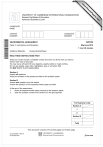 w w ap eP m e tr .X w om .c s er UNIVERSITY OF CAMBRIDGE INTERNATIONAL EXAMINATIONS General Certificate of Education Advanced Subsidiary Level *8559017704* 8291/22 ENVIRONMENTAL MANAGEMENT Paper 2 Hydrosphere and Biosphere May/June 2010 1 hour 30 minutes Additional Materials: Answer Booklet/Paper READ THESE INSTRUCTIONS FIRST Write your Centre number, candidate number and name on all the work you hand in. Write in dark blue or black pen. You may use a soft pencil for any diagrams, graphs, tables or rough working. Do not use staples, paper clips, highlighters, glue or correction fluid. DO NOT WRITE IN ANY BARCODES. Section A Answer all questions. Write your answers in the spaces provided on the question paper. Section B Answer one question from this section. Answer the question on the separate answer paper provided. At the end of the examination, 1. fasten all separate answer paper securely to the question paper; 2. enter the question number from Section B in the grid opposite. For Examiner’s Use Section A 1 2 Section B Total This document consists of 11 printed pages and 1 blank page. DC (SLM/SW) 17621/4 © UCLES 2010 [Turn over 2 Section A Answer all questions in this section. Write your answers in the spaces provided. 1 (a) What is meant by the terms biome, net primary productivity (NPP) and biomass? biome ............................................................................................................................... .......................................................................................................................................... NPP ................................................................................................................................. .......................................................................................................................................... biomass ........................................................................................................................... ...................................................................................................................................... [3] (b) Fig. 1.1 shows the locations of some of the world’s major biomes. tropical rainforest boreal forest or taiga temperate grassland savanna desert tundra Fig. 1.1 (i) Name one biome associated with each of the following climatic conditions: • hot summers, warm winters and a small amount of summer rainfall ........................................................................................................................... • cool short summers, very cold winters, small amounts of summer rainfall ........................................................................................................................... • hot and moist in every month. ....................................................................................................................... [3] © UCLES 2010 8291/22/M/J/10 For Examiner’s Use 3 (ii) Describe and suggest one reason for the distribution of deserts as shown in Fig. 1.1. For Examiner’s Use .................................................................................................................................. .................................................................................................................................. .................................................................................................................................. .................................................................................................................................. .................................................................................................................................. .............................................................................................................................. [3] (iii) Table 1.1 contains information on net primary productivity (NPP). Table 1.1 biome net primary productivity / kJ m–2 tropical rainforest 9000 savanna 3000 deciduous temperate forest 6000 boreal forest 3500 temperate grassland 2000 polar tundra 600 desert <200 With reference to Table 1.1 describe how NPP depends upon temperature and precipitation. .................................................................................................................................. .................................................................................................................................. .................................................................................................................................. .................................................................................................................................. .................................................................................................................................. .................................................................................................................................. .................................................................................................................................. .............................................................................................................................. [4] © UCLES 2010 8291/22/M/J/10 [Turn over 4 (c) Temperate grasslands such as the Prairies and the Pampas can be regarded as marginal areas that should not be over-farmed. Fig. 1.2 illustrates mechanised agriculture of the American Prairies and the climate of the area. Average annual precipitation: 516 mm Mean temperature: 2.5°C °C 40 mm 400 30 350 20 300 10 250 0 200 -10 150 -20 100 -30 50 -40 J F M A M J J A S ON D 0 Fig. 1.2 (i) Briefly explain why the climate of this area is regarded as semi-arid. .................................................................................................................................. ........................................................................