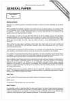 w w m e tr .X w 8004 General Paper November 2006 ap eP GENERAL PAPER om .c s er Paper 8004/01 Paper 1 General comments There are four important aspects of examination technique to which far too many candidates pay insufficient attention. When candidates have selected a question, they should read and re-read the question very carefully. They must be absolutely certain of the meaning of every word in it and of the particular demands and emphases of the question. To write in general, descriptive terms on the topic area with little or no reference to the question as set, will mean low marks for content. The next stage is to draw up an essay plan which sets out the points in logical sequence with appropriate paragraph headings. It is not a good idea to write an essay of two distinct parts where the points made in the second section would seem to contradict those in the first part, rather like a reversed mirror image. Major points need not be ‘black and white’; they can contain provisos or some acknowledgement of other viewpoints. When writing the actual essay, candidates should make their major points all the more credible and convincing by supporting them with illustrative examples, drawn where appropriate from local, national and/or international sources. The final aspect is to leave a good amount of time to run a thorough and mechanical check of the English in each sentence so that careless errors do not limit the mark that can be awarded for Use of English. The content of many essays this session was too descriptive, and many candidates missed opportunities to be analytical. A common fault across the whole ability range was not answering the actual question on the examination paper by simply writing in very general terms about the particular topic area. Many candidates present themselves for the examination armed with over-learnt material on selected topics. This is only advisable if candidates possess the necessary skill to tailor that material to the particular demands of the set question. An inability to do this satisfactorily was seen in many essays, especially responses to the question on technology in the workplace. Many candidates simply presented rehearsed answers on modern technology; the vital link to the workplace, which the question requires, was frequently lost or even totally ignored. Candidates should use only quotations which are apt and appropriate to the topic and acknowledge their source. The widespread practice of producing a dubious quotation of unattributed origin brings no reward, especially when it does not really fit the context. Use of time A small number of the second essays were clearly rushed and sometimes incomplete. Rubric errors It is pleasing to note that these were very rare indeed. Use of English A considerable number of candidates failed to obtain good marks in the Use of English element because of frequent mistakes in punctuation, grammar and, to a lesser extent, in spelling. Clearly, this is sometimes due to lack of knowledge but, in many cases, it is because of simple carelessness which can be relatively easily avoided by a final, mechanical check, sentence by sentence. Common basic errors included 1 8004 General Paper November 2006 ● ● ● ● ● ● non-agreement of subject and verb incorrect tenses missing endings on plural nouns; incorrect comparatives e.g. more easier inconsistent use of ‘one’ (not followed by his/her/their) inappropriate use of the definite and indefinite article arbitrary use of ‘the latter’ spelling errors of commonly confused words e.g. there/their, to/too, here/hear and practise/practice. This year, examiners felt the use of vocabulary was generally satisfactory. However, there are still quite a number of candidates who are absolutely determined to use favourite or newly acquired words in their essays and end up using them inappropriately, thus achieving the opposite of what they intended. The use of idiom remains a problem. Candidates should not be tempted to be unnecessarily ambitious in this area. They should only use idiom when they are absolutely sure of its linguistic accuracy and appropriate tone in the relevant context. Candidates should acquire, learn and then use vocabulary and idiom in context. This also helps learners to have accurate recall. Lists of words and collections of sayings and idioms are of little benefit if candidates do not know how to use them correctly. Comments on specific questions Section A Question 1 Not a popular choice. Some answers described ‘bad’ laws, but made scant reference to the lawmakers or their interests. Better answers looked carefully at how particular groups might be disadvantaged in society. Weaker responses referred to laws which affected the candidate or to other legislation of relatively minor importance and some wrote off the point. Question 2 This was quite a popular question which attracted positive and negative responses depending on circumstances in the relevant home country. Some candidates wrote harrowingly about the bleak prospects in their country and doubted the relevance of the question as official statistics indicated that most of the population would be dead by their late thirties By contrast, cultural respect for older people, more common in some countries than others, did suggest a comfortable and comforting old age in the family bosom, even if state support was felt insufficient. More able candidates commented on varying attitudes across class divisions. Question 3 This was not overly popular but the candidates who opted to answer it were able to draw on a reasonable range of historical knowledge but were often more descriptive than analytical. Many candidates chose to ignore ‘folly’ and their responses lacked convincing detail. The 1914-18, 1939-35 and Iraq wars figured quite prominently in many answers but the thrust of the question was often neglected Question 4 This was a fairly popular question with some strong views expressed, u