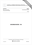 w w ap eP m e tr .X w 9696/01 For Examination from 2010 Paper 1 Core Geography SPECIMEN MARK SCHEME 3 hours MAXIMUM MARK: 100 This document consists of 13 printed pages and 1 blank page. © UCLES 2008 [Turn over om .c GEOGRAPHY s er UNIVERSITY OF CAMBRIDGE INTERNATIONAL EXAMINATIONS General Certificate of Education Advanced Subsidiary Level and Advanced Level 2 Section A Hydrology and fluvial geomorphology 1 Fig. 1 shows some features associated with the valley of a river channel. (a) (i) Name and briefly describe the feature marked as A. [2] A is an oxbow lake or cut-off. It is a curved area of stagnant water detached from the main channel. (ii) Name and briefly describe the feature marked as B. [2] B is a slip off slope or point bar – an area of sand and gravel located within the inside of a meander bend. (b) Explain the development of this river channel and one of the landforms shown on Fig.1. [6] The channel is a meandering channel and can be explained in terms of helicoidal flow and pool and riffle sequences. Most are likely to choose to explain oxbow lakes, in terms of the erosion of the neck of the meander by faster currents on the outside of the bends until cut through and attendant channel straightening with a detached horse shoe lake that is gradually silted up. Some may choose point bars – deposition of sediment on the inside of bends where the current slows. Few will deal with the steep slopes and old gravels that represent past meander migration of the channel. [Total: 10] Atmosphere and weather 2 Fig. 2 shows the mean (average) temperatures (°C) in July. (a) Describe two differences in the pattern of the isotherms between the northern and southern hemispheres shown in Fig. 2. [4] Higher temperatures (30°C) established over Africa-Asia in the northern hemisphere. Northward shift of isotherms of northern summer. Greater latitudinal distortion of isotherms over land and sea in the northern hemisphere. Lower temperatures (-20°C) in Antarctica. Any two for the marks. (b) Describe and explain the differences between the temperatures of land masses and sea areas. [6] In the southern hemisphere (winter) isotherms displaced to N over seas, whereas in the northern hemisphere (summer) they are displaced northward over land areas. This is due to the different thermal capacities of land and sea. Sea heats up more slowly in summer (in N) and cools more slowly in southern hemisphere (winter) as more heat is retained in oceans. Conversely land heats up and loses its heat at a faster rate. [Total: 10] © UCLES 2008 9696/01/SM/10 3 Rocks and weathering 3 Fig. 3 shows a classification of mass movements according to water content and velocity. (a) Give the water content and range of velocities that are associated with: (i) debris flows; Between 1 cm per second and 10 m per sec, high water content. (ii) rock falls. [2] Between 1 m per sec 100 m per sec, low water content. (b) Describe the nature of solifluction and explain under what conditions it occurs. [4] Solifluction is the slow down slope movement (1 mm per year to under 1 cm per day) of materials that have high water content, usually derived from seasonal thawing. Associated with cold climates. (c) Describe soil creep and explain why it occurs at such low velocities. [4] Soil creep is the very gradual down slope movement of soil under gravity. Some will ascribe it to the process of heave whereby particles are lifted by frost action at an angle to the slope and fall back upon melting. Others may cite general slow viscous movement or slippage that is insufficient to bring about shear or slope failure. It is slow because of low angles and cohesion of materials. [Total: 10] © UCLES 2008 9696/01/SM/10 [Turn over 4 Population 4 Fig. 4 shows age/sex pyramids for China, an LEDC in Asia, in 1990 and predicted for 2040. (a) Identify two main features of the age/sex pyramid in Fig. 4A. [2] Credit (1) each of two features, wide base, narrow top, balanced M/F, exceptionally large 20-24 cohort, transitional shape, even stepped appearance above 40, other (mark on merit). Please do not accept: progressive or regressive; youthful or aged; or anything about vital rates (BR/DR). (b) Draw a simple labelled diagram to show the possible shape of China’s age/sex pyramid in 2015. [3] Mark on impression, looking for a narrowing base, the filling out of the upper part of the pyramid and possibly the 20-24 cohort now aged 45-50. A full answer has good shape, labels both axes and may annotate. Accept either an age/sex diagram as in figure or an outline structure. (c) Explain the predicted increase by the year 2040 in the percentage of China’s population aged over 40 years. [5] By a combination of reduction in fertility/drop in birth rate and of the increase in life expectancy/reduction in mortality. Suggest credit fertility/BR (2-3) and LE/mortality (3-2). Whilst most candidates will see a single explanation not both, the more aware will recognise an ageing population. China-specific material is acceptable but may be a snare to some given the dates here; a general demographic explanation is fully acceptable as the syllabus does not require the study of China. [Total: 10] © UCLES 2008 9696/01/SM/10 5 Migration / Settlement dynamics 5 Fig. 5 shows a model of how migration within a country may occur in steps. A behavioural model derived from E G Ravenstein (1885). (a) Identify one similarity and one difference between movements A and C on Fig. 5. [2] similarity: rural source/origin or capital city destination (1) difference: A in three steps but C direct or A further (1) (b) Outline two reasons why migrants may move in steps. [3] Credit (1) or (2) in combination such reasons as, cost means of transport or networks familiarity (nearer to home)/unfamiliarity (the unknown) intervening opportunities review outcome and make further decisions lack of information about ultimate destination other barriers or obstacles following friend/family other (c) Using examp
