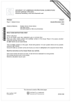w w ap eP m e tr .X w om .c s er UNIVERSITY OF CAMBRIDGE INTERNATIONAL EXAMINATIONS General Certificate of Education Advanced Subsidiary Level and Advanced Level 9702/11 PHYSICS Paper 1 Multiple Choice October/November 2013 1 hour Additional Materials: *9351859288* Multiple Choice Answer Sheet Soft clean eraser Soft pencil (type B or HB is recommended) READ THESE INSTRUCTIONS FIRST Write in soft pencil. Do not use staples, paper clips, highlighters, glue or correction fluid. Write your name, Centre number and candidate number on the Answer Sheet in the spaces provided unless this has been done for you. DO NOT WRITE IN ANY BARCODES. There are forty questions on this paper. Answer all questions. For each question there are four possible answers A, B, C and D. Choose the one you consider correct and record your choice in soft pencil on the separate Answer Sheet. Read the instructions on the Answer Sheet very carefully. Each correct answer will score one mark. A mark will not be deducted for a wrong answer. Any working should be done in this booklet. Electronic calculators may be used. This document consists of 24 printed pages. IB13 11_9702_11/5RP © UCLES 2013 [Turn over 2 Data c = 3.00 × 108 m s–1 speed of light in free space, permeability of free space, µ0 = 4π × 10–7 H m–1 permittivity of free space, ε0 = 8.85 × 10–12 F m–1 ( 1 = 8.99 × 109 m F–1) 4πε 0 elementary charge, e = 1.60 × 10–19 C the Planck constant, h = 6.63 × 10–34 J s unified atomic mass constant, u = 1.66 × 10–27 kg rest mass of electron, me = 9.11 × 10–31 kg rest mass of proton, mp = 1.67 × 10–27 kg molar gas constant, R = 8.31 J K–1 mol–1 the Avogadro constant, NA = 6.02 × 1023 mol–1 the Boltzmann constant, k = 1.38 × 10–23 J K–1 gravitational constant, G = 6.67 × 10–11 N m2 kg–2 acceleration of free fall, g = 9.81 m s–2 © UCLES 2013 9702/11/O/N/13 3 Formulae uniformly accelerated motion, s = ut + 1 at 2 2 v 2 = u 2 + 2as work done on/by a gas, W = p∆V gravitational potential, φ = – Gm r hydrostatic pressure, p = ρ gh pressure of an ideal gas, p= simple harmonic motion, a = – ω 2x velocity of particle in s.h.m., v = v0 cos ωt 1 3 Nm <c 2> V v = ±ω electric potential, capacitors in series, V= ( x 02 − x 2 ) Q 4 πε 0r 1 / C = 1 / C1 + 1 / C2 + . . . capacitors in parallel, C = C1 + C2 + . . . energy of charged capacitor, W= resistors in series, R = R1 + R2 + . . . resistors in parallel, 1 QV 2 1 / R = 1 / R1 + 1 / R2 + . . . alternating current/voltage, x = x0 sin ωt radioactive decay, x = x0 exp(–λt) decay constant, λ = 0.693 t1 2 © UCLES 2013 9702/11/O/N/13 [Turn over 4 1 2 Which row shows an SI base quantity with its correct unit? SI base quantity unit A charge coulomb B current ampere C potential difference volt D temperature degree Celsius A pendulum bob is held stationary by a horizontal force H. The three forces acting on the bob are shown in the diagram. 30° T H W The tension in the string of the pendulum is T. The weight of the pendulum bob is W. Which statement is correct? A H = T cos 30° B T = H sin 30° C W = T cos 30° D W = T sin 30° Space for working © UCLES 2013 9702/11/O/N/13 5 3 The drag coefficient Cd is a number with no units. It is used to compare the drag on different cars at different speeds. It is given by the equation Cd = 2F ρv nA where F is the drag force on the car, ρ is the density of the air, A is the cross-sectional area of the car and v is the speed of the car. What is the value of n? A 4 1 B 2 C 3 D 4 A signal that repeats periodically is displayed on the screen of a cathode-ray oscilloscope. The screen has 1 cm squares and the time base is set at 2.00 ms cm–1. What is the frequency of this periodic signal? A 50 Hz B 100 Hz C 125 Hz D 200 Hz Space for working © UCLES 2013 9702/11/O/N/13 [Turn over 6 5 A micrometer screw gauge is used to measure the diameter of a small uniform steel sphere. The micrometer reading is 5.00 mm ± 0.01 mm. What will be the percentage uncertainty in a calculation of the volume of the sphere, using these values? A 6 0.2% B C 0.4% D 0.6% 1.2% One object moves directly from P to R. R Q P In a shorter time, a second object moves from P to Q to R. Which statement about the two objects is correct for the journey from P to R? A They have the same average speed. B They have the same average velocity. C They have the same displacement. D They travel the same distance. Space for working © UCLES 2013 9702/11/O/N/13 7 7 The graph shows how velocity v varies with time t for a bungee jumper. Q v P R 0 0 t At which point is the bungee jumper momentarily at rest and at which point does she have zero acceleration? 8 jumper at rest jumper with zero acceleration A Q P B Q R C R Q D R R An aeroplane travels at an average speed of 600 km h–1 on an outward flight and at 400 km h–1 on the return flight over the same distance. What is the average speed of the whole flight? A 9 B 111 m s–1 167 m s–1 C 480 km h–1 D 500 km h–1 What is meant by the mass and by the weight of an object on the Earth? mass weight A its momentum divided by its velocity the work done in lifting it one metre B the gravitational force on it the property that resists its acceleration C the pull of the Earth on it its mass divided by the acceleration of free fall D the property that resists its acceleration the pull of the Earth on it Space for working © UCLES 2013 9702/11/O/N/13 [Turn over 8 10 An astronaut of mass m in a spacecraft experiences a gravitational force F = mg when stationary on the launchpad. What is the gravitational force on the astronaut when the spacecraft is launched vertically upwards with an acceleration of 0.2 g ? A 1.2 mg B C mg D 0.8 mg 0 11 A beam of α-particles collides with a lead sheet. Each α-particle in the beam has a mass of 6.6 × 10–27 kg and a speed of 1.5 × 107 m s–1. 5.0 × 104 α-particles per second collide with an area of 1.0 cm2 of lead. Almost all of the α-particles a