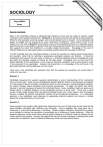 w w e tr .X w 9699 Sociology November 2007 ap eP m SOCIOLOGY om .c s er Paper 9699/01 Essay General comments Many of the candidates achieved a pleasingly high standard of work and the quality of answers overall continues to show gradual improvement. Questions 1, 3 and 6 proved the most popular by equal measure. While the other questions were less popular, each one still attracted a lot of answers. Some candidates still appear to struggle with the concept of the social construction of childhood. When asked to write on that subject, as in the case of Question 2 this session, many of the candidates fall back on a rehearsed answer about the process of socialisation in general rather than discussing the historical and cross-cultural evidence that supports the notion that childhood is a socially created phenomenon. Knowledge of the work of historian Philip Aries is particularly helpful in answering questions about the sociology of childhood. It is still noticeable that some candidates attempt to answer the questions by offering general observations and assertion, rather than by referring to appropriate sociological evidence and theories. It should be emphasised that answers that rely mainly or solely on a somewhat simplistic general knowledge fall some way below the standard required to achieve an A/S pass grade. Knowledge, such as that drawn from subject textbooks for this specification, is one of the key skills that candidates need to demonstrate in order to be successful in the examination. Answers that reveal little or no knowledge of the kind found in the appropriate textbooks will inevitably gain very few marks. There were a few candidates who answered more than the required two questions, but overall cases of rubric error were rare. Question 1 Candidates answering this question generally demonstrated a sound understanding of the functionalist theory of social order. Good accounts distinguished between different strands of functionalism and referred to a wide range of relevant concepts, including the notion of value consensus, mechanical/organic solidarity, the organic analogy, system integration and functional prerequisites. To trigger the higher mark bands, however, it was also necessary to assess the functionalist theory. Some candidates made very good use of Marxist theory to highlight limitations in the functionalist accounts of social order. There were a small number of high quality answers that contrasted functionalist theory with a wide range of other sociological theories, including the feminist, interactionist, Marxist and post-modernist perspectives. In an alternative approach, a few candidates used references to appropriate empirical evidence and studies to critically dissect the functionalist theory of social order. Question 2 Good answers to this question often started with references to the work of Philip Aries and his claim that the social identities associated with childhood vary historically. Some candidates also made good use of references to cross-cultural differences in childhood. Weaker answers mistakenly interpreted the question as an invitation to discuss the importance of socialisation as an influence on human behaviour. While this tangential approach merited some marks, without specific reference to childhood it failed to address the key issues raised by the question. Answers that reached the top band mostly succeeded in discussing the social construction of childhood in terms of historical differences, social class and cultural factors. 1 9699 Sociology November 2007 Question 3 This was a popular question and most of the answers demonstrated a sound understanding of the differences between the two research methods, questionnaires and participant observation. Weaker answers were confined to a few basic observations about the practical strengths and limitations of using questionnaires in sociological research. Responses that merited marks in the mid-range often featured a sound account of the practical and theoretical strengths and limitations of questionnaires, but with little or no comparative references to participant observation. Better answers had an appropriate analytical focus and responded to the wording of the question specifically. Responses at the higher level generally discussed the strengths and limitations of questionnaires through carefully chosen comparisons with participant observation. Persuasive evaluative conclusions about the relative merits of the two research methods emerged in answers that reached the top of the mark range. Question 4 Candidates who answered this question were mostly able to identify a range of strengths and limitations associated with the use of official statistics in sociological research. Some answers, however, failed to go further than a discussion of official statistics, and so merited no more than half marks at best. Better answers considered a range of secondary sources, often with references to media content, historical documents, diaries, and pre-existing sociological research. In order to trigger the top mark band, it was necessary to analyse the different sources of secondary data by making reference to the issue of subjectivity in particular. Candidates who drew the positivist and intepretivist perspectives into their answers in relevant ways particularly impressed the Examiners. Question 5 Weaker answers to this question were often confined to either a simple summary of Weber's view of stratification or else a run through of Marx's theory of social class. Better answers considered the ideas of both thinkers, though in the middle of the mark range the responses were mainly descriptive. Good answers were based around a concerted attempt to analyse how far Weber's view of stratification overcomes the limitations with Marx's theory of social class. Particular credit was awarded to candidates who noted that, alongside the strengths, there are many limitations in Weber's contribution to the study of social stratific