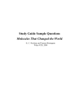 Study Guide Sample Questions Molecules That Changed the World K. C. Nicolaou and Tamsyn Montagnon Wiley-VCH, 2008 Chapter 1: Introduction: Atoms, Molecules & Synthesis 1. Give a brief description (25 words or less) of the following terms: a) The Big Bang Theory b) The Atomic Theory of Matter c) The Periodic Table d) Deoxyribo nucleic acid e) Ribo nucleic acid f) Protein g) Secondary metabolite h) Chemical synthesis 2. Identify the scientific contributions of the following philosophers–scientists (10 words or less): a) Demokritos b) Dmitri Ivanovich Mendeleev c) John Dalton d) Aristotle 3. Give the names and symbols of four elements and four molecular structures essential for life on Earth (including stereochemistry when appropriate): 4. Give the names of 8 natural products and name the three main categories of living systems from which such natural products are isolated. 5. Name the milestone event in 1828 that symbolizes the birth of organic synthesis. 6. The impact of chemical synthesis on modern society has greatly enhanced the lives of people. Give five examples of such contributions: 7. Name three methods used today in the structural elucidation of organic molecules. Chapter 2: Urea & Acetic Acid 1. Describe the following terms (50 words or less): a) Vitalism b) Synthetic organic chemistry (or chemical synthesis, or organic synthesis) 2. Draw the structures of urea and acetic acid. In addition, name the chemists who first synthesized them in the laboratory and articulate the significance of each accomplishment. (10 words or less) 3. Name the countries in which the following eminent chemists worked and made their most important contributions in chemistry. a) Friedrich Wöhler f) John Dalton b) Justus von Liebig g) August Wilhelm von Hofmann c) Jöns Jakob Berzelius h) Hermann Kolbe d) Antoine Laurent de Lavoisier i) Friedrich August Kekulé e) Robert Boyle j) Joseph Priestley Chapter 3: Glucose 1. Briefly describe (100 words or less) the photosynthesis of glucose from carbon dioxide in green plants, including the structures of starting materials, key intermediates, and products. 2. Mention two scientific accomplishments of Emil Fischer for which he is well known, the year of his awarding of the Nobel Prize in Chemistry, and the country he represents. 3. Give the molecular structures (with stereochemistry) of lactose and fructose and the names of two naturally occurring carbohydrate-based biopolymers. 4. In a short essay (100 words or less), including the names of Pasteur, Le Bel and van’t Hoff, and the terms of plane polarized light, tetrahedral carbon, and enantiomers, explain the phenomenon of enantioisomerism. 5. Briefly describe (100 words or less) the biotransformation of glucose in the presence of yeast to ethanol and carbon dioxide, including the structures of the key intermediates involved, and give two examples of how this phenomenon is exploited in everyday life. Chapter 4: Aspirin® 1. Name two ancient civilizations in which pain was treated with herbal medicines. 2. Acetylsalicylic acid (Aspirin) was prepared by chemical synthesis just before the dawn of the 20th century. The synthesis started from phenol and involved two steps. Give the two steps using molecular formulas of starting material, intermediate, and product as well as the reagents and conditions used. Name the chemist responsible for each step. 3. Name the three scientists who won the Nobel Prize in Medicine or Physiology in 1982 for their work on the arachidonic acid metabolites. 4. Describe (10 words or less) the mechanism of action of aspirin and related medicines. 5. Draw the structures of the following naturally occurring molecules: a) Salicin b) Arachidonic acid c) Prostacyclin d) Thromboxane 6. Match the following names of pain-relieving medications with the appropriate molecular structure of their active ingredient. (Tylenol®, Vioxx®, Advil®, Celebrex®) _________ _________ _________ _________ Chapter 5: Camphor 1. Cinnamomum camphora, as species of laurel trees, produces a substance that has been used for centuries for medicinal and embalming purposes as well as scent in various instances. Name that compound, give its molecular structure, and provide the name of the first chemist to synthesize it. 2. Explain (25 words or less) Bredt’s rule in organic chemistry and give the starting material of a modern industrial process for the production of the compound isolated from Cinnamomun camphora. Chapter 6: Terpineol 1. Define the term terpene and name four members of this class of natural products. 2. Give the molecular structure of terpineol, its natural source, and name of the chemist who synthesized it in the laboratory for the first time. 3. Provide the names and molecular structures of the naturally occurring compounds responsible for the fragrances of the following items: a) Musk b) Roses c) Sweet vanilla d) Geranium 4. Describe with chemical formulas and chemical equations the preparation of a Grignard reagent and its use in chemical synthesis. Chapter 7: Tropinone 1. Define the term alkaloid and name five members of this family of natural products. 2. Describe with molecular structures, reagents and conditions, and mechanistic arrows where appropriate, the total synthesis of tropinone by Sir Robert Robinson. 3. Name one theory, discovery, or invention associated with each of the following scientists, clearly designating those who won a Nobel Prize in Chemistry. a) Sir Robert Robinson (other than the synthesis of tropinone) b) Friedrick August Kekulé c) Irving Langmuir d) Linus Pauling e) Carl Wilhelm Scheele f) Friedrich Wilhelm Adam Sertürner Chapter 8: Haemin 1. Provide the molecular structure of haemin and explain its role in biology (25 words or less). 2. Give the molecular structures of Tyrian purple and indigo, and name two additional famous dyes. 3. Briefly describe (50 words or less) how mauveine was discovered and by whom. 4. Describe (25 words or less) one contribution for each 