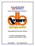 VDOT GOVERNANCE DOCUMENT Design-Build Procurement Manual Location and Design Division Alternate Project Delivery Office Issued 2005 Rev. October 2011 TABLE OF CONTENTS INTRODUCTION .......................................................................................................................... 2 1 DEFINITIONS.................................................................................................................... 3 2 PRELIMINARY PROJECT SELECTION......................................................................... 6 3 COMMISSIONER’S APPROVAL – FINDING OF PUBLIC INTEREST (FOPI) .......... 6 4 FHWA APPROVAL AND AUTHORIZATION ............................................................... 7 5 CONFLICT OF INTEREST ............................................................................................... 7 6 PROJECT ADVERTISEMENT ......................................................................................... 8 7 SOLICITATION PROCESS .............................................................................................. 8 8 INFORMATION EXCHANGES ..................................................................................... 11 9 PROPOSAL EVALUATION ........................................................................................... 11 10 NEGOTIATION AND AWARD OF CONTRACT ......................................................... 12 11 RIGHTS AND OBLIGATIONS OF VDOT .................................................................... 14 12 PROTEST ......................................................................................................................... 16 13 CONTRACT AWARD ..................................................................................................... 17 14 DESIGN AND CONSTRUCTION .................................................................................. 17 15 PROJECT ACCEPTANCE .............................................................................................. 17 16 APPENDIX A – VA LAW ............................................................................................... 18 17 APPENDIX B – CTB RESOLUTION ............................................................................. 21 18 APPENDIX C – OBJECTIVE CRITERIA ...................................................................... 22 Design-Build Procurement Manual July 2011 1 of 24 INTRODUCTION During the 2001 Virginia Legislative Session, the General Assembly of Virginia amended and reenacted § 33.1-12 of the Code of Virginia, relating to powers and duties of the Commonwealth Transportation Board (CTB) authorizing the award of Design-Build contracts. The Code was further amended during the 2006 Virginia Legislative Session to eliminate the restrictions on the number of transportation projects the Commonwealth Transportation Board may award on a Design-Build basis. The code requires the CTB to adopt Objective Criteria for project selection. On October 17, 2001, the CTB adopted and approved Objective Criteria for the selection of Design-Build projects. The Objective Criteria require a finding that a proposed Design-Build project has one or more of following: Expedited Schedule, Established Budget, Well-defined Scope, Risk Analysis, Prequalification of Design-Build Firms, and Competitive Bidding Processes. The Objective Criteria adopted by the CTB are attached to this manual in Appendix C. A Design-Build contract combines engineering design services, construction services, and/or maintenance services into a single contract. The Virginia Department of Transportation (VDOT) may procure Design-Build contracts when it is not in the public interest to follow the normal design and contracting procedures (Competitive Sealed Bidding). This manual provides an overview of the process that VDOT will follow for the procurement of Design-Build contracts for transportation projects. This manual also provides information and guidelines for developing a project scope, assessing risk, advertising and evaluating Proposals, managing information exchange and awarding contracts on transportation projects using the Design-Build contracting method. This information is valid for projects that are the sole responsibility of VDOT and does not cover projects involving the Department of General Services (DGS). This manual will be periodically updated as VDOT gains more experience in administering this program. All inquiries related to this manual should be forwarded via email to the Alternate Project Delivery Office. Design-Build Procurement Manual July 2011 2 of 24 1 DEFINITIONS The words defined herewith shall have the meaning set forth below throughout this document. a) “Best and Final Offer (BAFO)” means the final offer provided by an Offeror at the conclusion of discussions in response to a Request for Proposal. Thus, regardless of the length or number of discussions, there will be only one request for a revised Proposal. The decision to award will be based on the score of the BAFOs. b) “Best Value” means the overall combination of quality, price and various elements of the required services that, in total, are optimal relative to VDOT’s needs, as predetermined in the solicitation. c) “Board” or “CTB” means The Commonwealth Transportation Board. d) “Clarifications” means a written or oral exchange of information which takes place after the receipt of Proposals when award without discussions is contemplated. The purpose of the clarifications is to address minor or clerical revisions in a Proposal. e) “Commissioner” means The Commissioner of Highways. f) “Communications” are exchanges between VDOT and Offerors after receipt of DesignBuild Proposals that lead to the establishment of a competitive range. Communications are used to address issues that might prevent a Proposal from being placed in the competitive range. g) “Competitive Range” means a list of the most highly rated Design-Build Proposals