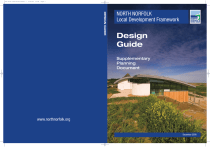 DG cover 2Dec-blue:Layout 1 3/12/08 10:46 Page 1 DESIGN GUIDE NORTH NORFOLK Local Development Framework Design Guide Supplementary Planning Document www.northnorfolk.org December 2008 North Norfolk District Council Planning Policy Team Telephone: 01263 516318 E-Mail: planningpolicy@north-norfolk.gov.uk Write to: Planning Policy Manager, North Norfolk District Council, Holt Road, Cromer, NR27 9EN www.northnorfolk.org/ldf All of the LDF Documents can be made available in Braille, audio, large print or in other languages. Please contact 01263 516318 to discuss your requirements. Cover Photo: Cley Marshes Visitor Centre, courtesy of Richard Osbourne North Norfolk Design Guide Contents 1 Introduction 4 2 The Architectural Context 2.1 Geological Overview 2.2 Architectural Overview 2.3 Towards a New Vernacular 8 8 10 15 3 New Residential Development 3.1 Introduction 3.2 Site Analysis 3.3 Site Layout 3.4 Building Design 3.5 Curtilage Treatment 3.6 Extensions to Dwellings 18 18 18 19 24 30 33 4 New Non-Residential Development 4.1 Introduction 4.2 Commercial Buildings 4.3 Large Retail Buildings 4.4 Agricultural Buildings 38 38 38 39 40 5 Historic Buildings 5.1 Introduction 5.2 Restorations and Renovations 5.3 Extensions 5.4 Setting 5.5 Maintenance 5.6 Energy Efficiency 42 42 43 45 45 45 45 6 Conservation Areas 6.1 Introduction 6.2 New Development 6.3 Alterations 6.4 Demolition 48 48 48 50 50 7 Conversions 7.1 Introduction 7.2 Agricultural Buildings 7.3 Community and Commercial Buildings 52 52 52 55 8 Shopfronts and Advertisements 8.1 Introduction 8.2 Shopfronts 8.3 Advertisements 58 58 58 59 9 Landscape Design 9.1 Introduction 9.2 Rural Areas 9.3 Urban Areas 64 64 64 65 10 Materials 10.1 Introduction 10.2 Principles of Selection 10.3 Choosing Materials 68 68 68 68 North Norfolk Design Guide Contents 11 Sustainable Construction 11.1 Minimising Energy Consumption 11.2 Minimising Resource Consumption 11.3 Adaptation to Future Climate Change 11.4 The Code for Sustainable Homes 11.5 Renewable and Low Carbon Technologies 11.6 Sustainable Construction Checklist 11.7 Energy Consumption Statement 72 74 81 82 86 87 89 89 Appendices A Traditional Details 92 B Sustainable Construction - Further Information 104 C Glossary 110 North Norfolk Design Guide Introduction 1 3 4 North Norfolk Design Guide 1 Introduction 1.0.1 Since it was first published in 1974, the North Norfolk Design Guide has helped shape built development across the District. In its original form, the Guide sought to reverse the architectural trends of the 1950s, 60s and 70s - a period that saw numerous developments that were unrelated to the architectural traditions of the District, and which contributed little to local identity. Since which time, the Guide has been regularly updated to reflect the new and emerging themes of the time. This latest version is no exception in that it responds to the most recent Government st guidance, and to the ever increasing pressures associated with 21 century development such as reducing carbon emissions and designing out crime. Purpose of the Design Guide 1.0.2 This Supplementary Planning Document has two main purposes: to provide further guidance and background information on North Norfolk Core Strategy policies, in particular EN4 Design (including crime prevention) and EN6 Sustainable Construction and Energy Efficiency; and, to offer advice and support to everyone involved or interested in the design or alteration of the built environment in North Norfolk with the objective of raising the quality of design in the District. 1.0.3 The Guide covers a wide range of subject areas, from new housing estates to hanging signs, and from barn conversions to large retail supermarkets. It also recognises the huge contribution heritage makes in defining our District and the need to conserve the best of this past. 1.0.4 At the same time, and in accordance with what Government now expects from good planning, the Guide promotes sustainable construction as a means of tackling climate change. Hence, minimising energy and resource consumption, maximising energy efficiency and reducing carbon emissions are all central themes of the Guide. It also seeks to ensure that new development incorporates renewable energy technologies where appropriate and that it is able to respond to the longer term impacts of climate change. 1.0.5 In addition, under S17 of The Crime and Disorder Act 1998, the Council has a statutory duty to do all that it reasonably can to prevent crime and disorder in its area. Promoting good design through the planning system is one of the acknowledged ways of achieving this. The Guide therefore also now offers advice in this important area. 1.0.6 The Council considers that the objectives of high quality design, sustainable construction and safe environments are complementary. As stated in Planning Policy Statement 1, "Good design ensures attractive, usable, durable and adaptable places and is a key element in achieving sustainable development". This guide therefore seeks to achieve the most appropriate design solution for each development. There will, however, always be occasions where the requirements of one goal may not easily be reconciled with another; for example: Continuous building lines to improve natural surveillance and prevent crime may not necessarily produce visually interesting layouts; Renewable energy technologies may not necessarily sit comfortably within conservation areas; Zero carbon construction will make it increasingly challenging to design locally distinctive buildings due to the materials and techniques required. 1.0.7 The Guide does not provide a definitive pattern book for new development. Rather it is intended North Norfolk Design Guide Introduction 1 to stimulate thought on a range of issues which should be considered during the development process. High quality contemporary design which respects its setting and which addresses the challenge of climate change is the key imperative. 1.0