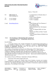 Telecommunication Standardization Bureau Geneva, 14 May 2013 Ref: TSB Circular 25 TSB Workshops/P.R. Tel: Fax: +41 22 730 6356 +41 22 730 5853 E-mail: Subject: - To Administrations of Member States of the Union; - To ITU-T Sector Members; - To ITU-T Associates; - To ITU-T Academia; Copy: - To the Chairmen and Vice-Chairmen of ITU-T Study Groups; - To the Directors of the Radiocommunication and Development Bureaus; - To the ITU Regional Office for Africa Region; - The ITU Area Offices in Dakar, Yaounde and Harare - To the Permanent Mission of Burkina Faso in Geneva tsbworkshops@itu.int ITU Workshop on “Benchmarking QoS evaluation of Multimedia Networks” - Ouagadougou, Burkina Faso, 18 July 2013 Dear Sir/Madam, 1 At the kind invitation of the Autorité de Régulation des Communications Electroniques et des Postes (ARCEP) of Burkina Faso, ITU is organizing a workshop on “Benchmarking QoS evaluation of Multimedia Networks” which will take place at the Hotel Laïco Ouaga, Ouagadougou, Burkina Faso on 18 July 2013. This workshop will immediately be followed by the Fifth meeting of ITU-T Study Group 12 Regional Group for Africa (SG12 RG-AFR) on 19 July 2013. Both events will be preceded by a workshop on “Building a Sustainable Future Through Green ICT Standards” from 15 to 16 (morning) July 2013 followed by the 4th meeting of the ITU-T Study Group 5 Regional Group for Africa (SG5 RG-AFR) from 16 (afternoon) to 17 July 2013. These events will also be hosted by the ARCEP at the same venue. The workshop will open at 0900 hours. Registration will begin at 0800 hours. 2 Discussions will be held in English and French. 3 Participation is open to ITU Member States, Sector Members, Associates and Academic Institutions and to any individual from a country which is a member of ITU who wishes to contribute to the work. This includes individuals who are also members of international, regional and national organizations. The workshop is free of charge. Place des Nations CH-1211 Geneva 20 Switzerland Telephone Telefax Gr3: Gr4: + 41 22 730 51 11 + 41 22 733 72 56 + 41 22 730 65 00 Telex 421 000 uit ch Telegram ITU GENEVE E-mail: itumail@itu.int www.itu.int -2- 4 This workshop will facilitate the discussion of the Regional Group of SG12 on QoS for the Africa Region (SG12 RG-AFR) by providing information on benchmarking of QoS evaluation of multimedia networks. Expertise from Burkina Faso and other countries will be shared to progress the work of SG12 RG-AFR and SG12. 5 A draft programme of the workshop is set out in Annex 1 hereto. Updated versions including the presentations and relevant information will be made available on the event website at http://www.itu.int/en/ITU-T/Workshops-and-Seminars/qos/201307/Pages/default.aspx. This website will be updated as new or modified information becomes available. 6 Information including hotel accommodation, transportation, visa and health requirements can be found in Annex 2. 7 Unfortunately, ITU will not be able to provide fellowships due to budget restrictions. 8 To enable TSB to make the necessary arrangements concerning the organization of the workshop, I should be grateful if you would register via the on-line form at: http://www.itu.int/en/ITU-T/Workshops-and-Seminars/qos/201307/Pages/default.aspx as soon as possible, but not later than 4 July 2013. Please note that pre-registration of participants to workshops is carried out exclusively online. 9 We would remind you that citizens of some countries are required to obtain a visa in order to enter and spend any time in Burkina Faso. The visa must be requested and obtained from the Burkina Faso Embassy in your country, or if there is no such office in your country, from the one that is closest to the country of departure (See Annex 2 for detailed information on visa requirements. Yours faithfully, Malcolm Johnson Director of the Telecommunication Standardization Bureau Annexes: 3 ITU-T\BUREAU\CIRC\011E.DOC -3- ANNEX 1 (to TSB Circular 25) ITU Workshop on “Benchmarking QoS evaluation of Multimedia Networks” (Ouagadougou, Burkina Faso, 18 July 2013) Draft Programme Session Opening Time Item 9.00 - 9.45 Opening Ceremony Session 1 9.45 - 10.45 Overview of ITU-T Standardization and SG12 Activities ITU-T Standardization Topics Overview of ITU-T Study Group 12 Activities Introduction to ITU Regional Group of SG12 for Africa 10.45 -11.00 Coffee Break Session 3 11.00 - 11.45 11.45 – 12.30 Content and presentation of Recommendation E.MQoS Applicability for QoS assessment based on E.MQoS Session 4 12.30 -14.00 14.00 – 15.15 Lunch Mobile Internet QoS evaluation, methodology and tools for 3G networks Country case: Morocco 15.15 -15.45 Coffee Break Session 5 15.45 -16.30 Broadband Network QoS evaluation Closing 16.30 – 17.00 Conclusion and Remarks Session 2 Closure of the workshop ITU-T\BUREAU\CIRC\011E.DOC -4- ANNEX 2 (to TSB Circular 25) GENERAL INFORMATION FOR PARTICIPANTS 1 Venue for the meetings Hotel Laïco Ouagadougou, Burkina Faso Tel.: (00 226) 50 49 98 00 /07 Fax: (00 226) 50 49 98 01/02 www.laico-ouaga2000.com 2 Arrival, departure and transportation Upon receipt of participant flight details, arrangements will be made to meet participants at Ouagadougou International Airport and transport them to their respective hotels. Transportation will also be provided between the hotels and the seminar venue. The shuttle service is free of charge. 3 Delegate registration Delegate registration will take place at the venue (Hotel Laïco). 4 Working hours Working hours (provisional): 0800 to 1230 & 1430 to 1730 hours Coffee breaks: 1030 & 1630 hours Lunch break: 1300 hours 5 Documentation Documents relating to the workshop will be provided at the venue, in electronic form during the training. Participants should therefore come equipped with a USB stick for downloading purposes, as well as a portable computer. 6 Accommodation / hotels Preferential rates have been negotiated for seminar participants. A list of th