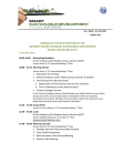 Doc. SSDM– 10‐ 2013‐002 English only AGENDA OF THE FIRST MEETING OF THE ADVISORY BOARD ON SMART SUSTAINABLE DEVELOPMENT MODEL (SSDM) INITIATIVE 18 October 2013 09:30‐10:00 Networking Breakfast At the invitation of Mr Brahima Sanou, Director of BDT Venue: Room E, ITU Varembé Building 1st floor 10:00 – 12:25 Morning Session Venue: Room E, ITU Varembé Building 1st floor 1. Opening of the meeting 2. Welcome Address by Mr. Brahima Sanou, Director of the BDT 3. Functioning of the Advisory Board a. Appointment of the Chairman and the Vice Chairmen b. Terms of Reference of the Advisory Board 4. Visionary Dialogue Session In the Visionary Dialogue Session, Board Members are kindly invited to present their perspective on the use of ICTs for disaster management and socio‐economic development of societies. Members are also invited to share their experiences and expectations on the functions and outputs of the Board 12:25 – 12:30 Group Photo Venue: in front of Room E, ITU Varembé Building, 1st floor 12:30 – 14:30 Lunch At the invitation of Mr Brahima Sanou, Director of BDT Venue: Satellite Restaurant, ITU Tower 15th floor [Advisory Board Members only] 14:30 – 16:30 Afternoon Session Venue: Room E, ITU Varembé Building, 1st floor 1. Strategic Key Points Raised and Way Forward 2. Future Work Programme 3. Date and venue of the Second Meeting 4. Closure of the Meeting