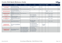 Combo Edit Quick Reference Guide Combo Edit Name Auxiliary Sales & Service Revenue with a FAS DeptID Travel Advance Transactions Costed Central Activity Account & Costed Central Activity Project Recharge Revenue Account & Recharge Revenue Project Description Account Auxiliary Sales & Service Revenue transactions using the Auxiliary Sales & Service Fund must have a FAS DeptID Auxiliary Sales and Service Revenue Travel Advance Transactions must not have 11620 - A/R travel/other cash advances any Fund, DeptID or Flexfield value The Costed Central Activity Revenue Account must have a valid Costed Central Activity Project with Costed Central Activity Project Use Fund DeptID 5030 - Sales & Service Aux Enterprise Function Project Use Project Number Flex FAS DeptID None None None 74250 - Costed central activity revenue The Recharge Revenue Account must have a valid Recharge Project with Recharge 74200 - Recharge revenue Project Use Costed Central Activity 8800000 - 8999999 Recharge 8000000 - 8499999 Gift Transactions Gift Transactions must use Gift Fund & Gift Project 7000 - Priv. Restricted Gifts 7100 - Priv. Unrestricted Gifts 7000000 - 7499999 Endowment Income - Foundation Transactions Endowment Income Foundation Transactions must use Endowment Income Foundation Fund & Project 7700 - Endowment Income Foundation 7700000 - 7799999 Endowment Income - Regents Transactions Endowment Income Regents Transactions must use Endowment Income Regents Fund & Project 7710 - Endowment Income - Regents 7500000 - 7699999 Endowment Principal Transactions Endowment Principal Transactions must use Endowment Principal Fund & Project 5160 - Endow., Campus 7500 - Endow., Foundation - Fund Functioning as Endowment 7900000 - 7949999 7510 7000 - Private Restricted Gifts 7100 - Private Unrestricted Gifts Gift or Endowment Funds cannot use Function 44 Organized & Sponsored Research Gift or Endowment Funds cannot be used with Function 44 - Organized & Sponsored Research 7700 - Endowment Income Foundation 7710 - Endowment Income - Regents 44 - Organized & Sponsored Research 7500 - Endowment, Foundation 7510-Fund Functioning as Endowment Federal Expenditure Transactions cannot use a Federally Unchargeable Account Federal Expenditure Transactions with a Federal Fund cannot use a Federally Unchargeable Account 55602 - Legal-litigation/debt collect 4000 - Fed Gv Grant 55603 - Legal-fines and penalties 4001 - Fed Gv Contract 57250 - Social activ/entmt/alcohol 4002 - Fed Gv Coop Agrmnt 57251 - Social/civic membship & subscr 4003 - Fed Gv Grant, ARRA 57253 - Travel fundr, lobby, alumni 4004 - Fed Gv Contract, ARRA 57813 - Work visa fees - expedited 4005 - Fed Approp - ARRA 57835 - Advert-sales/public relations 4006 - Federal Work Study 57843 - Donations/contributions Revised May 2016 Accounting and Reporting - Quick Reference Guide Page 1 of 11 Combo Edit Quick Reference Guide Combo Edit Name Description Account Function Clinical Care and Clinical Care Projects Function Clinical Care must be used with MC Clinical Care and SFGH Profee Projects Fund DeptID Function Project Use Project Number Flex 1000000-MC Clinical Care 46 - Clinical Care 1000005-SFGH Profees 1000001-MC GME residents/fellows 1000103-CHO GME residents/fellows 1000104-CPMC GME residents/fellows 1000105-Kaiser GME residents/fellows 1000106-Shriners/Davies GME resdnt/fel 40 - Instruction Functions Instruction/Student Financial Functions Instruction or Student Financial Aid and Aid must be used with Resident/Fellow Projects Resident/Fellows Projects 1000107-VAMC GME residents/fellows 78 - Student Financial Aid 1000108-Summit GME residents/fellows 1000109-KaiserHI GME residents/fellows 1000111-Fellows - Dept Funded 1000112-Residents - Dept Funded 2012226-St Francis GME resident/fellow 2005236-St Mary's GME residents/fellow 6000 - Loan, Univ Student (Restr) 6100 - Loan, Univ Student (Unrestr) 6010 - Loan, Student (Restr) 6110 - Loan, Student (Unrestr) Loan Transactions Require Loan Fund & Project 6020 - Loan, Dept (Restr) Loan Transactions must use Loan Fund and Loan Project 6120 - Loan, Dept (Unrestr) 6030 - Loan, Fed Contributions Loan (Student/ Faculty/ Staff) 6000000 - 6199999 Capital or Plant 9000000 - 9999999 6040 - Loan, Univ Capital Contrib 6130 - Loan, Univ Ed Fee Contrib 6050 - Loan, Bad Debt Allowance Plant Account Transactions & Plant Fund, Function & Project Plant Account Transactions must use Plant Fund, Plant Function & Plant Project 5315E - Construction 7800B - Nonoperating Transfers 9XXX Revenue, Expense and Transfer Transactions Require Fund, Dept ID, Function, and Project All Revenue, Expense and Transfer Transactions must have non-blank Fund, Dept ID, Function and Project 4XXXX, 74XXX 5XXXX, 75XXX 78XXX, 79XXX Non-blank Fund Revenue Accounts must be used with Revenue Accounts must be used with accompanying Funds their accompanying Fund Source Code Custom Combo Edits Transaction Code Accounts (49xxx, 59xxx, 78xxx, and 79xxx) must be used with their corresponding Fund Class (CURR, ENDW, INCA, LOAN, RIND, RRPL, UNXP) Revised May 2016 81 - Cap. Projects Non-blank Dept ID Non-blank Function Non-blank Project See List of Revenue Accounts and Accompanying Funds on "Revenue Accounts and Accompanying Funds" Custom Combo Edits associated with Source Codes See List of Source Code Combo Edits on "Source Code Combo Edits" Transaction Code Accounts (49xxx, 59xxx, 78xxx, and 79xxx) must be used with their corresponding Fund Class (CURR, ENDW, INCA, LOAN, RIND, RRPL, UNXP) Accounts that generate a UCOP Transaction Code must be used with the correct Fund Class or Classes. The Fund Classes (curr, endw, inca, loan, rind, rrpl, unxp) are referenced in the description of the account. The link to the Transaction Code Matrix is: http://controller.ucsf.edu/accounts/files/UCOP_TransactionCodeMatrix.xlsx?4/27/2016%208:47:52%20AM A Fund's Class is an attribute of the Fund. The link to the Funds and their attributes is: http://controller.ucsf.edu/accounts/files/COA_Fund_Values.