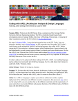 Coding with AADL (Architecture Analysis & Design Language) featuring Julien Delange interviewed by Suzanne Miller ---------------------------------------------------------------------------------------------Suzanne Miller: Welcome to the SEI Podcast Series, a production of the Carnegie Mellon University Software Engineering Institute. The SEI is a federally funded research and development center at Carnegie Mellon University in Pittsburgh, Pennsylvania. A transcript of today’s podcast is posted on the SEI website at sei.cmu.edu/podcasts. My name is Suzanne Miller. I am a principal researcher here at the SEI. Today, I am very pleased to introduce you to Julien Delange, an SEI researcher since November 2012. Julien’s work focuses on the architecture, analysis, and design language, also called AADL. Before joining the SEI, he worked as a software engineer at the European Space Agency where he led and contributed to several research projects related to software and system architectures. He also has a Ph.D. from Telecom Paris Tech in France and developed the real-time operating system called POK for building safe and secure systems, something that is very important for both space and many other areas of the work of the SEI. In today’s podcast we’re going to talk about coding with AADL. AADL is a modeling language, and so coding is not necessarily part of the base language. So, let us talk about what it means to code with AADL. Welcome, Julien. Julien Delange: Thanks for having me, Suzanne. Suzanne: So, for those that don’t know about the Architecture, Analysis and Design Language (AADL)—we have interviewed you before about this work—but please just explain just a little bit for those that aren’t familiar with AADL, what it is meant to do and how it does it. Julien: So, AADL is a language to capture your software architecture and also explains deployment of the architecture and different execution components, like processors, bus, and so on. By using AADL, you can specify what are the different constraints and the requirements of your system, how you execute different sub-program functions of the different tasks, of different tasks with their different periods. Coding with AADL, page 1 www.sei.cmu.edu/podcasts SEI Podcast Series There are aspects such as timing, safety, security requirement. You can use the language to support different aspects of your software development process such as specification. So, you specify your system is a language, but also variation, or you can validate your requirement using the AADL language. And for that we have different plug-ins in the OSATE toolset. OSATE is a reference tool to use AADL and to process AADL models. Suzanne: That’s an Eclipse-based tool, which is an open-source environment for doing process kinds of work? Julien: That’s correct. Also, the OSATE toolset, that is an Eclipse plug-in, is an open source. Anybody can download it. We have several analysis plug-ins. For people that are interested in a presentation and overview, I did a webinar two months ago at the SEI, which is publicly available. Feel free to research in the SEI library, and you will find it. You can have a good introduction about the language, and we have the model available publicly to use it. Suzanne: So, one of the things that [have] always excited me about AADL as a language is that, unlike other kinds of modeling environments, it allows you to say what you know at the time about, say, security. You may not know everything right now about security, so you can say what you know. Let’s say, for component one, you know a little bit, and, for component two, you know a lot; both of those can coexist in the language at the same time, which is very different from other modeling languages. So, I am really curious about how does that play when you start talking about generating code from the model? How do you go about dealing with that, and what is it that AADL’s code can do that may not be possible in other settings? Julien: So, first of all, we have to say that AADL is a language that describes system architecture and not really the behavior of the system itself. In other words, right now what is happening is we have many, many languages that specify a behavior such as Simulink, SCADE, and all that. If you look at it, Airbus just certified the new airplane, A350. They used a modeling language called SCADE, but it is to specify a behavior. Right now AADL will be used to specify how you plug these components, the behavior of the system, the function, on the run-time architecture; how you associate the different components into the different processors; or, how does it communicate with a bus, all these kinds of things? After that, AADL can be used to generate all the configuration files for the operating system to configure the bus and other runtime architecture, create the tasks, and so on. Suzanne: So, the code that is being generated is not behavioral code, but it is the code that allows you to configure the run-time architecture so that that behavioral code will perform as it is expected? Coding with AADL, page 2 www.sei.cmu.edu/podcasts SEI Podcast Series Julien: That is correct. This is exactly what we are looking for. In other words, you can--with the automatic code generation--you can assess different architecture alternatives. If, for example, you are looking to use a single processor with different tasks, that can be a good thing, because you lower the cost because you are just using one processor. Sometimes you want to distribute the system two processors and use redundancy patterns. Suzanne: You may have a performance requirement that you have modeled in AADL that leads you to look at a multi-processor solution. You can then see what the effect on that behavior code is of doing that different configuration. Julien: Exactly. So, you keep exactly the same code. What you change is just the deployment policy. With AADL, you can automatically generate thi