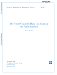 Public Disclosure Authorized Policy Research Working Paper Public Disclosure Authorized 5046 Do Poorer Countries Have Less Capacity for Redistribution? Martin Ravallion Public Disclosure Authorized Public Disclosure Authorized WPS5046 The World Bank Development Research Group Director’s Office September 2009 Policy Research Working Paper 5046 Abstract Development aid and policy discussions often assume that poorer countries have less internal capacity for redistribution in favor of their poorest citizens. The assumption is tested using data for 90 developing countries. The capacity for redistribution is measured by the marginal tax rate on those who are not poor by rich-country standards that is needed to cover the poverty gap or to provide a poverty-level of basic income, judged by developing-country standards. For most (but not all) countries with annual consumption per capita under $2,000 (at 2005 purchasing power parity) the required tax burdens are found to be prohibitive—often calling for marginal tax rates of 100 percent or more. By contrast, the required tax rates are quite low (1 percent on average) among all countries with consumption per capita over $4,000, as well as some poorer countries. Most countries fall into one of two groups: those with little or no realistic prospect of addressing extreme poverty through redistribution from the “rich” and those that would appear to have ample scope for such redistribution. Economic growth tends to move countries from the first group to the second. Thus the appropriate balance between growth and redistribution strategies can be seen to depend on the level economic development. This paper—a product of the Director’s Office, Development Research Group—is part of a larger effort in the department to help inform development aid and policy choices aiming to reduce poverty. Policy Research Working Papers are also posted on the Web at http://econ.worldbank.org. The author may be contacted at mravallion@worldbank.org. The Policy Research Working Paper Series disseminates the findings of work in progress to encourage the exchange of ideas about development issues. An objective of the series is to get the findings out quickly, even if the presentations are less than fully polished. The papers carry the names of the authors and should be cited accordingly. The findings, interpretations, and conclusions expressed in this paper are entirely those of the authors. They do not necessarily represent the views of the International Bank for Reconstruction and Development/World Bank and its affiliated organizations, or those of the Executive Directors of the World Bank or the governments they represent. Produced by the Research Support Team Do Poorer Countries Have Less Capacity for Redistribution? Martin Ravallion1 Development Research Group, World Bank 1818 H Street NW, Washington DC, 20433, USA 1 These are the author’s views and should not be attributed to the World Bank or any affiliated organization. The author is grateful to Shaohua Chen and Prem Sangraula for help in setting up the data set used here. Useful comments were received from Shaohua Chen, Ravi Kanbur, Steve Knack, Aart Kraay, Branko Milanovic, Peter Lambert, Peter Lanjouw and Dominique van de Walle. Correspondence: mravallion@worldbank.org. 1. Introduction Some people in even the poorest countries would not be considered poor in the US, say. And all developing countries have access to redistributive policy instruments. These facts have not gone unnoticed by aid donors. The government of a rich country hoping to reduce poverty in poor countries will (understandably) be disinclined to give its aid to a country that has ample internal capacity to address its poverty problem through redistribution from people at a similar standard of living to taxpayers in that rich country. Yet, while the idea that different countries have different capacities for redistribution comes up often in aid discussions, it is invariably assumed that it can be adequately proxied by a measure of average income. I do not know of any past effort to formalize and test that assumption. The issue of country capacity for redistribution also arises (at least implicitly) in discussions of development policy within developing countries. It is often argued that “sustained poverty reduction is impossible without sustained growth.”2 To accept this claim one must essentially reject its corollary: “sustained poverty reduction is impossible through income redistribution.” Yet I can find no demonstration of that point in the literature. The governments of all developing countries have access to tax and spending instruments with distributional impacts, and significant impacts on poverty and inequality by such means appear to be feasible.3 Progressive income tax systems are not yet as important in developing countries as in most developed ones, though this is changing and there appear to be feasible options in developing-country settings.4 Indirect taxes with distributional impacts are widespread.5 On the spending side, there are many actual or potential instruments available even in poor countries including workfare programs and targeted transfers.6 Whether the available policy instruments are actually used and how effective they are— how well they are designed and implemented—depend on the redistributive efforts of countries, stemming in no small measure from their political will for redistribution. That is a different 2 This specific quote is from Kraay (2006, p.61) although it is just one of many statements of this view that can be found in the literature and heard in development policy discussions over many decades. 3 See, for example, Ferreira et al. (2009) on redistributive policies in Brazil since the mid-1990s and Robalino and Warr (2006) on their potential in Thailand. 4 See the discussion in Alm and Wallace (2006). 5 Gemmell and Morrissey (2005) provide a useful review what is known about the di