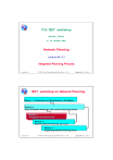 ITU / BDT workshop Warsaw, Poland, 6 – 10 October 2003 Network Planning Lecture NP NP-- 3.1 Integrated Planning Process October 6 -10 ITU/BDT Network Planning/ Integrated Planning Process - O.G.S. Lecture NP - 3.1 - slide 1 BDT workshop on Network Planning Module 1: Introduction and Experiences in the Region Module 2 Role of Network Planning in the current Telecom scenario Module 3 Integrated Planning Process Module 4 Specific Network Planning per Layer Module 5 Supporting Network Planning Tools October 6 -10 ITU/BDT Network Planning/ Integrated Planning Process - O.G.S. Lecture NP - 3.1 - slide 2 Content Chapter 3.1 • Definiton of processes and interrelations • Network design tasks • Parameters and Data October 6 -10 to be used in the planning ITU/BDT Network Planning/ Integrated Planning Process - O.G.S. Lecture NP - 3.1 - slide 3 Network Planning Scope: Related Processes Business Planning Network Strategic Network/business Planning Planning Long Term Structural Planning Short/Medium Term Planning Network Network Support Processes Customer Care & Billing ... Network Traffic & QoS Measurement ... Management The Network October 6 -10 ITU/BDT Network Planning/ Integrated Planning Process - O.G.S. Lecture NP - 3.1 - slide 4 Network Planning Flows among Processes • Data on topologies, architectures, location, routing, etc from long term planning are transfered to the medium term and iteratively to short term activities • Planning results are transfered to NM applications and viceversa, NM measurements and status are provided as inputs to the planning activities • Operating System Processes also provide data to the short/medium term planning activities on the traffic demand, performance and Origin/destination flows ITU/BDT Network Planning/ Integrated Planning Process - O.G.S. October 6 -10 Lecture NP - 3.1 - slide 5 Planning Methodology: Integrated Iterative Planning Process Analysis of Initial Context Business Assessments Generation of Competitive Scenarios (Inputs) Traffic Demand Forecasting Network Design & Configuration Business & Financial Planning Technical and Economic Results (Outputs) Procedures and Tools October 6 -10 ITU/BDT Network Planning/ Integrated Planning Process - O.G.S. Lecture NP - 3.1 - slide 6 Network Planning Iterative subsub-processes • Telecom network scenarios are generated with the premises derived from realistic competitive sitiation • Final objective is to have a quantified design fullfiling the strategy for the operator and the requirements of the society • Defined processes and tasks are needed for all solutions and technologies. Internal data and alghoritms vary for each case • Feedback among activities is needed to incorporate results of the optimization on the inputs and assumptions • Business assesment is made at the process start to select feasi ble solutions. More detailed business plan is obtained at the end ITU/BDT Network Planning/ Integrated Planning Process - O.G.S. October 6 -10 Lecture NP - 3.1 - slide 7 Network Planning Strategic view: Network Layer Modeling IP SMP SMS-C SCP Service and Control level Voice Mail IN HLR/AuC TSC EIR BTS SSP TEX MSC SSP BSC Functional level WLL/Mobile Int’l POP/LEX POP/LEX Fixed NB network DATA/IP network LL network Transport/SDH Infrastructure and Cable level October 6 -10 ITU/BDT Network Planning/ Integrated Planning Process - O.G.S. Lecture NP - 3.1 - slide 8 Planning Methodology: Multilayer planning sequence Network Layers Planning process Data flows Service and Control level NE dimensioning Delay evaluation Traffic Demand Functional level Circuit location/design Routing optimization BW grooming Route design/ optim . Transport/SDH Path protection Physical Layout Infrastructure and Cable level October 6 -10 Cable routing/grouping Node/duct sharing ITU/BDT Network Planning/ Integrated Planning Process - O.G.S. Lecture NP - 3.1 - slide 9 Network Planning Task sequence • Starts with services and traffic demand projection • First design is made for the functional level: switching, routing, mobile, data, etc. • Intermediate results are given as inputs for Transmission and control layers • Transmission results are provided as inputs to the • Iteration is made among layers and basically to the Physical layer functional for consolidation October 6 -10 ITU/BDT Network Planning/ Integrated Planning Process - O.G.S. Lecture NP - 3.1 - slide 10 Planning Methodology: The Functional Network Design Tasks Input data scenario Network coverage Input data network Service Demand Predefined Locations and NE Predefined Architecture (Blueprint) Network definition and design Traffic Matrices Solution Mapping and Architecture Selection Node & Link Dimensioning Performance Evaluation October 6 -10 ITU/BDT Network Planning/ Integrated Planning Process - O.G.S. Location Capacity Connectivity Network results Solution Cost Lecture NP - 3.1 - slide 11 Network Planning Input Data • Input categories • Geo-scenario • Customers, Services and traffic • Existing network • Technology characteristics and capacities • Performance • Economical October 6 -10 ITU/BDT Network Planning/ Integrated Planning Process - O.G.S. Lecture NP - 3.1 - slide 12 Network Planning Input data • Geo scenario • Number of differentiated service areas: (Metropolitan,Suburban,Villages, Rural) • Surface for each area • Distance to the core service area • Population per area (volume and density) • Number and distribution of households • Customer density and clustering • Digitalised maps (scales 1:5000 to 1:1000) • Regulatory rules • Interconnection locations and constraints October 6 -10 ITU/BDT Network Planning/ Integrated Planning Process - O.G.S. Lecture NP - 3.1 - slide 13 Network Planning Input data : Geo maps October 6 -10 ITU/BDT Network Planning/ Integrated Planning Process - O.G.S. Lecture NP - 3.1 - slide 14 Network Planning Input data • Customers, services and traffic (1) • Customer segments (as