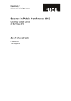 Department of Science and Technology Studies Science in Public Conference 2012 University College London 20 & 21 July 2012 Book of abstracts Final version 19th July 2012 Table of Contents Abstracts are arranged in alphabetical order by the lead author’s surname. In the case of panel sessions, the abstracts are listed under the name of the panel organiser and are marked with a (*). Alison Adam ..................................................................................................... 1 Adam Bencard ................................................................................................. 2 Victoria Blake (* panel organiser) .................................................................... 3 Tim Boon (* panel organiser) ........................................................................... 6 Robert Bud ....................................................................................................... 9 Karen Bultitude (* panel organiser) ................................................................ 10 Neil Calver ..................................................................................................... 11 Angela Cassidy .............................................................................................. 12 Yvonne Cunningham ..................................................................................... 13 Oliver Feeney ................................................................................................. 14 Clara Florensa ............................................................................................... 15 Beverley Gibbs ............................................................................................... 16 Ann Grand ...................................................................................................... 17 Hsiang-Fu Huang ........................................................................................... 18 Rusi Jaspal .................................................................................................... 19 Blanka Jergović .............................................................................................. 20 Supara Kamolpattana .................................................................................... 21 Emma King .................................................................................................... 22 David A. Kirby ................................................................................................ 23 Andreas Jackie Klaura ................................................................................... 24 Melanie Smallman & Kajsa-Stina Magnusson…………………………………. 25 Felicity Mellor ................................................................................................. 26 Paul Merchant ................................................................................................ 27 Andreea Moldovan ......................................................................................... 28 Norma Morris ................................................................................................. 29 Lisa Nock ....................................................................................................... 30 Aletta J. Norval and Elpida Prasopoulou ....................................................... 31 Cliodhna O’Connor ........................................................................................ 32 Helen Pallett ................................................................................................... 33 Boris O. Popov ............................................................................................... 34 Thomas Rose ................................................................................................. 35 Lorna Ryan .................................................................................................... 36 Sadriyeh Sharifi .............................................................................................. 37 Fred Steward ................................................................................................. 38 Mahsa Taheran Vernoosfaderani .................................................................. 39 Meg Turville-Heitz .......................................................................................... 40 Richard Watermeyer ...................................................................................... 41 Emma Weitkamp ............................................................................................ 42 Alper Yalcinkaya ............................................................................................ 44 Xiaomin Zhu ................................................................................................... 45 3 Looking for Life in the Mummy’s Tomb: Vitalism, Mummy Wheat and Bacteriology Alison Adam CRS Salford, Sociology and Criminology, University of Salford ‘Even in the life of a bacteriologist there are romantic moments.’ Thus spoke Henry Bunker assistant bacteriologist to the UK’s Royal Naval Cordite Factory in 1925. He was referring to his barely concealed excitement at the arrival of six tubes of dust collected from Tutankhamun’s inner tomb by Alfred Lucas, Chemist to Egyptian Antiquities Department, immediately upon the tomb’s first opening. The contents of the tube were analysed by Dr Thaysen, Head of the Bacteriological Laboratory. All the tubes were sterile, save one which contained two micro-organisms. Proof that that bacteria had survived thousands of years in the tomb? No. If bacteria had survived in the tomb, the tubes would have contained millions of them. The single mould spore and the micrococcus must have been blown in upon the draft when the tomb was opened. If bacteria could not survive, Bunker concluded, it was most unlikely that any seeds found in the tomb would still be capable of germination. The ‘mumm