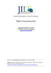 Journal of Information, Law and Technology Public e-Procurement in Italy Gioacchino Quadri di Cardano CIRSFID, University of Bologna gquadri@cirfid.unibo.it This is a revised conference paper published on: 30 January 2006. Citation: Quadri di Cardano, 'Public e-Procurement in Italy’, 2005 (2) The Journal of Information, Law and Technology (JILT). <http://www2.warwick.ac.uk/fac/soc/law/elj/jilt/2005_2/quadridicardano/> Abstract Since 1999 Italy has started to digitalize the purchase processes of public administrations adopting different public e-procurement models. After the self-evident success of electronic shops, since 2002 on-line auctions and marketplaces are being tested. The final goal is not only cost reduction, since public e-procurement can bring important benefits for transparency, competitiveness, and efficiency. Keywords: e-Procurement, Consip model, on-line auctions, virtual marketplace. 1. Introduction Italian public administration is used to purchase goods and services resorting to private law contracts and, more exactly, to that specific contract that we call “contratto di appalto” and that is defined by article 1655 of the civil code. In force of this contract one party -called appaltatore- engages himself in exchange of money to realize a work or to supply a good or a service, organizing the necessary means and equipments, and assuming all the management risks. However, if the contractual relationship between the public administration and the undertaker is entirely regulated by private law, the choice of the contractor must be made following procedures1 that are set by public law2, in order to guarantee the respect of those fundamental principles of the administrative action that are present also in many other legal systems, such as transparency, efficiency, parity of the tenderers, and similars. Therefore the legal doctrine uses to distinguish, into the purchasing process, a public stage that ends with the selection of the better offer and a private one that starts with the subscription of the contract. In the last five years, Italy -as well as other European countries- has been experimenting with public e-procurement, which is that set of legal rules and technologies that allow public administration to purchase goods and services using electronic methods in every stage of the purchasing process, from identification of requirement through to payment, and potentially to contract management3. Indeed public e-procurement is one of the 10 main objectives that the Italian government has fixed in its Guidelines for the Development of the Information Society4 and is an important step in the process of modernization and digitalization of the public administration5. Moreover those guidelines, and particularly e-procurement, are compliant with the e-Europe 2002 and e-Europe 2005 action plans6, that will be integrated by the forthcoming European Directive on on-line tenders7. If cost saving8 is obviously the main reason of interest for our governments, it is actually clear that e-procurement can bring important benefits, such as a higher transparency of the administrative action, an important simplification of the processes, and greater efficiencies that arise from the better monitoring of needs and costs, from the higher competition between tenderers, as well as from the possibility for the public administrations to interact with the contracting firms. Internet and computer technology can be used in both public and private phases, by this way creating different models of hybrid e-procurement, although it is clear that the final goal is the digitalization of the whole process. 2. The Consip Model Budget laws of 2000, 2001 and 20029 have introduced the possibility for the Ministry of Economics and Finances to stipulate frame contracts with contracting parties selected using public evidence procedures, that engage themselves to supply to ordering administrations goods or services at the conditions and under an amount that have been previously set in the frame contract (art. 26, L. 488/1999). It is a centralized purchase system that aims at consolidating the demand of goods and services in order to have higher rebates and a higher competitiveness between tenderers. Draws up the agreements Defines standards Surveys the expenses Agreement Procurement Defines needs Consumes in the limits of the agreement Picture 1 - The Consip Model The Ministry has permanently delegated with a decree of 24th February 2000 the realization, the management and the control of the procedures for the stipulation of the draft contracts, as well as the execution of all the informatic and telematic services, to Consip10 SpA, a public limited company with an exclusive mission to provide services as well as technological and know-how support to the government and to public administrations. Most of all Consip is called to co-operate with public administrations to monitor their needs in order to call for tenders for the stipulation of frame agreements. The process is quite simple and starts with the publication of a call for bids, which invite tenderers to send offers for the supply of a catalog of goods or services. The selection of the best bidder can be made using traditional procedures as well as with an on-line auction (see paragraph 2). Then Consip stipulates the frame contract with the winning tenderer, and the contract is published on Consip’s portal11 in the form of an on-line catalogue. Electronic Electronic Catalogues Catalogs Catalogs On On line line Auctions Auctions Market Market Place Place Purchase within frame contracts Address specific requests Virtual market Goods and services: • Standardized • Low price volatility • Slow obsolescence Goods and services: • Specialized • High price volatility • Rapid obsolescence Ideal for goods frequently purchased : • Low cost • Standardized • Highly fragmented Picture 2 - The CONSIP's Web Portal Consip’s web site is the main core of