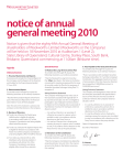 notice of annual general meeting 2010 Notice is given that the eighty-fifth Annual General Meeting of shareholders of Woolworths Limited (Woolworths or the Company) will be held on 18 November 2010 at Auditorium 1 (Level 2), State Library of Queensland, Cultural Centre, Stanley Place, South Bank, Brisbane, Queensland commencing at 11.00am (Brisbane time). Agenda Ordinary Business 1. Financial Statements and Reports To receive and consider the Financial Report of the Company and the Reports of the Directors and Auditor for the financial period ended 27 June 2010. 2. Remuneration Report To consider and, if thought fit, to pass the following resolution as an ordinary resolution: “That the Remuneration Report (which forms part of the Directors’ Report) for the financial year ended 27 June 2010 be adopted.” Note: the vote on this resolution is advisory only and does not bind the Directors or the Company. 3. Election of Directors (a)To elect as a Director Ms (Carla) Jayne Hrdlicka who is eligible for election in accordance with Article 10.7 of the Company’s Constitution and, being eligible, offers herself for election. (b)To elect as a Director Mr Stephen Mayne who is eligible for election in accordance with Article 10.5 of the Company’s Constitution and, being eligible, offers himself for election. (c)To re‑elect as a Director Mr Ian John Macfarlane who retires by rotation in accordance with Article 10.3 of the Company’s Constitution and, being eligible, offers himself for re‑election. Special Business 4. Woolworths Long-Term Incentive Plan To consider and, if thought fit, to pass the following resolution as an ordinary resolution: “That the Woolworths Long-Term Incentive Plan (Plan) described in the Notes to the Notice convening this meeting is approved for the issue of securities under the Plan for the purposes of Australian Securities Exchange Listing Rule 7.2, exception 9.” Voting Exclusion Statement The Company will disregard any votes cast on the resolution associated with agenda item 4 by any Director (except one who is ineligible to participate in any employee incentive scheme in relation to the Company) and any associate of that Director. However, the Company need not discard a vote if: –– it is cast by a Director or an associate of a Director as a proxy for a person who is entitled to vote, in accordance with the directions on the Proxy Form; or –– it is cast by a Director who is chairing the meeting as proxy for a person who is entitled to vote, in accordance with a direction on the Proxy Form to vote as the proxy decides. 6. Fees Payable to Non‑Executive Directors To consider and, if thought fit, to pass the following resolution as an ordinary resolution: “That, in accordance with Australian Securities Exchange Listing Rule 10.17 and the Company’s Constitution, the aggregate maximum amount of remuneration of the Non‑Executive Directors be increased by $1,000,000 per annum to $4,000,000 per annum.” Voting Exclusion Statement The Company will disregard any votes cast on the resolution associated with agenda item 6 by any of the Directors and any associate of a Director. However, the Company need not discard a vote if: –– it is cast by a Director or an associate of a Director as a proxy for a person who is entitled to vote, in accordance with the directions on the Proxy Form; or –– it is cast by a Director who is chairing the meeting as proxy for a person who is entitled to vote, in accordance with a direction on the Proxy Form to vote as the proxy decides. Dated: 29 September 2010 By order of the Board 5. Alterations to the Constitution To consider and, if thought fit, to pass the following resolution as a special resolution: “That the Company’s Constitution be altered by amending Articles 16.4 and 10.9 in the manner set out in the Notes to the Notice convening this meeting.” P J Horton Company Secretary Notice of Annual General Meeting 2010 Eligibility to Vote Regulation 7.11.37 of the Corporations Regulations 2001 (Cth) permits the Company to specify a time, not more than 48 hours before a general meeting, at which a ‘snap‑shot’ of shareholders will be taken for the purposes of determining shareholder entitlements to vote at the meeting. The Company’s Directors have determined that all shares of the Company that are on issue at 7.00pm (Sydney time) or 6.00pm (Brisbane time) on Tuesday 16 November 2010 shall, for the purposes of determining voting entitlements at the Annual General Meeting, be taken to be held by the persons registered as holding the shares at that time. This means that any person registered as the holder of an ordinary share in the capital of the Company at 7.00pm (Sydney time) or 6.00pm (Brisbane time) on Tuesday 16 November 2010, is entitled to attend and vote at the Annual General Meeting in respect of that share. Proxies A shareholder entitled to attend and vote is entitled to appoint not more than two proxies. A proxy need not be a shareholder of the Company. A shareholder who is entitled to cast two or more votes may appoint two persons and may specify the proportion or number of votes which each proxy is appointed to exercise. If no proportions are specified, each proxy may exercise half of the shareholder’s votes. If you wish to appoint a proxy, you can use the Proxy Form accompanying this Notice. You can also submit your proxy appointment online by visiting the webpage www.investorvote.com.au. To use this online facility, you will need your six digit Control Number, Shareholder Reference Number (SRN) or Holder Identification Number (HIN) and postcode, as shown on your Proxy Form. You will be taken to have signed the Proxy Form if you lodge it in accordance with the instructions on the website. A proxy cannot be appointed electronically by a person appointed by a shareholder under a Power of Attorney or similar authority. The online proxy facility may not be suitable for some shareholders who wi