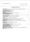 PROGRAMME SPECIFICATION PROGRAMME SPECIFICATION Programme title: MSc in Neuroscience, Language and Communication Final award (BSc, MA etc): MSc (where stopping off points exist they should be detailed here and defined later in the document) UCAS code: (where applicable) Intake cohort(s) to which this programme specification is applicable: From 2013 intake onwards (e.g. from 2015 intake onwards) Awarding institution/body: University College London Teaching institution: University College London Faculty: Brain Sciences Parent Department: Division of Psychology and Language Sciences (Human Communication Science) (the department responsible for the administration of the programme) Web page address: None, this programme is no longer open for applications (if applicable) Method of study: Full-time/Part-time Full-time/Part-time/Other Length of the programme: 1 Year Full-time/ 2 Years Part-time (please note any periods spent away from UCL, such as study abroad or placements in industry) Level on Framework for Higher Education Qualifications (FHEQ) (see Guidance notes) Relevant subject benchmark statement (SBS) (see Guidance notes) Masters Level (Level 7) at date of production – no relevant post-graduate benchmark Brief outline of the structure of the programme / its assessment: (see guidance notes) Board of Examiners: All students complete three mandatory modules PALSG101 (assessed by unseen written exam), PALSG102 (assessed by unseen written exam and coursework) and PLING121 (assessed by a take-home exam). Students choose four optional modules from a prescribed list, each is assessed by a 3,000 word essay. All students complete a 10,000 research project. Mandatory modules (120 credits) Optional modules (60 credits) PALSG101 – 15 credits PALSG102 – 30 credits PLING121 – 15 credits HCSCGH98 – 60 credits PALSG103 – 15 credits PALSG201 – 15 credits PALSG202 – 15 credits PALSG203 – 15 credits PALSG208 – 15 credits PALSG301 – 15 credits PALSG302 – 15 credits PALSG303 – 15 credits PLING156 – 15 credits i) Name of Board of Examiners: MSc in Neuroscience, Language and Communication Professional body accreditation (if applicable): Date of next scheduled accreditation visit: EDUCATIONAL AIMS OF THE PROGRAMME: The programme will: (a) give students an understanding of the theoretical disciplines underpinning the study of language and human communication and of brain and language relations (b) develop students ability to evaluate theories and to construct and test hypotheses about language and human communication, its acquisition, development and impairments; (c) familiarise students with experimental methodologies and experimental design and improve their skills in data analysis. PROGRAMME OUTCOMES: The programme provides opportunities for students to develop and demonstrate knowledge, understanding and skills in the following areas: A: Knowledge and understanding Knowledge and understanding of: 1. Theories and models essential to the study of language and human communication, its acquisition, development and impairments. 2. Brain and language relations 3. How to evaluate current research and identify key issues for future research 4. Basic principles of syntax 5. Basic principles of experimental design, descriptive statistics, statistical tests, computerised data management and statistical analysis 6. Principles of qualitative data analysis appropriate to different types of language and speech data. Intellectual (thinking) skills: Critical evaluation of theories and the understanding of what constitutes empirical evidence for a hypothesis. b) Critical evaluation of different research methods used across a range of disciplines in the study of language and human communication. c) The use of theoretical frameworks to describe and explain data. d) Development of reasoning skills, the generation of ideas, rationale and arguments. a) Teaching/learning methods and strategies: (1) Through direct teaching in all modules, student-led seminars in option modules, and the research project. Students are encouraged to undertake independent reading to broaden their knowledge and understanding across the range of topics. (2) Through direct teaching, guided and independent reading of current research papers (3) Through seminars in critical analysis of research papers during the second term of Research Design module; oral presentations and discussion of research project designs, and the supervised research project. (4) Through direct teaching and tutorials in the Introduction of syntax module. (5) Through direct teaching, guided practice and project work (6) Through direct teaching and exercises in Conversation analysis module Assessment: Students are assessed through a combination of unseen examination, take home examination, essay and research project. The research project plays a major role in the assessment as it counts for 40% of total marks. B: Skills and other attributes Teaching/learning methods and strategies: (1) through lectures, seminars and class discussion in all core and option modules. (2) through sessions on critical analysis in second term of Research Design module. (3) through feedback on essays which focuses attention on how arguments should be constructed and relevant evidence produced. (4) through the planning and execution of the research project which involves the critical evaluation of the relevant literature; identifying research questions; designing of the study; collecting and analysing data; drawing out theoretical implications from the results and relating the interpretation of the results to the literature. (5) through oral presentations of research project plans, with discussions that focus attention on how hypotheses are developed and the appropriate methods of investigation. Assessment: For essays, marks are awarded for critical evaluation and reasoning. The project involves precise data description and analysis, problem solving, hypothesis formation and testing. 