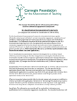 The Carnegie Foundation for the Advancement of Teaching Elective Community Engagement Classification Re-classification Documentation Framework (for campuses that received the Classification in 2006 or 2008) The Re-classification Documentation Framework is intended to help you gather information about your institution's current community engagement commitments and activities as well changes that have taken place since your campus last received the classification. The framework comprises all of the questions that appear on the 2015 Documentation Reporting Form (i.e., the application), and seeks evidence of how community engagement has become deeper, more pervasive, better integrated, and sustained. The focus is on depth and quality within a sustainable institutional context, not greater quantity per se. (The framework is for use as a reference and worksheet only. Please do not submit it as your application.) The re-classification documentation framework is designed for an evidence-based reflective process focusing on what has changed since receiving the classification. It is structured to include narrative responses allowing for explanation of changes that have occurred since the previous classification. The narratives are designed to address (1) what currently exists, (2) changes since the last classification, and (3) relevant supporting evidence. Data Provided: The classification will be determined based on activities and processes that have been implemented, not those that are anticipated. The data provided in the application should reflect the most recent academic year. Since campuses will be completing the application in academic year 2013-2014, data should reflect evidence from AY 2012-2013. If this is not the case, please indicate in the Wrap-Up section of the application what year the data is from. Wherever requested, please provide links to relevant campus web resources in addition to evidence provided in the application. Reviewers for the Carnegie Foundation may want to examine websites to provide additional clarification of the responses in the application. Reviewers also may ask for a telephone conversation to clarify evidence provided. Use of Data: The information you provide will be used solely to determine your qualifications for the community engagement classification. Re-classified institutions will be announced publicly in January 2015. Only those institutions approved for reclassification will be identified. At the end of the survey, you will have an opportunity to authorize or prohibit the use of this information for research purposes. Applicant’s Contact Information Please provide the contact information of the individual submitting this application (for Carnegie Foundation use only): First Name Last Name Title Institution Mailing address 1 Mailing address 2 City State Zip Code Phone Number Email Address Full Name of Institution’s President/Chancellor President/Chancellor’s Mailing Address President/Chancellor’s Email Address Community Engagement Definition Community engagement describes the collaboration between institutions of higher education and their larger communities (local, regional/state, national, global) for the mutually beneficial exchange of knowledge and resources in a context of partnership and reciprocity. The purpose of community engagement is the partnership of college and university knowledge and resources with those of the public and private sectors to enrich scholarship, research, and creative activity; enhance curriculum, teaching and learning; prepare educated, engaged citizens; strengthen democratic values and civic responsibility; address critical societal issues; and contribute to the public good. I. Foundational Indicators A. President/Chancellor’s Leadership Statement Required Documentation. 1. Provide a letter from the President/Chancellor or Provost (Vice President for 2015 Carnegie Elective Community Engagement Classification: Re-classification Documentation Framework page 2 Academic Affairs) that: a. Indicates their perception of where community engagement fits into their leadership of the institution, b. Describes community engagement’s relationship to the institution’s core identity, strategic direction, and practices, and c. Discusses how engagement is institutionalized for sustainability in the institution. Please EITHER copy and paste the text of the letter in the following textbox OR upload a PDF copy of the letter below: d. In addition to the letter, provide evidence of recent statements of affirmation of community engagement. In the grid below, provide excerpts from the relevant documents and a web link to the full document if it exists. Document Excerpt Annual addresses/speeches (word limit: 500): Web Link (if available) Published editorials (word limit: 500): Campus publications (word limit: 500): Other (word limit: 500): B. Institutional Identity and Culture Required Documentation. Please complete all three (3) questions in this section. 1.a. Does the campus have an institution-wide definition of community engagement (or of other related terminology, e.g., civic engagement, public engagement, public service, etc.)? No Yes Please identify the document or website where the institution-wide definition of community engagement appears and provide the definition (word limit: 500): 1.b. How is community engagement currently specified as a priority in the institution’s mission, vision statement, strategic plan, and accreditation/reaffirmation documents? Provide excerpts from the relevant documents and a web link to the full document if it exists. 2015 Carnegie Elective Community Engagement Classification: Re-classification Documentation Framework page 3 Document Excerpt Mission or vision statement (word limit: 500): Web Link (if available) Strategic plan (word limit: 500): Accreditation/reaffirmation document/QEP (word limit: 500): Other (word limit: 500): 2. Briefly discuss any significant changes in mission, planning