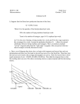 DUSP 11.203 Microeconomics Frank Levy October 7, 2010 Problem Set #4 1) Suppose fast food firms have production functions of the form: Q = G(FM, Teens) Where: Q is the quantity of fast food produced per week, FM is the number of frying machines leased per week. Teens is the number of teenagers, ages 16-19, employed per week. Let V be the cost of leasing a frying machine for a week and W be the wage required to hire a teenager for a week. Assume the production function, G( ) allows for normal substitution between frying machines and teenagers. That is, it produces standard “curved” isoquants rather than the “right angle” isoquants of the one-person-with-oneshovel example we briefly discussed in class. a, Draw a set of diagrams that shows how we begin with isoquants and isocost lines and cost minimization and show how this leads to the total cost curve for a fast food firm. Then show how the total cost curve leads to the average and marginal cost curves. Draw the isocost lines to show equal increments of cost - $10,000, $20,000, $30,000 etc. Then label the isoquant lines so that the resulting total cost curve first shows increasing returns as output expands and then decreasing returns. Labor Capital $100,000 $300,000 $400,000 1 $500,000, etc. Answer (part 1) (I am still a little challenged by the drawing tools in Word). As asked for in the problem, the isocost lines are spaced at equal distances – say each line representing $100,000 more in expenditure than the previous line. Increasing returns means that if you double your expenditure, you more than double your output. So if the lowest isoquant is labeled 200 units, then the second lowest isoquant should be labored something larger than 400 units – say 450. The third isocost line is $300,000 - a 50% increase over the second isocost line – so increasing returns here would mean more than a 50% increase in 450 units – say 700 units. As you continue to move out, you can illustrate decreasing returns using the same logic. If we move from the $500,000 isocost line to the $600,000 isocost line, we have increased the cost of inputs by 20 percent and decreasing returns here says that the increase in output should be less than 20 percent, etc. This isocost/isoquant diagram results in the standard Average Cost/Marginal Cost Diagram that shows first falling Average Costs (reflecting increasing returns to scale) and then rising Average Costs and a the corresponding drawing for total costs. Marginal Cost $/Q Average Cost Quantity 2 $ Quantity b. Suppose a technical innovation in frying machines reduces V, the lease cost, by one-half. Use a series of drawings to show (roughly) how this fall in V changes your isoquant/isocost map, the total cost curve, average cost curve and the marginal cost curve. Answer: We can see the main story by looking at a typical tangency on the isocost/isoquant map: Labor Q = 740 Q = 700 Isocost line with lower lease cost Capital Cost = $20,000 As the lease cost of frying machines falls, the isocost line (in this case for $20,000) rotates counter-clockwise – i.e. if you spend all your money on labor, you can purchase the same as before but if you spend all your money on leasing frying machines, you can purchase twice as much as before. The new isocost line is the dashed line above). 3 While the isocost lines rotate counterclockwise, the isoquant lines don’t change 1. In the drawing above, the old $20,000 isocost line was tangent to an isoquant of 700 units of food. After the fall in the leasing cost of frying machines, the new $20,000 isocost line is tangent to a higher isoquant – in this case 740 units of food. Bottom line: After the lease cost of frying machines falls, every level of output, Q, costs less than it used to cost. This means that at any level of output, your Total Cost Curve, Average Cost Curve and Marginal Cost Curve should all shift down. From the information given, we don’t know whether every point on a, say, the MC curve, shifts down by the same amount because that depends on the particular isoquants/production function. c. The lower lease rate of frying machines means that fewer teenagers will be hired per unit of fast food. Does it follow that fewer teenagers will be hired in the fast food industry? How does the price elasticity of demand for fast food affect your answer? Answer: Since minimum average cost is now lower for each individual firm, competition will force the price of fast food to be lower. If demand is very elastic, the lower price may cause a sufficient increase in demand and output that the number of teenagers hired increases – i.e. there are fewer teenagers hired per unit of food but the number of units of food produced grows enough to compensate. In some sense, this was the strategy used by Henry Ford in instituting the assembly line – the 2) Assume that chickens are produced by many farmers in a perfectly competitive industry. All farmers have identical technologies and minimum average cost is reached at $3.00 per chicken. - On Friday, October 7, 2010, the industry is in long run equilibrium. - On Monday, October 10, 2010, the government imposes a tax of 25 cents per chicken. a) Using appropriate diagrams, draw the equilibrium for the industry and the representative chicken farmer as of October 5. Answer: By saying October 5 instead of October 7, I was unnecessarily confusing. I wanted a picture of the industry and firm in equilibrium. That picture looks like this: 1 Make sure you understand why the isoquants don’t change. Think about the analogy to utility maximization. If the price of hamburgers falls, the budget line will rotate and your utility maximizing solution will probably involve more hamburgers and fewer apples but the shape of the indifference curves does not change. 4 Industry Representative Farm Marginal Cost Average Cost $3.00 per chicken $3.00/ch. Chickens (millions) Chickens (hundreds) Answer: This is our standard drawing. In considering how 