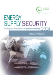 Secure Sustainable Together ENERGY SUPPLY SECURITY Emergency Response of partner countries 2014 INDONESIA PAGE 1 PROVIDED BY CIO General disclaimer: data and figures used in this publication is from IEA statistics unless otherwise noted. INDONESIA Table of contents Table of contents List of Figures 2 3 Overview 4 1. Energy Outlook 6 2. Oil 2.1 Market Features and Key Issues Imports/exports and import dependency Oil Company Operations Taxes and maximum price mechanism 2.2 Oil Supply Infrastructure Refining Pipelines and Ports Storage Capacity 2.3Oilemergency policy and emergency organisation Emergency response policy Emergency organisation Regional cooperation on oil supply disruptions 2.4 Stocks Stockholding structure Crude or products Location and availability Monitoring Stock drawdown and timeframe Financing and stockholding costs 8 8 9 10 10 11 11 12 12 13 13 13 14 15 15 15 15 16 16 16 3. Other Measures 3.1 Demand Restraint 3.2 Fuel Switching 3.3 Others 17 17 18 18 4. Natural Gas 19 19 19 19 20 20 22 22 23 23 24 24 4.1 Market Features and Key Issues Gas production Gas demand Gas import dependency Gas company operation 4.2 Natural Gas Supply Infrastructure Ports/LNG terminals Pipelines Storage 4.3 Natural Gas Emergency Policy Emergency response measures Overview 2 INDONESIA 5. Electricity 5.1 Market Features and Key Issues Supply and demand trends Electricity company operation and market 5.2 Electricity Supply Infrastructure Networks Generation capacity and production 5.3 Electricity Emergency Policy Emergency management and restoration response Communications 26 26 26 27 27 27 28 30 30 32 List of Figures Total Primary Energy Supply 6 Energy mix target towards 2050 6 Oil demand by product 8 Import dependency by fuel in 2013 9 Oil Infrastructure Map 11 Oil Consumption by Sector 17 Natural gas production (1970-2012) and projection (2013-2028) 19 Natural gas consumption by sector 20 Natural Gas Infrastructure Map 22 Electricity consumption 26 Electricity generation, by fuel 27 Electricity Infrastructure Map 28 Installed capacity in regional systems 29 Overview 3 INDONESIA Overview Indonesia’s Total Primary Energy Supply (TPES) stood at 209 Mtoe in 2011 – a 27% increase from 2002 according to the IEA statistics. With a rapidly growing economy as well as the fourth most populous country in the world, the country’s energy consumption grows at around 7% per year. The National Energy Policy (NEP) forecasts that TPES will reach 400 Mtoe in 2025, 480 Mtoe in 2030 and 1,000 Mtoe in 2050. From IEA data oil has been the dominant energy source since 1999, accounting for 35% of the country’s TPES in 2011, while the Indonesian statistics show that the share of oil in the TPES represented 49% of the TPES in 2010. Natural gas has also played an important role since the 1980s. Its share in the country’s TPES has been stable at around 20%. As a mature oil producing country, Indonesia is facing decline in large mature oil fields and very limited large new prospects. Indonesia produced 824 kb/d of crude oil in 2013 - a 14% decline from 2007. According to the Indonesian government, the country’s fuel demand rapidly increased from around 1 mb/d in 2008 to 1.3 mb/d in 2013, and it is projected to increase to 1.7 mb/d in 2020. By comparison, the IEA statistics show Indonesian total oil demand has already reached 1.6 mb/d in 2012 and it is expected to exceed 2 mb/d in 2019. The transport sector accounted for 52% of total oil consumption in 2011. Indonesia’s oil imports in 2011 were 990 kb/d, consisting of 382 kb/d of crude oil and of NGL, and 608 kb/d of refined products. The country maintains subsidies on gasoline, diesel and kerosene. There are 10 refineries with a combined capacity of around 1.2 mb/d. The country has eight main product storage areas with a combined capacity of 30.3 mb which can only meet 18-23 day average oil demand of the country. The country does not have either public emergency oil stocks or compulsory industry stocks, but relies solely upon operational stocks amounting to 21-23 days of consumption. However, the Indonesian government aims at creating a national energy reserve system which includes Energy Buffer Reserves (EBR) which can be categorised as public emergency stocks. The National Energy Council made a proposal to hold 30 days of net imports. The county also aims at increasing the level of operational stocks to 30 days of consumption. There is no legal framework for demand restraint measures although local governments have implemented demand restrictions in order to control consumption of subsidised fuel. Indonesia is one of the important natural gas producers/exporters in the region. In 2012 the country produced 76.7 billion cubic metres according to the IEA statistics. Indonesia’s demand for natural gas significantly increased from 35 bcm in 2002 to 39 bcm in 2012. In 2011 the transformation/energy sector was the largest consumer of natural gas in Indonesia, representing about 49% of the country’s total natural gas consumption. In 2010 the Indonesian government introduced a priority allocation mechanism for the use of Domestic Market Obligation (DMO) gas, prioritising gas use for oil and gas production, the fertiliser industry, the power generation sector, and other industrial sectors. Fast-rising demand and limited interconnections between countries in Southeast Asia have prompted the installation of several LNG regasification terminals in recent years. Indonesia’s first regasification terminal, a floating storage and regasification unit (FSRU) with a capacity of 4.1 bcm in west Java, started receiving deliveries in Overview 4 INDONESIA 2012. The Lampung FSRU site with a capacity of 2 bcm has also stated its operation in September 2014. The country also plans to construct several FSRU facilities with a combined capacity of around 8 bcm. Those FSRU facilities would contribute to enhancing security of natural gas supply by providing alternative resources, mor