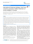 Bhatti et al. BMC Veterinary Research (2015) 11:176 DOI 10.1186/s12917-015-0464-z CORRESPONDENCE Open Access International Veterinary Epilepsy Task Force consensus proposal: medical treatment of canine epilepsy in Europe Sofie F.M. Bhatti1*, Luisa De Risio2, Karen Muñana3, Jacques Penderis4, Veronika M. Stein5, Andrea Tipold5, Mette Berendt6, Robyn G. Farquhar7, Andrea Fischer8, Sam Long9, Wolfgang Löscher10, Paul J.J. Mandigers11, Kaspar Matiasek12, Akos Pakozdy13, Edward E. Patterson14, Simon Platt15, Michael Podell16, Heidrun Potschka17, Clare Rusbridge18,19 and Holger A. Volk20 Abstract In Europe, the number of antiepileptic drugs (AEDs) licensed for dogs has grown considerably over the last years. Nevertheless, the same questions remain, which include, 1) when to start treatment, 2) which drug is best used initially, 3) which adjunctive AED can be advised if treatment with the initial drug is unsatisfactory, and 4) when treatment changes should be considered. In this consensus proposal, an overview is given on the aim of AED treatment, when to start long-term treatment in canine epilepsy and which veterinary AEDs are currently in use for dogs. The consensus proposal for drug treatment protocols, 1) is based on current published evidence-based literature, 2) considers the current legal framework of the cascade regulation for the prescription of veterinary drugs in Europe, and 3) reflects the authors’ experience. With this paper it is aimed to provide a consensus for the management of canine idiopathic epilepsy. Furthermore, for the management of structural epilepsy AEDs are inevitable in addition to treating the underlying cause, if possible. Keywords: Dog, Epileptic seizure, Epilepsy, Treatment Background In Europe, the number of antiepileptic drugs (AEDs) licensed for dogs has grown considerably over the last years. Nevertheless, the same questions remain, which include, 1) when to start treatment, 2) which drug is best used initially, 3) which adjunctive AED can be advised if treatment with the initial drug is unsatisfactory, and 4) when treatment changes should be considered. In this consensus proposal, an overview is given on the aim of AED treatment, when to start long-term treatment in canine epilepsy and which veterinary AEDs are currently in use for dogs. The consensus proposal for drug treatment protocols, 1) is based on current published evidence-based literature [17], 2) considers the current legal framework of the cascade regulation for the prescription of veterinary * Correspondence: sofie.bhatti@ugent.be 1 Department of Small Animal Medicine and Clinical Biology, Faculty of Veterinary Medicine, Ghent University, Salisburylaan 133, Merelbeke 9820, Belgium Full list of author information is available at the end of the article drugs in Europe, and 3) reflects the authors’ experience. With this paper it is aimed to provide a consensus for the management of canine idiopathic epilepsy. Furthermore, for the management of structural epilepsy AEDs are inevitable in addition to treating the underlying cause, if possible. At present, there is no doubt that the administration of AEDs is the mainstay of therapy. In fact, the term AED is rather inappropriate as the mode of action of most AEDs is to suppress epileptic seizures, not epileptogenesis or the pathophysiological mechanisms of epilepsy. Perhaps, in the future, the term anti-seizure drugs might be more applicable in veterinary neurology, a term that is increasingly used in human epilepsy. Additionally, it is known that epileptic seizure frequency appears to increase over time in a subpopulation of dogs with untreated idiopathic epilepsy, reflecting the need of AED treatment in these patients [63]. In our consensus proposal on classification and terminology we have defined idiopathic epilepsy as a disease in © 2015 Bhatti et al. This is an Open Access article distributed under the terms of the Creative Commons Attribution License (http://creativecommons.org/licenses/by/4.0), which permits unrestricted use, distribution, and reproduction in any medium, provided the original work is properly credited. The Creative Commons Public Domain Dedication waiver (http:// creativecommons.org/publicdomain/zero/1.0/) applies to the data made available in this article, unless otherwise stated. Bhatti et al. BMC Veterinary Research (2015) 11:176 its own right, per se. A genetic origin of idiopathic epilepsy is supported by genetic testing (when available) and a genetic influence is supported by a high breed prevalence (>2 %), genealogical analysis and /or familial accumulation of epileptic individuals. However in the clinical setting idiopathic epilepsy remains most commonly a diagnosis of exclusion following diagnostic investigations for causes of reactive seizures and structural epilepsy. Aims of AED treatment The ideal goal of AED therapy is to balance the ability to eliminate epileptic seizures with the quality of life of the patient. Seizure eradication is often not likely in dogs. More realistic goals are to decrease seizure frequency, duration, severity and the total number of epileptic seizures that occur over a short time span, with no or limited and acceptable AED adverse effects to maximize the dog’s and owner’s quality of life. Clinicians should approach treatment using the following paradigm [23, 76, 91, 92, 120]: – Decide when to start AED treatment – Choose the most appropriate AED and dosage – Know if and when to monitor serum AED concentrations and adjust treatment accordingly – Know when to add or change to a different AED – Promote pet owner compliance When to recommend maintenance AED treatment? Definitive, evidence-based data on when to start AED therapy in dogs based on seizure frequency and type is lacking. As such, extrapolation from human medicine may be possible to provide treatment guidelines. Clinicians should consider the general health of the patient, as well as the owner’s lifestyle, fina