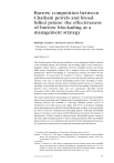 Burrow competition between Chatham petrels and broadbilled prions: the effectiveness of burrow blockading as a management strategy Phillipa Gardner 1 and Kerry-Jayne Wilson 2 1 2 Thistledown, Coutts Island Road, RD, Christchurch, New Zealand Ecology and Entomology Group, PO Box 84, Lincoln University, New Zealand ABSTRACT The Chatham petrel (Pterodroma axillaris) is an endangered seabird endemic to the Chatham Islands, New Zealand. The breeding range is now restricted to Rangatira Island. Burrow competition between Chatham petrels and broadbilled prions (Pachyptila vittata), has a negative effect on Chatham petrel productivity. Burrow blockading is a management strategy developed by the Department of Conservation in response to burrow competition. Chatham petrel burrows are blockaded (by a gate set over the entrance) between July and October each year to prevent broad-billed prions from breeding in them. Blockades are removed shortly before Chatham petrels return to commence breeding. To determine the effectiveness of burrow blockading, Chatham petrel burrows were monitored daily over two consecutive breeding seasons (November 1995 to May 1996 and November 1996 to June 1997) to record the frequency and result(s) of broad-billed prion interference. This study found burrow blockading to be ineffective in deterring broad-billed prions from interfering with Chatham petrel breeding burrows, but effective in ensuring burrows are available to returning Chatham petrels. Levels of interference over both seasons were high, with 87.3% of all known Chatham petrel breeding burrows affected. Broad-billed prions are likely to be responsible for 68.9% of known Chatham petrel breeding failures. Although broad-billed prions are known to oust, injure and kill Chatham petrel chicks, the majority of interferences (78.8%) caused no physical harm. Broad-billed prions caused at least four adult Chatham petrels to desert during incubation. Most broad-billed prions (where sex was confirmed) that interfered with Chatham petrel burrows were male (64%) and had no recorded prior association with the burrow. © November 1999, Department of Conservation. This paper may be cited as: Gardner, P.; Wilson, K.-J. 1999: Burrow competition between Chatham petrels and broad-billed prions: the effectiveness of burrow blockading as a management strategy. Science for Conservation 131B: 2337. Or in full as: Gardner, P.; Wilson, K.-J. 1999: Burrow competition between Chatham petrels and broad-billed prions: the effectiveness of burrow blockading as a management strategy. Pp. 2337 in: Gardner, P.; Wilson, K.-J. 1999: Chatham petrel (Pterodroma axillaris) studiesbreeding biology and burrow blockading. Science for Conservation 131. 37p. Science for conservation 131B 23 1. Introduction Broad-billed prions (Pachyptila vittata) have a negative impact on Chatham petrel (Pterodroma axillaris) productivity resulting from burrow competition. Broad-billed prions are only absent from Rangatira island (Chatham Islands, New Zealand) for approximately 56 weeks (between January and February), when they leave to moult. From February to July (non-breeding season), they use burrows when on land. Their return in February coincides with the hatching of Chatham petrel chicks. Interference by broad-billed prions during the chick-rearing period is often detrimental to chick survival, as broad-billed prions are known to oust, injure and kill Chatham petrel chicks of all ages. Broad-billed prions are also known to cause incubating Chatham petrels to desert (pers. obs.; G.A. Taylor, pers. comm.). Burrow competition between the species, while perhaps a naturally occurring phenomenon, may not have been as intense in the past as it is today. Increased burrow competition on Rangatira Island may be a symptom of wider issues concerning loss of breeding habitats, the introduction of mammalian predators and habitat change in the Chathams archipelago. The Chatham petrel as a species is particularly vulnerable to this competition as the only known population breeds on Rangatira Island. To address and alleviate the problem of inter-specific burrow competition, broad-billed prions were excluded from Chatham petrel burrows. The use of baffles, such as those used by Wingate (1977) with Bermuda petrels (Pterodroma cahow) to exclude white-tailed tropic birds (Phaethon lepturus), was not possible as broad-billed prions are very similar in size to Chatham petrels, and to exclude one would be to exclude the other. Therefore, the Department of Conservation developed the management strategy of burrow blockading in 1994, whereby broad-billed prions are denied access to Chatham petrel burrows during the first half of the prion breeding season (JulyOctober). The blockades (gates constructed of wire and plastic garden mesh (Fig. 1a,b p. 39)) are placed across the entrances of all known Chatham petrel burrows in July. They are removed (late October to early November) before Chatham petrels return to the island to reoccupy their burrows and commence courtship. Artificial burrows with nova pipe tunnels prevent broad-billed prions digging past a blockade. This strategy not only ensures the availability of the burrows to returning Chatham petrels but attempts to break any bond a broad-billed prion may have for a particular Chatham petrel breeding burrow. By preventing broad-billed prions from breeding in Chatham petrel burrows it was hoped that the birds would have no reason to return and interfere with burrows during the Chatham petrel breeding season (Late November to June). 24 Gardner & WilsonBurrow competition between Chatham petrels and broad-billed prions 2. Objectives To determine the effectiveness of burrow blockading in deterring broadbilled prions from interfering with Chatham petrel burrows. To establish how often broad-billed prions evict or kill Chatham petrel eggs or chicks in occupied burrows. 3. Method To test the effectiveness of burrow blockading as a technique for redu