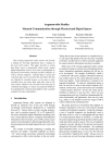Augment-able Reality: Situated Communication through Physical and Digital Spaces Jun Rekimoto Yuji Ayatsuka Sony Computer Science Laboratory Information Technology Laboratories Dept. of Information Science 3-14-13 Sony Corporation Tokyo Institute of Technology Higashigotanda, Shinagawa-ku Kitashinagawa, Shinagawa-ku Ookayama Meguro-ku Tokyo 141-0022 Japan Tokyo 141-0001 Japan Tokyo Japan rekimoto@csl.sony.co.jp aya@csl.sony.co.jp k-hayasi@is.titech.ac.jp Abstract Most existing augmented reality systems only provide a method for browsing information that is situated in the real world context. This paper describes a system that allows users to dynamically attach newly created digital information such as voice notes or photographs to the physical environment, through wearable computers as well as normal computers. Attached data is stored with contextual tags such as location IDs and object IDs that are obtained by wearable sensors, so the same or other wearable users can notice them when they come to the same context. Similar to the role that Post-it notes play in community messaging, we expect our proposed method to be a fundamental communication platform when wearable computers become commonplace. 1 Introduction Augmented Reality (AR) systems are designed to provide an enhanced view of the real world through see-through head-mounted displays[16] or hand-held devices[11]. Various kinds of context sensing technologies, such as position sensors[5, 4], or ID readers[11], are used to determine digital information according to the user’s current physical context. Compared with traditional information retrieval systems, users of AR systems can get context-aware information without being bothered by cumbersome operations that might impede the user’s real-world tasks. The concept of wearable computing is pushing this direction even further. Wearable computers are always ‘‘on’’ always acting, and always sensing the surrounding environment to offer a better interface to the real world. Kazuteru Hayashi Taking into account recent advances in wearable devices, we can expect that people will soon carry their wearables at all times, and that our lives will be constantly supported by context-sensitive information from those wearables. While most of the existing augmented reality systems are mainly focusing on context-aware information presentation, information registration interfaces for AR are yet to be investigated. For example, KARMA[4], which is a well-known AR system, displays information about the laser printer based on the current physical position of a head-worn display. Such information is assumed to be prepared beforehand. To add new information during a task, the user has to return to the normal computer environment. In that sense, current AR systems are essentially ‘‘context-sensitive browsers’’ for the real world, and information is limited to a one-way flow. Since two-way communication tools (e.g, E-mail) have fundamentally different functionality and applications from one-way tools (e.g., radio), we can imagine several new usages of AR if it allows bidirectional communications. This paper presents an environment that supports information registration in the real world contexts through wearable and traditional computers. Using this technique, a user of wearable computers can dynamically create a data item such as a voice or a photograph and can attach it to nearby physical objects or locations. To enable this, the system supports drag-and-drop operations between personal and context-sensitive spaces. The user of traditional computers can also add data to the physical environment through the Web and E-Mail interfaces. By combining these information flows, we can freely transfer data from physical space to digital space, or vice versa. We call such an environment "augment-able reality", because users of our system are not just browsing information situated in Wearable Computer Real World Environment Context-sensitive Information Physical Context Sensor Database As we can see in this example, the concept of augmentable reality can be summarized in features outlined in the following sections. Dynamic creation of augmenting information (a) Traditional Augmented Reality Systems Wearable Computer Real World Environment Context-sensitive Information Sensor Physical Context Database Voice, Photo, Dynamic Creation of Text, etc. Augmenting Information Commnication through situated Digital Information Room A Information Registration and Browsing through WWW and E-Mail Interfaces People wearing computers and having network facilities can dynamically create information and attach it to the user’s surrounding physical environment. From the system’s point of view, this is achieved by storing a created data item with contextual information obtained from several wearable sensors. Our current prototype supports infrared beacons and visual ID markers as contextual information. Another possibility is to use geographical locations based on GPS (global positioning system) or PHS (personal handy phone) as contextual information. There are several possibilities about data types that can be attached to the environment. Our current prototype supports voice notes and photograph snapshots. Other possible data types are text (created by a wearable keyboard) or hand-drawn strokes (created by a miniature touch panel). (b) Augmentable Reality Environments Figure 1: The Augment-able Reality Concept the real world, but can also create, attach, or carry the data with them. 2 Augment-able Environments Let us start with a scenario when augment-able reality becomes commonplace. When you enter the video studio, your eyeglass notifies you that a new video effector has been installed. You approach the effector and find a movie that was attached by your colleague, describing typical usage of equipment. Meanwhile, you find the VCR is broken and the tape has been damaged. You create a voice-note with a still pi