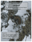 AR-08 EXECUTIVE SUMMARY In 2008, the University of Arizona Mt. Graham Red Squirrel Monitoring Program continued efforts to document aspects of red squirrel population biology and food resources in the established study areas around the Mt. Graham International Observatory in the Pinaleño Mountains, Graham County, Arizona. A complete census of the study areas was made in March, June, September, and December 2008. Overall annual mean mushroom production in 2008 was 1½ times greater than in 2007, and was the sixth highest crop since data collection began in 1994. Seed production for 2007 (1 year delay in reporting due to methodology), was > 65 times lower than in 2006, and the 2007 seed crop ranked 13/15 (15 = lowest seed crop) since data collection began in 1993. Overwinter survival, calculated as animals surviving from December 2007 to June 2008, was relatively high in TR habitat (78%) and lower in SF habitat (50%). Eight litters were confirmed on or near the monitored areas in 2008. From these 8 litters, 30 juveniles were known to emerge from natal nests and 15 of them were live-trapped and marked. Squirrel populations in December 2008 (28 Adults) were slightly higher than the previous December (26Ad). The 2008 squirrel populations in TR habitat stayed fairly steady or decreased slightly throughout the year. However in SF habitat, small but steady increases were seen through December, when populations (7Ad on SFC, SFN) were at or near the highest numbers seen in the past four years If the squirrels near the monitored areas (within 100m) are included, no change in population was seen from December 2007 (33 squirrels) to December 2008 (33 squirrels). i AR-08 Table of Contents INTRODUCTION . . . . . . . . . . . . . . . . . . . . . . . . . . . . . . . . . . . . . . . . . . . . . . . . . . . . . . . . . . . . . . . 1 Study Area . . . . . . . . . . . . . . . . . . . . . . . . . . . . . . . . . . . . . . . . . . . . . . . . . . . . . . . . . . . . . . . . 1 METHODS . . . . . . . . . . . . . . . . . . . . . . . . . . . . . . . . . . . . . . . . . . . . . . . . . . . . . . . . . . . . . . . . . . . . . 2 Red Squirrel Food Resources . . . . . . . . . . . . . . . . . . . . . . . . . . . . . . . . . . . . . . . . . . . . . . . . . 2 Conifer Seed Production . . . . . . . . . . . . . . . . . . . . . . . . . . . . . . . . . . . . . . . . . . . . . . . 2 Mushroom Production . . . . . . . . . . . . . . . . . . . . . . . . . . . . . . . . . . . . . . . . . . . . . . . . . 3 Population Biology . . . . . . . . . . . . . . . . . . . . . . . . . . . . . . . . . . . . . . . . . . . . . . . . . . . . . . . . . 3 Midden Occupancy . . . . . . . . . . . . . . . . . . . . . . . . . . . . . . . . . . . . . . . . . . . . . . . . . . . 3 Overwinter Survival . . . . . . . . . . . . . . . . . . . . . . . . . . . . . . . . . . . . . . . . . . . . . . . . . . . 4 Spatial Distribution . . . . . . . . . . . . . . . . . . . . . . . . . . . . . . . . . . . . . . . . . . . . . . . . . . . 4 Reproductive Activity and Success . . . . . . . . . . . . . . . . . . . . . . . . . . . . . . . . . . . . . . . . . . . . . 5 Trapping and Marking . . . . . . . . . . . . . . . . . . . . . . . . . . . . . . . . . . . . . . . . . . . . . . . . . . . . . . . 5 Mapping . . . . . . . . . . . . . . . . . . . . . . . . . . . . . . . . . . . . . . . . . . . . . . . . . . . . . . . . . . . . . . . . . . 5 Weather Data . . . . . . . . . . . . . . . . . . . . . . . . . . . . . . . . . . . . . . . . . . . . . . . . . . . . . . . . . . . . . . 5 RESULTS . . . . . . . . . . . . . . . . . . . . . . . . . . . . . . . . . . . . . . . . . . . . . . . . . . . . . . . . . . . . . . . . . . . . . . 6 Red Squirrel Food Resources . . . . . . . . . . . . . . . . . . . . . . . . . . . . . . . . . . . . . . . . . . . . . . . . . 6 2007 Conifer Seed Production . . . . . . . . . . . . . . . . . . . . . . . . . . . . . . . . . . . . . . . . . . . 6 2008 Mushroom Production . . . . . . . . . . . . . . . . . . . . . . . . . . . . . . . . . . . . . . . . . . . . 6 Population Biology . . . . . . . . . . . . . . . . . . . . . . . . . . . . . . . . . . . . . . . . . . . . . . . . . . . . . . . . . 6 Midden Occupancy . . . . . . . . . . . . . . . . . . . . . . . . . . . . . . . . . . . . . . . . . . . . . . . . . . . 6 Overwinter Survival . . . . . . . . . . . . . . . . . . . . . . . . . . . . . . . . . . . . . . . . . . . . . . . . . . . 7 Crude Density . . . . . . . . . . . . . . . . . . . . . . . . . . . . . . . . . . . . . . . . . . . . . . . . . . . . . . . 7 Local Density . . . . . . . . . . . . . . . . . . . . . . . . . . . . . . . . . . . . . . . . . . . . . . . . . . . . . . . . 7 Nearest Neighbor Distance . . . . . . . . . . . . . . . . . . . . . . . . . . . . . . . . . . . . . . . . . . . . . 7 Reproductive Activity and Success . . . . . . . . . . . . . . . . . . . . . . . . . . . . . . . . . . . . . . . . . . . . . 8 Trapping and Marking . . . . . . . . . . . . . . . . . . . . . . . . . . . . . . . . . . . . . . . . . . . . . . . . . . . . . . . 8 Mapping . . . . . . . . . . . . . . . . . . . . . . . . . . . . . . . . . . . . . . . . . . . . . . . . . . . . . . . . . . . . . . . . . . 8 Weather Data . . . . . . . . . . . . . . . . . . . . . . . . . . . . . . . . . . . . . . . . . . . . . . . . . . . . . . . . . . . . . . 8 Insect Outbreaks on Monitored Areas . . . . . . . . . . . . . . . . . . . . . . . . . . . . . . . . . . . . . . . . . . . 9 Publications . . . . . . . . . . . . . . . . . . . . . . . . . . . . . . . . . . . . . . . . . . . . . . . . . . . . . . . . . . . . . . . 9 LITERATURE CITED . . . . . . . . . . . . . . . . . . . . . . . . . . . . . . . . . . . . . . . . . . . . . . . . . . . . . . . . . 12 ii AR-08 List of Tables Table 1. Changes in size of study areas due to construction and fire events, University of Arizona Red Squirrel Monitoring Program, Pinaleño Mountains, Graham County, Arizona. . . . . . . . . . . . . . . . . . . . . . . . . . 