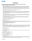 Quality Clauses This manual is a supplement to the Eaton Electrical Sector, Interconnect Business, Supplier Quality Manual. All printed/downloaded copies shall be considered uncontrolled. 1. INSPECTION AT DESTINATION: Articles defined in the schedule of this contract are subject to inspection at destination and Placed on Hold if the contractor fails to submit the certification, documentation, test data, and/or reports specified in the contract. Notwithstanding the inspection rights granted to the purchaser under the clause entitled “Inspection System Requirements”, representatives, the purchaser, purchaser’s customer, and regulatory authorities, if required by Camarillo facility representatives, shall be granted the right of access to all the seller’s facilities, including sub-tier suppliers, at reasonable times for the purposes of reviewing applicable records to the purchase order. 2. SPECIAL PROCESS: The supplier must reference the P.O. and part number on their certification. Section 4.20 and 4.21 - Records and samples shall be retained per 4.22. 2A. ELECTRON BEAM WELD SAMPLE: Provide a certification, or statement annotated on the certificate of compliance that confirms that the requirements meet contractual & applicable specification requirements. Supplier must provide one Welded QA sample using weld schedule and production set-up prior to production run. Section sample and visually inspect at 20X magnification in accordance with the master traveler or drawing requirements. 2B. HEAT TREAT: Provide a certification, or statement annotated on the certificate of compliance that confirms that the requirements meet contractual & applicable specification requirements. Hardness samples shall be segregated and identified as such including applicable part number and purchase order number of the associated lot/batch. 2C. PLATING AND/OR COATING: Provide a certification, or statement annotated on the certificate of compliance that confirms that the requirements meet contractual & applicable specification requirements. Records and samples and/or gage block representative of the processed parts shall be retained per section 4.22 therein. 3. GOVERNMENT SOURCE INSPECTION REQUIRED: Section 4.15 4. SOURCE INSPECTION: Section 4.15 5A. CERTIFICATION OF COMPLIANCE: See section 4.30. When certificates of compliance (“certs”, certificates of conformance, C of C, etc.) are required by purchase order - they must display, as a minimum, the following elements: Manufacturing site location, Lot Specific Information, Statement of Quality, Dated Signature (Certificate must be signed) THESE DOCUMENTS MUST ACCOMPANY EACH SHIPMENT. 5B. RECORDS: Section 4.22 6. CHEMICAL AND/OR PHYSICAL TEST REPORTS: Provide a certification that demonstrates that the requirements meet contractual & applicable specification requirements for each lot/batch/heat. Certification must be attached to the packing sheet and must accompany each delivered shipment. The report must be identifiable to the product being delivered and must show that the material/parts delivered are acceptable. The supplier must reference the P.O. and part number on their certification. Records and samples shall be retained per 4.22. 7. SHELF LIFE ITEMS: Section 4.17 8. PACKING/PACKAGING: Section 4.19 9. SELLER-CONTROLLED PRODUCTS: One legible and reproducible copy of the part definition, drawing, catalog, or specification must accompany the initial shipment. 10B. INSPECTION SYSTEM REQUIREMENTS: Section 4.1 10C. METROLOGY SYSTEM REQUIREMENTS: Section 4.28 10D. QUALITY SYSTEM REQUIREMENTS: Section 4.1 11. NONCONFORMING MATERIAL: Section 4.10 12. FUNCTIONAL MERCURY: Each shipment must be accompanied by a mercury free certification or statement on the certificate of compliance indicating a mercury free condition. - The use of mercury, mercury compounds or mercury-bearing instruments and/or equipment in a manner which might cause contamination in the manufacture, assembly or test of material is prohibited. 1|Page QSF025 Rev W 14. FUNCTIONAL TEST/INSPECTION REPORTS: Final Inspection Report Section 4.31. Actual inspection/test reports must be attached to the packing sheet for each shipment. These reports must reference the purchase order number, supplier's name and address, part number, part name and, where applicable, serial numbers, and date and run time of units, including actual results. These reports must be validated by an authorized QA representative. If equipment of sufficient capacity to inspect/test the articles is not available on-site, the items must be inspected/tested in a laboratory approved by the Camarillo facility. In addition the supplier must reference the P.O. and part number on their certification. 16. MATERIAL SAMPLE REQUIRED: A material sample must be furnished with the first shipment of the product, unless otherwise specified. The size of the sample shall be determined by the Camarillo facility or the material specification. The sample shall be cut or molded from the same material lot as the product supplied. In addition the supplier must reference the P.O. and part number on their certification. NOTE: If the sample does not pass its material specification tests, the product supplied with the sample shall be considered unacceptable and may be returned to the supplier. 17. FIRST ARTICLE INSPECTION REPORT: An FAI report is required with the parts or submitted prior to delivery that meet the requirement of section 4.14 18. CHANGES: Section 4.12 19. WORKMANSHIP STANDARDS: Unless otherwise specified, the Camarillo facility’s workmanship standards are used as inspection criteria. 20. MADE IN THE UNITED STATES OF AMERICA: DFARS 252.225-7014, Preference for Domestic Specialty Metals, and its Alternate I is imposed on this Purchase Order. 21. COUNTERFEIT ELECTRONIC PARTS CONTROL PLAN: Supplier shall develop and implement a counterfeit electronic parts control plan that documents its processes for risk mitigation, disposition and reporting of coun