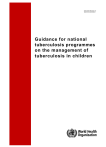 WHO /HTM/ TB/2006. 371 WHO /F CH /CA H/2006.7 Guidance for national tuberculosis programmes on the management of tuberculosis in children WHO/HTM/TB/2006.371 WHO/FCH/CAH/2006.7 Guidance for national tuberculosis programmes on the management of tuberculosis in children © World Health Organization 2006 All rights reserved. The designations employed and the presentation of the material in this publication do not imply the expression of any opinion whatsoever on the part of the World Health Organization concerning the legal status of any country, territory, city or area or of its authorities, or concerning the delimitation of its frontiers or boundaries. Dotted lines on maps represent approximate border lines for which there may not yet be full agreement. The mention of specific companies or of certain manufacturers’ products does not imply that they are endorsed or recommended by the World Health Organization in preference to others of a similar nature that are not mentioned. Errors and omissions excepted, the names of proprietary products are distinguished by initial capital letters. All reasonable precautions have been taken by WHO to verify the information contained in this publication. However, the published material is being distributed without warranty of any kind, either express or implied. The responsibility for the interpretation and use of the material lies with the reader. In no event shall the World Health Organization be liable for damages arising from its use. Contents Acknowledgements ………………………………………………………………………………………….iii Abbreviations ………………………………………………………………………………………………...iv Preface ………………………………………………………………………………………………………. v Introduction ………………………………………………………………………………………………….1 References ……………………………………………………………………………………………….. 3 Bibliography ………………………………………………………………………………………………. 3 Section 1. Diagnosis of TB in children .…………………………………………………………… 4 Recommended approach to diagnose TB in children …………………………………. 5 Standard case definitions of TB in children …………………………………………….. 8 References …………………………………………………………………………………. 9 Bibliography ………………………………………………………………………………... 9 Section 2. Anti-TB treatment in children ………………………………………………………… 10 Background ……………………………………………………………………………….. 10 Recommended treatment regimens ……………………………………………………. 10 Administering treatment and ensuring adherence ……………………………………. 12 Follow-up ………………………………………………………………………………….. 12 Immune reconstitution……………………………………………………………………..13 Adverse events ………………………………………………………………………….... 13 Re-treatment cases ……………………………………………………………...………. 13 Children with TB who are coinfected with HIV ………………………….…………….. 13 References ………………………………………………………………..………………. 14 Bibliography ………………………………………………………………………………. 14 Section 3. Contact screening and management …………………………..…………………… 16 Background and rationale …………………………………………………………...….. 16 Assessment and management …………………………………………………….…… 16 Special circumstances …………………………………………………………..………. 17 Managing child contacts within the NTP ………………………………………………...18 Establishing contact screening and management within the NTP ………………..… 19 Bibliography ………………………………………………………………………………. 19 Section 4. Roles and responsibilities …………………………………………………………….. 20 Levels of care ………………………………………………………………….…………. 20 Section 5. Recording and reporting ………………………………………….…………………… 22 Section 6. BCG vaccination in children ………………………………………………………….. 23 References ………………………………………………………………...……………… 23 Bibliography ……………………………………………………………….……………… 24 Annex 1. Administering, reading and interpreting a tuberculin skin test ………...……… 25 Administration ………………………………………………………………………….…. 25 Reading …………………………………………………………….……………………… 26 Interpretation ……………………………………………………..………………………. 26 Annex 2. Procedures for obtaining clinical samples for smear microscopy ……….…… 27 A. Expectoration …………………………………………………………………………. 27 B. Gastric aspiration …………………………………………………..…