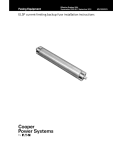 Fusing Equipment Effective October 2014 Supersedes S240-50-1 September 2013 ELSP current-limiting backup fuse installation instructions MN132001EN DISCLAIMER OF WARRANTIES AND LIMITATION OF LIABILITY The information, recommendations, descriptions and safety notations in this document are based on Eaton Corporation’s (“Eaton”) experience and judgment and may not cover all contingencies. If further information is required, an Eaton sales office should be consulted. Sale of the product shown in this literature is subject to the terms and conditions outlined in appropriate Eaton selling policies or other contractual agreement between Eaton and the purchaser. THERE ARE NO UNDERSTANDINGS, AGREEMENTS, WARRANTIES, EXPRESSED OR IMPLIED, INCLUDING WARRANTIES OF FITNESS FOR A PARTICULAR PURPOSE OR MERCHANTABILITY, OTHER THAN THOSE SPECIFICALLY SET OUT IN ANY EXISTING CONTRACT BETWEEN THE PARTIES. ANY SUCH CONTRACT STATES THE ENTIRE OBLIGATION OF EATON. THE CONTENTS OF THIS DOCUMENT SHALL NOT BECOME PART OF OR MODIFY ANY CONTRACT BETWEEN THE PARTIES. In no event will Eaton be responsible to the purchaser or user in contract, in tort (including negligence), strict liability or otherwise for any special, indirect, incidental or consequential damage or loss whatsoever, including but not limited to damage or loss of use of equipment, plant or power system, cost of capital, loss of power, additional expenses in the use of existing power facilities, or claims against the purchaser or user by its customers resulting from the use of the information, recommendations and descriptions contained herein. The information contained in this manual is subject to change without notice. ii ELSP current-limiting backup fuse installation instructions MN132001EN October 2014 www.cooperpower.com Contents SAFETY INFORMATION Safety Information . . . . . . . . . . . . . . . . . . . . . . . . . . . . . . . . . . . . . . . . . . . . . . . . . . . . . . . . . . . . . . . . . . . . . . . . . . . . . . iv PRODUCT INFORMATION Introduction . . . . . . . . . . . . . . . . . . . . . . . . . . . . . . . . . . . . . . . . . . . . . . . . . . . . . . . . . . . . . . . . . . . . . . . . . . . . . . . . . . . 1 Acceptance and Initial Inspection . . . . . . . . . . . . . . . . . . . . . . . . . . . . . . . . . . . . . . . . . . . . . . . . . . . . . . . . . . . . . . . . . . 1 Handling and Storage . . . . . . . . . . . . . . . . . . . . . . . . . . . . . . . . . . . . . . . . . . . . . . . . . . . . . . . . . . . . . . . . . . . . . . . . . . . 1 Quality Standards . . . . . . . . . . . . . . . . . . . . . . . . . . . . . . . . . . . . . . . . . . . . . . . . . . . . . . . . . . . . . . . . . . . . . . . . . . . . . . 1 APPLICATION Application . . . . . . . . . . . . . . . . . . . . . . . . . . . . . . . . . . . . . . . . . . . . . . . . . . . . . . . . . . . . . . . . . . . . . . . . . . . . . . . . . . . . 1 MOUNTING REQUIREMENTS Mounting Requirements . . . . . . . . . . . . . . . . . . . . . . . . . . . . . . . . . . . . . . . . . . . . . . . . . . . . . . . . . . . . . . . . . . . . . . . . . 1 CLEARANCES Clearances . . . . . . . . . . . . . . . . . . . . . . . . . . . . . . . . . . . . . . . . . . . . . . . . . . . . . . . . . . . . . . . . . . . . . . . . . . . . . . . . . . . . 1 INSTALLATION Installation . . . . . . . . . . . . . . . . . . . . . . . . . . . . . . . . . . . . . . . . . . . . . . . . . . . . . . . . . . . . . . . . . . . . . . . . . . . . . . . . . . . . 1 PARALELLING FUSES Paralleling Fuses . . . . . . . . . . . . . . . . . . . . . . . . . . . . . . . . . . . . . . . . . . . . . . . . . . . . . . . . . . . . . . . . . . . . . . . . . . . . . . . .2 FUSE HOLDER Fuse Holder . . . . . . . . . . . . . . . . . . . . . . . . . . . . . . . . . . . . . . . . . . . . . . . . . . . . . . . . . . . . . . . . . . . . . . . . . . . . . . . . . . . 2 ELSP current-limiting backup fuse installation instructions MN132001EN October 2014 www.cooperpower.com iii ! Safety for life SAFETY FOR LIFE ! SAFETY FOR LIFE Eaton’s Cooper Power Systems products meet or exceed all applicable industry standards relating to product safety. We actively promote safe practices in the use and maintenance of our products through our service literature, instructional training programs, and the continuous efforts of all Eaton’s Cooper Power Systems employees involved in product design, manufacture, marketing, and service. We strongly urge that you always follow all locally approved safety procedures and safety instructions when working around high voltage lines and equipment, and support our “Safety For Life” mission. Safety information The instructions in this manual are not intended as a substitute for proper training or adequate experience in the safe operation of the equipment described. Only competent technicians who are familiar with this equipment should install, operate, and service it. Safety instructions Following are general caution and warning statements that apply to this equipment. Additional statements, related to specific tasks and procedures, are located throughout the manual. A competent technician has these qualifications: • Is thoroughly familiar with these instructions. • Is trained in industry-accepted high and low-voltage safe operating practices and procedures. • Is trained and authorized to energize, de-energize, clear, and ground power distribution equipment. • Is trained in the care and use of protective equipment such as arc flash clothing, safety glasses, face shield, hard hat, rubber gloves, clampstick, hotstick, etc. Following is important safety information. For safe installation and operation of this equipment, be sure to read and understand all cautions and warnings. Hazard Statement Definitions This manual may contain four types of hazard statements: DANGER Indicates an imminently hazardous situation which, if not avoided, will result in death or serious injury. WARNING Indicates a potentially hazardo