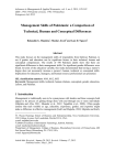 Advances in Management & Applied Economics, vol. 3, no.3, 2013, 129-139 ISSN: 1792-7544 (print version), 1792-7552(online) Scienpress Ltd, 2013 Management Skills of Pakistanis: a Comparison of Technical, Human and Conceptual Differences Bahaudin G. Mujtaba1, Muzhar Javed2 and Lam D. Nguyen3 Abstract This study focuses on the management skills of respondents from Sahiwal, Pakistan, to see if gender and education can be significant factors in their technical, human and conceptual competencies. The results of 470 Pakistani adults show that there are significant differences in their management skills. No significant gender differences were found. In terms of the education variable, this study demonstrated that having a master’s degree does not necessarily increase a person’s human, technical or conceptual skills. Implications for educators, managers, and human resource professionals are presented. JEL classification numbers: M10, M12, M53 Keywords: Management skills, technical, human relations, conceptual, gender, education, Lahore, and Pakistan. 1 Introduction Management is traditionally seen to be synonymous with leaders and these concepts both appear to be process of getting things done with and through one or more individuals (Mujtaba and Afza, 2011; Sikander et al., 2012; Tajaddini et al., 2009).. Often people assume that such variable as age, education, experience, gender, and expertise might make a difference in effective management (Kaifi and Mujtaba, 2010; Mujtaba and Kaifi, 1 H. Wayne Huizenga School of Business and Entrepreneurship, Nova Southeastern University, 3301 College Avenue, Fort Lauderdale, Florida 33314, USA, e-mail: mujtaba@nova.edu 2 COMSATS institute of Information Technology, Sahiwal, Pakistan, e-mail: mazhar@ciitsahiwal.edu.pk 3 Department of Management, College of Business, Bloomsburg University of Pennsylvania, 400 East Second Street, Bloomsburg, PA 17815, USA, e-mail: lnguyen@bloomu.edu Article Info: Received : January 28, 2013. Revised : February 17, 2013. Published online : May 1, 2013 130 Bahaudin G. Mujtaba, Muzhar Javed and Lam D. Nguyen 2010). For thousands of years, it has been assumed that aging and experience can make people mature and wise. This is assumed in promotions in military organizations as well as in the government area and private organizations (Afza et al., 2011; Kaifi & Mujtaba, 2010; Mujtaba & Afza; 2011; Mujtaba & Kaifi, 2010; Mujtaba et al., 2011; Tajaddini et al., 2009). The modern workplace is diverse, filled with men and women professionals from different generations and years of management experience. Workers bring different values and expectations; as such managers and organizational leaders must create an inclusive workplace and this necessity comes from the pluralization of society (Cooper, 1998, p. 51; Tajaddini et al., 2009). Today’s organizational leaders and managers must have good technical, human, and conceptual skills in order to build strong teams in these competitive times. Consequently, this study focuses on understanding the management skills (technical, human, and conceptual) of respondents Pakistan based on gender, education, age, and years of experience in the management ranks. Older managers with more years of experience are likely to make good long-term strategic decisions (Mujtaba & Sadat, 2010). This is why organizations usually seek to hire experienced managers because the choices made by “management are influential on organizational outcomes” (Voges et al., 2009, p. 33). Of course, effective strategies require management teams that are diverse in terms of age, gender and overall experience. It has been documented that the “primary mover of the organization is its strategy, which details its purpose and direction…organizational strategy influences the effectiveness of diversity in the organization” (Knouse, 2009, p. 348). Some authors claim that using the talents and skills of diverse individuals from different departments or organizations “often leads to opportunities for cost reduction that might not otherwise be considered” (Pudlowski, 2009, p. 39). Tzabbar writes that “firms interested in exploring new knowledge boundaries and changing their capabilities should hire personnel whose knowledge is different from that already residing in the firms” (2009, p. 891). Diverse workers and managers are needed to successfully capitalize on different opinions, experiences, and talents that might exist in the organization as well as in the community. Having a diverse management team “is especially important when there are significant complementarities and spillovers between the actions of different individuals or groups” (Postrel, 2009, p. 273). 2 Management Concept in Practice Academicians and practitioners see the term management as the achievement of organizational goals with and through people using available resources in the most efficient manner possible (Mujtaba, 2007; Tajaddini et al., 2009). Generally, according to Mujtaba (2007), people use the four functions of management which are planning, organizing, leading, and controlling (POLC) to achieve their organizational objective. Planning means clarifying an organization’s goals and specific strategies for achieving these stated objectives. Making these management functions work well for the organization is a key function or responsibility of the managers. Organizing includes determining what tasks must be done, who will do them, how the tasks will be grouped, who will report to whom, and where decisions will be made. Leading includes motivating and directing employees, and communicating and resolving conflicts. Controlling, on the other hand, means monitoring performance, comparing results and goals, and making corrections and adjustments as needed in a timely manner. Management Skills of Pakistanis 131 Management is divided into three levels: first-level supervisors (managers), middle managers and top management (Kaifi & Mujtaba, 20