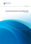 Diploma Programme Environmental systems and societies guide First examinations 2010 Diploma Programme Environmental systems and societies guide First examinations 2010 Diploma Programme Environmental systems and societies guide Published January 2008 International Baccalaureate Peterson House, Malthouse Avenue, Cardiff Gate Cardiff, Wales GB CF23 8GL United Kingdom Phone: +44 29 2054 7777 Fax: +44 29 2054 7778 Website: http://www.ibo.org © International Baccalaureate Organization 2008 The International Baccalaureate (IB) offers three high quality and challenging educational programmes for a worldwide community of schools, aiming to create a better, more peaceful world. The IB is grateful for permission to reproduce and/or translate any copyright material used in this publication. Acknowledgments are included, where appropriate, and, if notified, the IB will be pleased to rectify any errors or omissions at the earliest opportunity. All rights reserved. No part of this publication may be reproduced, stored in a retrieval system, or transmitted, in any form or by any means, without the prior written permission of the IB, or as expressly permitted by law or by the IB’s own rules and policy. See http://www.ibo.org/copyright. IB merchandise and publications can be purchased through the IB store at http://store.ibo.org. General ordering queries should be directed to the sales and marketing department in Cardiff. Phone: +44 29 2054 7746 Fax: +44 29 2054 7779 Email: sales@ibo.org Printed in the United Kingdom by Antony Rowe Ltd, Chippenham, Wiltshire T0001 IB mission statement The International Baccalaureate aims to develop inquiring, knowledgeable and caring young people who help to create a better and more peaceful world through intercultural understanding and respect. To this end the organization works with schools, governments and international organizations to develop challenging programmes of international education and rigorous assessment. These programmes encourage students across the world to become active, compassionate and lifelong learners who understand that other people, with their differences, can also be right. IB learner profile The aim of all IB programmes is to develop internationally minded people who, recognizing their common humanity and shared guardianship of the planet, help to create a better and more peaceful world. IB learners strive to be: Inquirers They develop their natural curiosity. They acquire the skills necessary to conduct inquiry and research and show independence in learning. They actively enjoy learning and this love of learning will be sustained throughout their lives. Knowledgeable They explore concepts, ideas and issues that have local and global significance. In so doing, they acquire in-depth knowledge and develop understanding across a broad and balanced range of disciplines. Thinkers They exercise initiative in applying thinking skills critically and creatively to recognize and approach complex problems, and make reasoned, ethical decisions. Communicators They understand and express ideas and information confidently and creatively in more than one language and in a variety of modes of communication. They work effectively and willingly in collaboration with others. Principled They act with integrity and honesty, with a strong sense of fairness, justice and respect for the dignity of the individual, groups and communities. They take responsibility for their own actions and the consequences that accompany them. Open-minded They understand and appreciate their own cultures and personal histories, and are open to the perspectives, values and traditions of other individuals and communities. They are accustomed to seeking and evaluating a range of points of view, and are willing to grow from the experience. Caring They show empathy, compassion and respect towards the needs and feelings of others. They have a personal commitment to service, and act to make a positive difference to the lives of others and to the environment. Risk-takers They approach unfamiliar situations and uncertainty with courage and forethought, and have the independence of spirit to explore new roles, ideas and strategies. They are brave and articulate in defending their beliefs. Balanced They understand the importance of intellectual, physical and emotional balance to achieve personal well-being for themselves and others. Reflective They give thoughtful consideration to their own learning and experience. They are able to assess and understand their strengths and limitations in order to support their learning and personal development. © International Baccalaureate Organization 2007 Contents Introduction 1 Purpose of this document 1 The Diploma Programme 2 Nature of the subject 4 Aims 7 Assessment objectives 8 Assessment objectives in practice 9 Syllabus 10 Syllabus outline 10 Approaches to the teaching of environmental systems and societies 12 Syllabus content 14 Assessment 49 Assessment in the Diploma Programme 49 Assessment outline 51 External assessment 52 Practical work and internal assessment 53 Internal assessment criteria 57 Guidance on the criteria 62 Use of information and communication technology in assessment 65 Appendices 68 Glossary of command terms 68 Environmental systems and societies glossary 70 Environmental systems and societies guide Introduction Purpose of this document This publication is intended to guide the planning, teaching and assessment of the subject in schools. Subject teachers are the primary audience, although it is expected that teachers will use the guide to inform students and parents about the subject. This guide can be found on the subject page of the online curriculum centre (OCC) at http://occ.ibo.org, a password-protected IB website designed to support IB teachers. It can also be purchased from the IB store at http://store.ibo.org. Additional resources Additional publications such as teacher support materials, subject reports, internal assessm