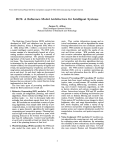 From: AAAI Technical Report SS-95-02. Compilation copyright © 1995, AAAI (www.aaai.org). All rights reserved. RCS: A Reference Model Architecture for Intelligent Systems James S. Albus Chief, Intelligent Systems Division National Institute of Standards and Technology The Real-time Control System (RCS) architecture developed at NIST and elsewhere over the past two decades (Barbera, Albus, &: Fitzgerald 1979; Albus et al. 1982; Albus 1991; ) defines a canonical form for a nested intelligent control system. The RCSarchitecture consists of a hierarchically layered set of processing modules connected together by a network of communications pathways. The primary distinguishing feature of the layers is the bandwidth of the control loops. The characteristic bandwidth of each level is determined by the spatial and temporal integration windowof filters, the temporal frequency of signals and events, the spatial frequency of patterns, and the planning horizon and granularity of the planners that operate at each level. At each level, tasks are decomposed into sequential subtasks, to be performed by cooperating sets of subordinate agents. Signals from sensors are filtered and correlated with spatial and temporal features that are relevant to the control function being implemented at that level. The four basic types of processing modules from which the RCSarchitecture is built are: 1. Behavior Generating (BG) modules. BG modules contain job assignment, planning, and control algorithms. These embody knowledge about how to perform tasks - i.e. how to decompose tasks into subtasks that subordinate agents know how to execute. BGmodules can accomodate a variety of planning algorithms, from simple table look-up of precomputedplans, to real-time search of configuration space, or game theoretic algorithms for multi-agent cooperating and competitive groups. Planning horizons at high levels mayspan months or years, while planning horizons at the bottom level typically are less than 50 milliseconds. Control loop bandwidth at each level is typically at least ten times the reciprocal of the planning horizon at that level. 2. World Modeling (WM) modules The WMmodules model the state space of the problem do- main. They contain information storage and retrieval mechanisms,as well as algorithms for transforming information from one coordinate system to another. WMmodules use dynamic models to generate expectations, and predict the results of current and future actions. WMmodules may contain recursive estimation algorithms and processes that computelists of attributes from images, graphics engines that generate images from symbolic lists, and recognition and detection algorithms that perform pattern matching operations necessary to verify the identification of features, surfaces, objects, and groups. The WMmodule maintains a knowledge database (KD), acts as a question answering system, and uses information from the KDto predict or simulate the future. . 4. Sensory Processing (SP) modules SP modules process data from visual, auditory, tactile, proprioceptive, taste, or smell sensors. SP modules contain filtering, masking, differencing, correlation, matching, and recursive estimation algorithms, as well as feature detection and pattern recognition algorithms. Interactions between WMand SP modules can generate a variety of filtering and detection processes such as Kalmanfiltering and reeursive estimation, Fourier transforms, and phase lock loops. Vision system SP modules process images to detect brightness, color, and range discontinuities, optical flow, stereo disparity, and utilize a variety of signal detection and pattern recognition algorithms to analyze scenes and compute information needed for manipulation, locomotion, and spatio-temporal reasoning. Value Judgment (V J) modules VJ modules contain algorithms for computingcost, risk, and benefit, for evaluating states and situations, for estimating the reliability of state estimations, and for assigning cost-benefit values to objects and events. V3 modules may compute Beysian and Dempster-Schafer statistics on information about the world based on the correlation and variance between observations and predictions. The RCSarchitecture has been used in the implementation of a number of experimental projects. These include: 5. Knowledge Database (KD) modules KD modules consist of data structures that contain state variables, iconic images, and symbolic frames containing lists of attributes. Information in the KD includes knowledge about entities and events, and about how the world behaves, both logically and dynamically. The KD contains both short term and long term memory elements. The KD is typically implemented in a distributed fashion, suitable for real-time data retrieval and update. . 6. A communication system that conveys messages between the various modules. The communication system provides a network of pathways that transmits messages between the various processing and database modules. The communications system richly, but not completely, interconnects the modules. The various modules in the RCSarchitecture act as a collection of intelligent agents (or software objects), sending and receiving messages to and from each other. These messages convey commands and requests, and return status. The RCSarchitecture has evolved over the past two decades from a rather simple robot control schemato a reference model architecture for intelligent system design. From the beginning, RCShas represented a conscious attempt to emulate the function and structure of the neurological machinery in the brain. Each RCS module has properties that are known, or hypothesized, to exist in the brain. For example, RCSmodules may be constructed from neural nets such as CMAC (Albus 1975b; 1975a) that compute arithmetic and/or logical functions on a set of inputs to produce a set of output state variables. These can be carried over communications pathways to other functional modules that may us