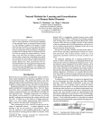From: AAAI Technical Report SS-03-04. Compilation copyright © 2003, AAAI (www.aaai.org). All rights reserved. Natural Methods for Learning and Generalization in Human-Robot Domains Monica N. Nicolescu and Maja J. Matarić Computer Science Department University of Southern California 941 West 37th Place, Mailcode 0781 Los Angeles, CA 90089-0781 monica mataric@cs.usc.edu Abstract Human-robot interaction is a growing research domain; there are many approaches to robot design, depending on the particular aspects of interaction being focused on. The challenge we address in this paper is to build robots that have the ability to learn to perform complex tasks and refine their acquired capabilities through interaction with humans in the environment. We propose an approach for teaching robots by demonstration similar to the one people use among themselves: demonstrate a task, then allow the learner to perform it under the teacher’s supervision. Depending on the quality of the learned task, the teacher may either demonstrate the task again or provide specific feedback during the learner’s practice trial. Thus, generalization over several demonstrations and using feedback during practice execution trials are key capabilities for refining previously learned task representations. We validated these concepts with a Pioneer 2DX mobile robot learning various tasks from demonstration. Introduction Robots that can successfully and efficiently interact with humans require adaptation and learning capabilities for most non-trivial interactions. This enables the robots to not only adapt and improve their performance, but also to be more accessible to a larger range of users, from the lay to the skilled. Designing controllers for robotic tasks is usually done by people specialized in programming robots. Even for them, most often, this is a complicated process, and it essentially requires creating by hand a new and different controller for each particular task. Although certain parts of controllers, once refined, can be reused, it is still necessary to, at least partially, redesign and customize the existing code for each new task. If robots are to be effective in human-robot domains, even users without programming skills should be able to interact with them and “re-program” them. Thus, automating the robot controller design process becomes of particular interest. A natural approach to this problem is the use of teaching by demonstration. However, the majority of robot teaching approaches to date has been focused on learning policies (Hayes & Demiris 1994; ­ Copyright c 2003, American Association for Artificial Intelligence (www.aaai.org). All rights reserved. Schaal 1997), or temporally extended sensory-motor skills (Demiris & Hayes 2002). Techniques for learning complex task structures have also been presented (Kuniyoshi, Inaba, & Inoue 1994), but they are highly sensitive to the structure of the environment and of the demonstration, and do not allow for further improvement or adaptation if the task is not learned correctly in the first trial. Our goal is to develop a flexible mechanism that allows a robot to learn and refine representations of high level tasks, from interaction with a human teacher, based on a set of underlying capabilities (behaviors) already available to the robot. An important challenge for a learning method that is based on robot’s observations is to distinguish between the relevant and irrelevant information being perceived. Also, the limited sensing capabilities of the robot could prevent it from observing actions relevant to the task. Thus, in order to learn a task correctly in such conditions, the teacher needs to provide the robot additional information beyond the demonstration experience. Therefore, it is essential that the robot have the ability to refine previously learned task representations, and to incorporate the additional information provided by the teacher. To address these challenges we propose an approach similar to what people use when teaching each other through showing. Humans typically demonstrate a task once and then supervise a set of practice trials in which the learner performs what was learned. If needed, during these runs the teacher provides feedback cues to indicate corrections (irrelevant actions or missing parts of the task). Alternatively, the teacher may also provide several new demonstrations that the learner could use for generalization. Our overall strategy for learning and refining task representations is presented in Figure 1. In the following sections we describe our method for learning and refining task representations through generalization and feedback. Figure 1: Learning and refining tasks through demonstrations, generalization and teacher feedback Learning through demonstration Control Architecture - Behavior Networks As underlying control architecture we use an extension of the standard Behavior-Based System we developed, in which tasks are represented as networks of abstract behaviors (Figure 2) (Nicolescu & Matarić 2002). In a behavior network, the links between behaviors represent precondition-postcondition dependencies, which can have three different types: permanent, enabling and ordering. Thus the activation of a behavior is dependent not only on its own preconditions (particular environmental states) but also on the postconditions of its relevant predecessors (sequential preconditions). More details on this architecture can be found in (Nicolescu & Matarić 2002). Figure 2: Example of a behavior network for an “Object transport” task Within this architecture, behaviors are build from two components: one related to perception (Abstract behavior), the other to action (Primitive behavior). The abstract behavior is an explicit specification of the behavior’s activation conditions (i.e., preconditions), and its effects (i.e., postconditions). The behaviors that do the work that achieves the specified effects under the give