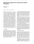 Modified neocognitron for improved 2-D pattern recognition C.N.S.Ganesh Murthy Y.V. Ve n kates h Indexing terms: Neocognitron, 2-D pattern recognition, Training Abstract: Some modifications to an existing neural network, the neocognitron, are proposed in order to overcome some of its limitations and to achieve an improved recognition of patterns (for instance, characters). Motivation for the present work arose from the results of extensive simulation experiments on the neocognitron. Inhibition during training is dispensed with, including it only during the testing phase of the neocognitron. Even during testing, inhibition is totally discarded in the initial layer because it leads, otherwise, to some undesirable results. However, inhibition, which is feature-based, is incorporated in the later stages. The number of network parameters which are to be set manually during training is reduced. The training is made simple without involving multiple training patterns of the same nature. A new layer has been introduced after the C-layer (of the neocognitron) to scale down the network size. Finally, the response of the S-cell has been simplified, and the blurring operation between the S- and the Clayers has been changed. The new architecture, which is robust with respect to small variations in the value of the network parameters, and the associated training are believed to be simpler and more efficient than those of the neocognitron. 1 Introduction In visual pattern recognition, the objects to be recognised are subjected to various forms of transformation, involving shift, scale and rotation. The standard techniques found in the literature on pattern recognition come nowhere close to the human ability to perform transformation-invariant recognition. Obviously inspired by the remarkable power of the human vision system, attempts are being made to design an artificial neural vision machine for imitating some of its aspects. A basic problem in this context is to synthesise a network of these artificial neurons, in order to endow it with pattern-recognition capabilities. The human visual system seems to have a hierarchical structure (see Hubel and Wiesel [I]), in which simple features are first extracted in the early layers from a stimulus pattern, then these are integrated, in the higher layers, into more complicated versions. In this hierarchy, a cell in a higher stage is likely to receive signals from a wider area of the retina, and, perhaps, as a consequence, is more insensitive to the position of the stimulus. Many techniques have been proposed to solve the problem of character recognition. See, for instance, [2] for a review of these techniques. It is now acknowledged that neural techniques offer advantages in terms of speed, fault tolerance and adaptation. Many models have been suggested in the literature on the application of neural networks. These models differ in complexity and capabilities, and can be classified as models with and without self-organisation and feedforward networks consisting of layers of neurons. However, in this report, we consider only those which have been proposed for recognition of 2-D patterns. The multi-layer perceptron (MLP) [3,4] is a well known architecture in feed-forward networks. However the MLP treats a 2-D pattern as a stacked 1-D vector, and hence, two similar patterns shifted by even one pixel are regarded as two different patterns. For the same reason, in an MLP, invariance to scale and distortion cannot be achieved in a straightforward way: the patterns are to be pre-processed to extract invariant features before using MLP as the classifier. Hence, a stand alone MLP without preprocessing cannot be used for recognition. 2 Review of related work Fukushima has proposed neural networks [5-91 for the recognition of 2-D patterns which might have been subjected to certain types of deformation. His architecture consists of a cascade connection of pairs of cell layers, called S (simple) and C (complex) layers. Each layer consists of many planes; and each plane is a 2-D array of cells. The output of an S-layer is the input to the succeeding C-layer. The input to the first S-layer is from the photo-receptor, and the output of the last Clayer is the result of the recognition operation. In the last C-layer, each cell corresponds to a specific pattern (see Fig. 1). The neocognitron is a hierarchical multi-layered neural network capable, according to its creator, of deformation-invariant visual pattern recognition. Even if the input pattern is deformed in shape, only one cell, corresponding to the category of the input pattern, is acti- vated on the highest stage of the network. Other cells respond to other categories. Fukushima has reported that recognition of one of the ten numerals, with small shifts within the 16 by 16 image, has been successful. S-laver C-laver S-laver mann [14] that shift invariance can be obtained only by creating a model, which simply responds to the total energy in the image. However, this is not a satisfactory result as far as neural nets are concerned. It may be noted here that, Barnard and Casasent [15] have also analysed why the neocognitron fails to be an intrinsically shift-invariant pattern recogniser. We now examine some aspects of processing carried out by the neocognitron, which is supposed to recognise patterns after an appropriate training phase, even in the presence of shifts, scale changes, and distortions. In this network, the C-cells are meant to make the network robust against distortion. The input and the output of a C-cell are related as follows: p)3m, r CL[P,3, kl = @ SIUSLb2),3+ 7-, k- r where moduI e-1 module- 2 Fig. 1 Schematic structure of neocognitron Inhibitory neurons are not shown The Cognitron [5], the earlier model of Fukushima, uses unsupervised learning, and does not have the ability to correctly recognise position-shifted or shape-distorted patterns. In the neocognitron architecture [6], a technique dealing wit