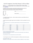 Stat 302, Assignment 2, Due Friday February 19, 2016 at 4:30pm There are ________ multi-part questions and a set of questions based on 5 pages of reading. Please see the Stats Workshop for help, or see me in office hours (Tue 1-2, Thur 3:30-4:30), or e-mail me at jackd@sfu.ca Explanations and relevant computer output should be included, but plots do not need to be. Necessary R code is included for every question, after the reading questions. There are also four practice problems, mostly surrounding review material. Total / 64 Q1 /7 Q2 / 14 Q3 / 10 Q4 / 16 Reading Name ______________________________ Student Number _____________________ /17 1) Consider the dataset A2_npk.csv , which is a dataset of yield across several different factors for some industrial process. 1a, 2pts) Check this data against unequal variance and imbalance. Are there any problems? How do you know? Using the by() function in R, we can find the standard deviation and number of observations of each group. Block A B C D E F Mean 54.0 57.5 60.8 50.1 50.5 56.4 SD 7.27 2.04 6.79 8.15 1.49 2.43 N 4 4 4 4 4 4 This data is perfectly balanced across block. However, the standard deviation of block D is more than 3 times that of block E, which violates the equal variance assumption. Using a Bartlett test is also an appropriate way to solve this problem. 1b, 1pt) Using the p-value, use ANOVA test the hypothesis of no difference between the four groups. Using a default of alpha = 0.05. ANOVA gives a p-value of 0.086, so there is weak if any evidence of a difference in means. (However, the unequal variance from 1a could be affecting that results.) 1c, 2pts) Using the obtained F score, test whether there is any difference between the six groups. Use the α = 0.05 significance level. From the ANOVA, the obtained F is 2.3184 From the qf() function, the critical F-value is 2.772 Since the obtained F does not exceed the critical F, we do not have enough evidence against the null to reject it. 1d, 2pts) How much of the variance in yield is explained by the different levels of block? Show your work. The sum of squares total is 343 + 533 = 876. This is the total variance in the data. Of that, 343/876 = 0.3915, or 39.15% is explained by block. 2) Consider the dataset A2_Toothgrowth.csv, which measures the tooth growth of Guinea pigs when given two different kinds of supplement (Vitamin C and Orange Juice) at three different dosage levels (0.5, 1.0, and 2.0 mg) 2a, 2pts) Conduct a one-way ANOVA using supplement as a grouping variable and growth as a response variable. Does the response vary between different groups? Use the α = 0.05 significance level. This ANOVA gives a p-value of 0.06039. There is not enough evidence that the means are different between supplements. 2b, 2pts) Conduct a one-way ANOVA using dosage as a grouping variable and growth as a response variable. Does the response vary between different groups? Use the α = 0.05 significance level. This ANOVA gives a p-value of 9.533 x 10-16. There is very strong evidence that the means are different between dosage levels. 2c, 3pts) Conduct a two-way ANOVA using the same response both grouping variables from 2a and 2b. Using the p-values, test whether the response changes across different types of supplement and of dosage changes, holding each other constant. Use the α = 0.05 significance level. This ANOVA gives a p-value of 0.00042 for supplement, and 2.2 x 10 -16 for supplement. There is strong evidence that the means are different between supplements (holding dosage constant), and between dosage (holding supplement constant). 2d, 3pts) Using the obtained F scores, conduct the same two tests as you did in 2c. The ANOVA gives an F-statistic of 14.02 for supplement and 82.81 for dosage. The critical value for supplement is 4.01 because we use df 1 and 56. The critical value for supplement is 3.16 because we use df 2 and 56. Since both obtained values were larger than the critical values, we reject both null hypotheses. Both supplement and dosage have an effect on tooth growth. (Not needed) Notice that the second df is the same for both tests – the residual df is always used. 2e, 2pts) Explain the apparent paradox between the results of 2a and 2c. Why does supplement appear to be a non-significant (or marginally significant) factor in one answer, and strongly significant in the other? In 2a, we are just checking if growth changes by supplement without considering the possible effects from other factors. However, the dosage also matters, and in 2c we check if growth changes while holding dosage constant. (Not needed) In other words, dosage explains enough of the remaining variation in growth that we can see that the differences in supplement aren’t simply the result of unexplained variation. 2f, 2pts) How much of the variance in growth is explained by supplement and by dosage? Show your work. The sum of squares total is 205.35 + 2426.43 + 820.43 = 3452.21 Of this, 205.35 / 3452.21 , or 5.95% of the total variation is explained by supplement type, And 2426.43 / 3452.21 , or 70.29% of the total variation is explained by dosage. (Not needed) In total, 76.24% of the variation is explained . 3) Consider the dataset A2_chickwgt.csv, which measures the weight of chickens that were given six different kinds of feed supplement. 3a, 1 pt) Conduct a one-way ANOVA using feed as a grouping variable and weight as a response variable. Does the response vary between different groups? Use the α = 0.05 significance level. From the ANOVA, the p-value is 5.94 x 10-10, so there is more than enough evidence to say weight changes with the feed type 3b, 2 pts) If we were to compare each pair of means individually using a t-test and a Bonferroni correction with a family/experiment-wise α of 0.05, what is the alpha used for each pair to determine significance? There are 6 groups. That makes a total of 5 + 4 + 3 + 2 + 1 = 15 pairs to compare. The alpha for each pair would be 0.05 / 15 = 0.00333 3c, 4 pts)