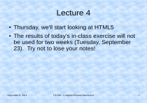 Thursday, we'll start looking at HTML5