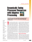 COVER FEATURE Dynamically Tuning Processor Resources with Adaptive Processing David H. Albonesi Rajeev Balasubramonian Steven G. Dropsho Sandhya Dwarkadas Eby G. Friedman Michael C. Huang Volkan Kursun Grigorios Magklis Michael L. Scott Greg Semeraro University of Rochester Pradip Bose Alper Buyuktosunoglu Peter W. Cook Stanley E. Schuster IBM T.J. Watson Research Center 0018-9162/03/$17.00 © 2003 IEEE Using adaptive processing to dynamically tune major microprocessor resources, developers can achieve greater energy efficiency with reasonable hardware and software overhead while avoiding undue performance loss. T he productivity of modern society has become inextricably linked to its ability to produce energy-efficient computing technology. Increasingly sophisticated mobile computing systems, powered for hours solely by batteries, continue to proliferate rapidly throughout society, while battery technology improves at a much slower pace. In large data centers that handle everything from online orders for a dot-com company to sophisticated Web searches, row upon row of tightly packed computers may be warehoused in a city block. Microprocessor energy wastage in such a facility directly translates into higher electric bills. Simply receiving sufficient electricity from utilities to power such a center is no longer certain. Given this situation, energy efficiency has rapidly moved to the forefront of modern microprocessor design. The adaptive processing approach to improving microprocessor energy efficiency dynamically tunes major microprocessor resources—such as caches and hardware queues—during execution to better match varying application needs.1,2 This tuning usually involves reducing the size of a resource when its full capabilities are not needed, then restoring the disabled portions when they are needed again. Dynamically tailoring processor resources in active use contrasts sharply with techniques that simply turn off entire sections of a processor when they become idle. Presenting the application with the required amount of hardware—and nothing more— throughout its execution can achieve a potentially significant reduction in energy consumption. The challenges facing adaptive processing lie in achieving this greater efficiency with reasonable hardware and software overhead, and doing so without incurring undue performance loss. Unlike reconfigurable computing, which typically uses very different technology such as FPGAs, adaptive processing exploits the dynamic superscalar design approach that developers have used successfully in many generations of general-purpose processors. Whereas reconfigurable processors must demonstrate performance or energy savings large enough to overcome very large clock frequency and circuit density disadvantages, adaptive processors typically have baseline overheads of only a few percent. VARYING APPLICATION BEHAVIOR Application needs for particular hardware resources—such as caches, issue queues, and instruction fetch logic within a dynamic superscalar processor—can vary significantly from application to application and even within the different phases of a given application. Several studies have demonstrated this dynamic application behavior. Figure 1 shows the execution behavior of the SPEC95 ijpeg application in an early study.3 The graphs show the Published by the IEEE Computer Society December 2003 49 Figure 1. Interval parallelism for the SPEC95 benchmark ijpeg. Each dot in the graph is the ratio of total committed instructions to total cycles for an interval of (a) 2,000 instructions and (b) 100 instructions. cation, the machine being modeled has almost infinite resources and perfect caches. These graphs show multiple levels of phases. Figure 1a demonstrates major phase shifts occurring at the granularity of millions of instructions. Figure 1b shows that within these major phases, finer-grained phases last for up to tens of thousands of instructions. Within these phases, parallelism varies widely, and this variation affects the degree to which the size of various hardware structures, such as caches and issue queues, affects performance.3 Within some phases, large structures provide clear benefits, while in others, much smaller structures can achieve almost the same performance while saving significant energy. To exploit application variability at a finergrained level—at least 10,000 cycles in duration— hardware monitoring and control must occur relatively rapidly, on the order of 10 to 100 cycles, to achieve the acceptable time overhead for adaptation in the range of 0.1 to 1 percent. This means that although developers can perform coarsergrained adaptations through the operating system, they must incorporate finer-grained adaptations at the hardware, compiler, and runtime system levels. ADAPTIVE PROCESSING ELEMENTS Figure 2 shows the elements of an adaptive processing system. To prevent the costs of adaptive processing from rivaling its energy advantages, the feedback and control mechanisms must be kept simple and the adaptive hardware overhead must be nominal.1,2 Adaptive hardware structures Figure 2. Elements of an adaptive processing system. The system adapts modular hardware structures and uses simple feedback and control to reduce hardware overhead. interval parallelism, expressed as total committed instructions over total cycles, achieved with every set number of instructions. Each dot in Figure 1a equals the interval parallelism for 2,000 instructions, while Figure 1b shows the interval parallelism for 100 instructions. To isolate the limits to parallelism to primarily those inherent in the appli50 Computer Chip designers organize adaptive hardware so that they can rapidly change its complexity, usually a function of its size or width, to fit current application needs. Modern processor designs feature easily adaptable modular structures, such as caches and issue queues. Figure 3 shows a 32-entry adaptive-issue queue, parti