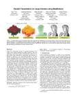 Parallel Visualization on Large Clusters using MapReduce Huy T. Vo∗ Jonathan Bronson Brian Summa João L.D. Comba Juliana Freire SCI Institute University of Utah SCI Institute University of Utah SCI Institute University of Utah Instituto de Informática UFRGS, Brazil SCI Institute University of Utah Bill Howe Valerio Pascucci Cláudio T. Silva eScience Institute University of Washington SCI Institute University of Utah SCI Institute University of Utah Figure 1: A representative suite of visualization tasks being evaluated with MapReduce: isosurface extraction, volume and mesh rendering, and mesh simplification. Our MapReduce-based renderer can produce a giga pixel rendering of a 1 billion triangle mesh in just under two minutes. With the capability of sustaining high I/O rate with fault-tolerance, MapReduce methods can be used as tools for quickly exploring large datasets with isosurfacing and rendering in a batch-oriented manner. A BSTRACT Large-scale visualization systems are typically designed to efficiently “push” datasets through the graphics hardware. However, exploratory visualization systems are increasingly expected to support scalable data manipulation, restructuring, and querying capabilities in addition to core visualization algorithms. We posit that new emerging abstractions for parallel data processing, in particular computing clouds, can be leveraged to support large-scale data exploration through visualization. In this paper, we take a first step in evaluating the suitability of the MapReduce framework to implement large-scale visualization techniques. MapReduce is a lightweight, scalable, general-purpose parallel data processing framework increasingly popular in the context of cloud computing. Specifically, we implement and evaluate a representative suite of visualization tasks (mesh rendering, isosurface extraction, and mesh simplification) as MapReduce programs, and report quantitative performance results applying these algorithms to realistic datasets. For example, we perform isosurface extraction of up to l6 isovalues for volumes composed of 27 billion voxels, simplification of meshes with 30GBs of data and subsequent rendering with image resolutions up to 800002 pixels. Our results indicate that the parallel scalability, ease of use, ease of access to computing resources, and fault-tolerance of MapReduce offer a promising foundation for a combined data manipulation and data visualization system deployed in a public cloud or a local commodity cluster. Keywords: MapReduce, Hadoop, cloud computing, large meshes, volume rendering, gigapixels. ∗ corresponding author: hvo@sci.utah.edu Index Terms: I.3.3 [Computer Graphics]: Generation—Display Algorithms 1 Picture/Image I NTRODUCTION Cloud computing has emerged as a viable, low-cost alternative for large-scale computing and has recently motivated industry and academia to design new general-purpose parallel programming frameworks [5, 8, 30, 45]. In contrast, large-scale visualization has traditionally benefited from specialized couplings between hardware and algorithms, suggesting that migration to a general-purpose cloud platform might incur in development costs or scalability1 . The MapReduce framework [8, 9] provides a simple programming model for expressing loosely-coupled parallel programs using two serial functions, Map and Reduce. The Map function processes a block of input producing a sequence of (key, value) pairs, while the Reduce function processes a set of values associated with a single key. The framework is responsible for “shuffling” the output of the Map tasks to the appropriate Reduce task using a distributed sort. The model is sufficiently expressive to capture a variety of algorithms and high-level programming models, while allowing programmers to largely ignore the challenges of distributed computing and focus instead on the semantics of their task. Additionally, as implemented in the open-source platform Hadoop [14], the MapReduce model has been shown to scale to hundreds or thousands of nodes [8, 33]. MapReduce clusters can be constructed inexpensively from commodity computers connected in a shared-nothing configuration (i.e., neither memory nor storage are shared across nodes). Such advantages motivated cloud providers to host Hadoop and similar frameworks for processing data at scale [1, 7]. These platforms have been largely unexplored by the visualization community, even though these trends make it apparent that our 1 Scalability refers to the relative performance increase by allocating additional resources. community must inquire into their viability for use in large-scale visualization tasks. The conventional modus operandi of “throwing datasets” through a (parallel) graphics pipeline relegates data manipulation, conditioning, and restructuring tasks to an offline system and ignores their cost. As data volumes grow, these costs — especially the cost of transferring data between a storage cluster and a visualization cluster — begin to dominate. Cloud computing platforms thus open new opportunities in that they afford both generalpurpose data processing as well as large-scale visualization. In this paper, we take a step towards investigating the suitability of the cloud-based infrastructure for large-scale visualization. We observed that common visualization algorithms can be naturally expressed using the MapReduce abstraction with simple implementations that are highly scalable. We designed MapReducebased algorithms for memory-intensive visualization techniques, and evaluated them with several experiments. Results indicate that MapReduce offers a foundation for a combined storage, processing, analysis, and visualization system that is capable of keeping pace with growth in data volume (attributable to scalability and faulttolerance) as well as growth in application diversity (attributable to extensibility and ease of use). Figure 1 illustrates results for isosurface extraction