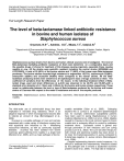 International Research Journal of Microbiology (IRJM) (ISSN: 2141-5463) Vol. 3(11) pp. 345-351, November 2012 Available online http://www.interesjournals.org/IRJM Copyright © 2012 International Research Journals Full Length Research Paper The level of beta-lactamase linked antibiotic resistance in bovine and human isolates of Staphylococcus aureus Onyenwe, N.E*1., Adeleke, O.E1., Mbata, T.I2., Udeji,G.N.3 1 Department of Pharmaceutical Microbiology, Faculty of Pharmacy, University of Ibadan, Ibadan, Nigeria 2 Department of Microbiology, Federal Polytechnic Nekede, Owerri, Nigeria 3 Department of Public Health, Ministry of Health Owerri, Imo State ABSTRACT Staphylococcus aureus strains from bovine and human clinical sources were investigated. The level of Beta-lactamase mediating antibiotic resistance on them were determine on a comparative basis and the possible drugs of choice for treatment of this disease causing organism, especially those causing mastitis in cow. All the strains were penicillin resistant including the control strains (NCIB8588 and ATCC25923). A total of 20 (80%) of the bovine strains and 17 (68%) of the human were Beta-lactamase producers. The bovine strains recorded high resistance to augmentine 18(72%), erythromycin 22(88%), amoxycillin 22(88%) and cloxacillin 24(96%) when compared to the human strains. All the Betalactamase producing strains were sensitive to all cephalosporin class of drugs screened on them. The coefficient of variations from the differences of the means in the individual treatment effect of Betalactam drugs used and strain differences at p>0.05 was observed to be 40.79% and 36.89%,with a standard error deviation of ±1.15mm and ±1.29mm for the bovine and human strains respectively. These reveal no relationship between the level or type of Beta-lactamase produced by the bovine and human strains of S.aureus with respect to the mode of resistance and rate of the enzyme produced. Keywords: Staphylococcus aureus, Beta-lactamase, iodometric, Beta-lactam,Bovine strain, Human strain, mastitis. INTRODUCTION The wide-scale use of antimicrobial drugs has been implicated in microbial drug resistance, which is an adaptive response in which microorganisms become able to tolerate an amount of drug (Bennedsgaard et al., 2006). S.aureus is a versatile pathogen of man and animals, associated with a wide variety of infections ranging from mild superficial skin infections to life – threatening nosocomial infections, as well as community acquired diseases. S.aureus has been isolated from bovine mammary gland suffering from mastitis in a single herd (Bjorland et al., 2005), and is a major pathogen of bovine *Corresponding Author E-mail: o_nathejik@yahoo.com; Mob: +2348037797813 mastitis worldwide (Guler et al., 2005). Subtyping bacteria like S. aureus is an important epidemiological tool; for example, antimicrobial susceptibility patterns have been used for typing Staphylococcus in human medicine (Bjorland et al., 2005; Loir et al., 2003). Mastitis caused by S.aureus is the most common types of chronic mastitis and is extremely difficult to control by antibiotics treatment alone. Successful control is gained only through prevention of new infections and cow culling process (Loir et al., 2003). The cure rate after therapy for both clinical and subclinical mastitis has been shown to be lower for β-lactamase-positive S. aureus compared to β-lactamase-negative S. aureus strains (Bennedsgaard et al., 2006). Despite implementing intensive control measures, it is difficult to eradicate the intramammary infections caused by this pathogen and it remains a substantial economic problem (Guler et al., 2005). The high rate of resistance 346 Int. Res. J. Microbiol. against Beta-lactam antibiotics may have been due to the over use of this drugs in animal feeds and frequent consumption of this animals by man. Previously, several different phenotyping and genotyping techniques have been applied for subtyping of S.aureus isolates of bovine and human origin, such as phage typing, plasmid analysis, ribotyping, pulse-field gel electrophoresis, multi locus enzyme electrophoresis and binary typing (Guler et al., 2005). The coagulase protein is an important phenotypic determinant and is accepted as a major virulent factor which has been used to type S.aureus, because it encodes a 3’-end variable sequence region (Guler et al., 2005). According to Ang et al. (2006), antibiotic resistance is a global public health problem. Although all countries are affected, the extent of the problem in the developing nations especially in Nigeria is unknown. The production of Beta-lactamase greatly contributes to the clinical problem of resistance (Zhang et al., 2001; Shakibaie et al., 2003). According to Onyenwe et al. (2011) Betalactamases are enzymes that catalyse the hydrolysis of Beta-lactam drugs such as penicillins and cephalosporin. They are up to 190 Beta-lactamases (Onyenwe et al. 2011). Beta-lactamase are structurally related and probably evolved from enzymes involved in their wall synthesis, of the so called Penicillin-Binding-Proteins. Resistant depends on different mechanisms and more than one mechanism may operate for the same antibiotics. Microorganisms resistant to certain antibiotics may also be resistant to other antibiotics that share a mechanism of action or attachment (FVE, 2006). However, results of susceptibility patterns for commonly used antibiotics indicate that the prevalence of β-lactamase producing S.aureus which is resistant to penicillin seems to have remained at a fairly constant level (40–60%) for the last twenty years (Bennedsgaard et al., 2006). Taiwo et al. (2003) stated that S. aureus isolated were moderately sensitive to Cefotaxime, Erythromycin and Ciprofloxacin. According to Zhang et al. (2000) and Shakibaie et al. (2003), the production of Beta-lactamase greatly contributes to the clinical problem of antibiotic resistance in plasmid and on chromosomes where