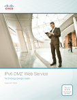 IPv6 DMZ Web Service Technology Design Guide August 2014 Series Table of Contents Preface.........................................................................................................................................1 CVD Navigator..............................................................................................................................2 Use Cases................................................................................................................................... 2 Scope.......................................................................................................................................... 2 Proficiency................................................................................................................................... 2 Introduction..................................................................................................................................3 Technology Use Cases................................................................................................................ 3 Use Case: Enable Native IPv6 Access for Network Traffic Between the Internet and a Web Server DMZ Network.............................................................................................................. 3 Use Case: Enable IPv6 Access for Network Traffic Between the Internet and an IPv4-only Web Server DMZ Network...................................................................................................... 3 Design Overview.......................................................................................................................... 4 Domain Name System for IPv6................................................................................................ 5 Deployment Details.......................................................................................................................6 Configuring IPv6 on the Cisco ASA Firewall............................................................................ 8 Configuring Cisco ASA to permit IPv6 web access................................................................13 Configuring IPv6 on the DMZ Web Server............................................................................ 23 Appendix A: Product List............................................................................................................26 Appendix B: CLI Configuration....................................................................................................27 ASA Firewall IE-ASA5545X........................................................................................................ 27 Table of Contents Preface Cisco Validated Designs (CVDs) present systems that are based on common use cases or engineering priorities. CVDs incorporate a broad set of technologies, features, and applications that address customer needs. Cisco engineers have comprehensively tested and documented each design in order to ensure faster, more reliable, and fully predictable deployment. CVDs include two guide types that provide tested design details: • Technology design guides provide deployment details, information about validated products and software, and best practices for specific types of technology. • Solution design guides integrate existing CVDs but also include product features and functionality across Cisco products and sometimes include information about third-party integration. Both CVD types provide a tested starting point for Cisco partners or customers to begin designing and deploying systems. CVD Foundation Series This CVD Foundation guide is a part of the August 2014 Series. As Cisco develops a CVD Foundation series, the guides themselves are tested together, in the same network lab. This approach assures that the guides in a series are fully compatible with one another. Each series describes a lab-validated, complete system. The CVD Foundation series incorporates wired and wireless LAN, WAN, data center, security, and network management technologies. Using the CVD Foundation simplifies system integration, allowing you to select solutions that solve an organization’s problems—without worrying about the technical complexity. To ensure the compatibility of designs in the CVD Foundation, you should use guides that belong to the same release. For the most recent CVD Foundation guides, please visit the CVD Foundation web site. Comments and Questions If you would like to comment on a guide or ask questions, please use the feedback form. Preface August 2014 Series 1 CVD Navigator The CVD Navigator helps you determine the applicability of this guide by summarizing its key elements: the use cases, the scope or breadth of the technology covered, the proficiency or experience recommended, and CVDs related to this guide. This section is a quick reference only. For more details, see the Introduction. Use Cases This guide addresses the following technology use cases: • Enable Native IPv6 Access for Network Traffic Between the Internet and a Web Server DMZ Network—Native IPv6 access to web servers in a DMZ requires the full enablement of IPv6 at the Internet edge. The firewall and web servers are configured for IPv6 without the need for any network address translation (NAT). • Enable IPv6 Access for Network Traffic Between the Internet and an IPv4-only Web Server DMZ Network—IPv6 access to IPv4 web servers in a DMZ requires the partial enablement of IPv6 at the Internet edge. Only the outside of the firewall is configured for IPv6 and the web servers run IPv4. Network address translation for IPv6 to IPv4 (NAT64) is configured on the firewall. Related CVD Guides VALIDATED DESIGN VALIDATED DESIGN Campus Wired LAN Technology Design Guide Firewall and IPS Technology Design Guide For more information, see the “Use Cases” section in this guide. Scope This guide covers the following areas of technology and products: • Cisco ASA 5500-X Series Adaptive Securi