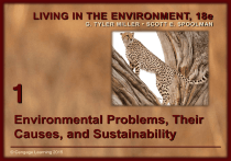 LIVING IN THE ENVIRONMENT, 18e G. TYLER MILLER • SCOTT E. SPOOLMAN 1 Environmental Problems, Their Causes, and Sustainability ©©Cengage Learning2015 2015 Cengage Learning Core Case Study: A Vision of a More Sustainable World in 2065 • A transition in human attitudes toward the environment, and a shift in behavior, can lead to a much better future for the planet in 2065 • Sustainability – The capacity of the earth’s natural systems and human cultural systems to survive, flourish, and adapt into the very long-term future © Cengage Learning 2015 1-1: What Are Some Principles of Sustainability? • Nature has sustained itself for billions of years by using solar energy, biodiversity, and nutrient cycling • Our lives and economies depend on energy from the sun and on natural resources and natural services (natural capital) provided by the earth © Cengage Learning 2015 1-1: What Are Some Principles of Sustainability? (cont’d.) • Shift toward living more sustainably by: – Applying full-cost pricing, searching for winwin solutions – Committing to preserving the earth’s lifesupport system for future generations © Cengage Learning 2015 Environmental Science Is a Study of Connections in Nature • Environment: everything around us • Environmental science: interdisciplinary science connecting information and ideas from: – Natural sciences: ecology, biology, geology, chemistry – Social sciences: geography, politics, economics – Humanities: ethics, philosophy © Cengage Learning 2015 Three Scientific Principles of Sustainability • Dependence on solar energy – The sun provides warmth and fuels photosynthesis • Biodiversity – Astounding variety and adaptability of natural systems and species • Chemical cycling – From the environment to organisms and then back to the environment © Cengage Learning 2015 Three Principles of Sustainability © Cengage Learning 2015 Chemical Cycling Solar Energy Biodiversity Fig. 1-3, p. 8 Sustainability Has Certain Key Components • Natural capital: keep species alive – Natural resources: useful materials and energy in nature – Natural services: important nature processes such as renewal of air, water, and soil • Ecosystem services – Processes provided by healthy ecosystems © Cengage Learning 2015 Solar energy Natural Capital Natural Capital = Natural Resources + Ecosystem Services Air Renewable energy (sun, wind, water flows) Air purification Climate control UV protection (ozone layer) Life (biodiversity) Population control Water Water purification Pest control Waste treatment Soil Nonrenewable minerals (iron, sand) Soil renewal Nonrenewable energy (fossil fuels) Land Food production Nutrient recycling Natural resources Ecosystem services Fig. 1-3, p. 7 Other Principles of Sustainability Come from the Social Sciences • Full-cost pricing – Include harmful health and environmental costs of goods and services • Win-win solutions – Benefit people and the environment • A responsibility to future generations © Cengage Learning 2015 Some Resources Are Renewable and Some Are Not • Resources – Anything we obtain from the environment to meet our needs – Some directly available for use: sunlight – Some not directly available for use: petroleum • An inexhaustible resource – Solar energy © Cengage Learning 2015 Some Resources Are Renewable and Some Are Not (cont’d.) • Renewable resource – Several days to several hundred years to renew – Examples: forests, grasslands, and fertile soil • Sustainable yield – Highest rate at which we can use a renewable resource without reducing available supply © Cengage Learning 2015 Some Resources Are Renewable and Some Are Not (cont’d.) • Nonrenewable resources – Finite stock on earth – Energy resources – Metallic mineral resources – Nonmetallic mineral resources © Cengage Learning 2015 Principles of Sustainability ECONOMICS Full-cost pricing Fig. 1-5, p. 9 Countries Differ in their Resource Use and Environmental Impact • More-developed countries – Industrialized nations with high average income – 17% of the world’s population • Less-developed countries – 83% of the world’s population © Cengage Learning 2015 1-2: How Are Our Ecological Footprints Affecting the Earth? • As our ecological footprints grow, we are depleting and degrading more of the earth’s natural capital © Cengage Learning 2015 We Are Living Unsustainably • Environmental degradation: wasting, depleting, and degrading the earth’s natural capital – Happening at an accelerating rate © Cengage Learning 2015 Natural Capital Degradation Degradation of Normally Renewable Natural Resources Climate change Air pollution Shrinking forests Decreased wildlife habitats Species extinction Soil erosion Water pollution Aquifer depletion Declining ocean fisheries © Cengage Learning 2015 Fig. 1-7, p. 11 Pollution Comes from a Number of Sources • Sources of pollution – Point sources • Single, identifiable source – Nonpoint sources • Disbursed and difficult to identify • What are some strategies for pollution cleanup and prevention? © Cengage Learning 2015 Point-Source Air Pollution Fig. 1-8, p. 11 Nonpoint Source Water Pollution Fig. 1-9, p. 11 The Tragedy of the Commons: Degrading Commonly Shared Renewable Resources • Types of resources – Open access renewable resources – Shared resources • Tragedy of the commons – Common property and open-access renewable resources are degraded from overuse – What are some solutions? © Cengage Learning 2015 Ecological Footprints: A Model of Unsustainable Use of Resources • Ecological footprint – Amount of biologically productive land and water needed to provide a person or area with renewable resources, and to recycle wastes and pollution • Per capita ecological footprint • Ecological deficit – Footprint is larger than biological capacity for replenishment © Cengage Learning 2015 Natural Capital Use and