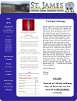 MAY Principal’s Message 2015 98 Wanita Road Mississauga ON, L5G 1B8 Phone 905.891.7619 Fax 905.278.6539 Trustees Mario Pascucci, Bruno Iannicca, Sharon Hobin, Esther O'Toole, Luz del Rosario, Anna Abbruscato, Anna Da Silva, Thomas Thomas, Darryl D’Souza, Frank Di Cosola, Shawn Xaviour Superintendent T. Lariviere Principal Brian Diogo Heavenly Father, to you I pray... On this day called, "Mother's Day." Let all mother's on earth give praise, To you...for the children that you gave. For you have blessed them from above, with little souls to nourish and love. Let them mold each one with care... And teach them to be kind and share. Forgiveness is the special key... Start early on, to help them see. Their fragile minds are easily impressed. Please teach them ways, so they'll be blessed. Sow godly seeds into their minds. With careful pruning, you will find... Young adults with such strong roots, all through life, will bear rich fruit. And then have faith for God to show... Them all the rest they have to know. Remember they're His children too. For they were only lent to you. Secretary A. Litster Spring is here and it’s one of my favourite times of year. There’s an energy of new growth and rebirth in the air as we shed our ‘winter layers’ and continue to live the Easter promise. I see this energy alive and well at St. James as we move into the last portion (hard to believe!) of the year. There is a ‘busy excitement’ in our community as the students long to enjoy the beautiful weather at recesses and participate in the wide range of extra-curricular activities available such as the crochet club, soccer intramurals, the virtues assemblies, eco club, rosary club, talent show, French showcase and much more. Thank you to all the teachers who contribute time beyond the instructional hours to offer these enriching opportunities for our students, you are a very special group. Thank you to the parents for their on-going support that enable their children to participate in these worthwhile activities. Just like spring, it’s this spirit of co-operation that makes St. James the special school it is . . . A good place for children to learn and grow! May God Bless You, B. Diogo Principal Amen INSIDE THIS ISSUE: P.A. DAY Living Our Faith & Eco News 2 School Council Inquiry Corner 3/4/5 Co-Chairs School Council 5 There will be a P.A. Day on Monday, Jayhawk News 6 May 11th. Please take note that Take Note 7 there will be NO SCHOOL Upcoming Dates 7 on that day. M. Giovanniello J. McCarthy PAGE 2 Living Our Faith Virtue Corner MAY ~ ACCEPTANCE This month we will celebrate the virtue of ACCEPTANCE. A person with acceptance… Are friendly and open to all God’s people; Sense God’s presence in people of all ages, beliefs, genders, cultures, and/or abilities; Avoid the temptation to judge negatively or stereotype others; Look for the positive traits in others; Understand there may be more than one way of doing things; Stick up for the disadvantaged; Notice who is left out and include them. ECO NEWS Earth Week Thank you to everyone for participating in last month’s Earth Week activities. Students showed their support for Earth Week by bringing in litterless lunches, wearing green and blue, using their reusable water bottles and participating in a community clean up event. Gardening Club As the weather gets nicer members of our Eco Team will begin to plant flowers and help maintain the gardens around the school. Victoria Day There will be no school for the students on Monday May 18th. The school will be closed for the Victoria Day Holiday. MAY 2015 NEWSLETTER Your support with our environmental initiatives in honouring and protecting the gifts given to us from God is greatly appreciated. Going Green Together! PAGE Inquiry Corner Romans 12: 3-6 For by the grace given to me I say to everyone among you not to think of yourself more highly than you ought to think, but to think with sober judgment, each according to the measure of faith that God has assigned. For as in one body we have many members, and not all the members have the same function, so we, who are many, are one body in Christ, and individually we are members one of another. We have gifts that differ according to the grace given to us: prophecy, in proportion to faith. As a Catholic school we emphasize the virtues program along with the IB learner attributes and attitudes. Together we encourage our students to be responsible citizens. A responsible citizen gives witness to Catholic social teaching by promoting peace and justice by being responsive to the needs and the sacredness of human life. This month will celebrate the virtue of Acceptance. 3 Inquiry Corner The Ontario Catholic Graduate Expectations Vision of the Learner: The graduate is expected to be a responsible citizen. A responsible citizen is someone who: accepts accountability for one’s own actions seeks and grants forgiveness respects and affirms the diversity and interdependence of the world’s peoples and cultures respects the environment and uses resources wisely St. James Catholic Global Learning Centre 2nd Annual Exhibition What is the Exhibition? The IB Attribute for this month is open-minded. Someone who is open-minded appreciates their own culture and the views, values and traditions of other individuals and cultures. Being open-minded gives people the opportunity to consider different points of view. The IB Attitude for this month is Tolerance. Being tolerant means accepting, understanding and appreciating the differences in others. People who are tolerant are responsive to the needs of others. MAY 2015 NEWSLETTER The Exhibition is a celebration of learning for students. It is a culminating project that involves a collaborative inquiry that students are interested in exploring. The Exhibition is meant to reflect what students understand of the inquiry process and other PYP elements such as the attributes of the learner profile that they have been developing over 