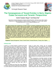 Journal of Research in Economics and International Finance (JREIF) (ISSN: 2315-5671) Vol. 2(5) pp. 79-87, July, 2013 Available online http://www.interesjournals.org/JREIF Copyright © 2013 International Research Journals Full length Research Paper The Consequences of Tenant Eviction in Ilorin, Nigeria: Estate Surveyors and Tenants’ Perspectives Ibrahim Tajudeen Akogun*1 and Olatoye Ojo2 *1 Department of Estate Management, Moshood Abiola Polytechnic, Abeokuta, Ogun State, Nigeria. Department of Estate Management, Obafemi Awolowo University, Ile – Ife, Osun State, Nigeria. *Corresponding Author’s E-mail: akogun2000@yahoo.com 2 Abstract This paper examines the consequences of tenant eviction in property management practice with a view to suggesting measures aimed at reducing its incidence. The 16 registered estate surveyors and 114 evicted tenants in the study area were surveyed with a structured questionnaire. Data collected were analyzed using frequency distribution tables and frequencies. The study revealed that the most vulnerable categories of tenants are within the lower income bracket. In spite of the substantial qualitative and quantitative housing problems in Nigeria, the impact of eviction can be severe. Eviction resulted in homelessness for the displaced tenants; it led to enmity, loss of income and time wastage for litigation and also bad reputation for the manager especially where the case was lost. Evictions when inevitable should be undertaken with a degree of concern and care must be taken to avoid waste of resources. The paper observes that it is necessary to create a national database of detailed information on evictions to help determine the scope of the problem, bring national attention to eviction issues, and develop housing policies and programs that might decrease the occurrence and impacts of evictions. Keywords: Property Management, Tenant, Tenant Eviction, Premises Recovery, Tenancy, Ilorin, Nigeria. INTRODUCTION A tenancy is a contract between a landlord and tenant which contains the terms and conditions of the rental. It cannot be changed while it is in effect unless both parties agree (Boulder, 2012; Williams, 2000; Spitzer, 2003). A very important aspect of the activities involved in property management is dealing with leases and most importantly, dealing with tenants to facilitate a good landlord-tenantmanager relationship (Kyle and Kennehan, 1979). The term ‘eviction’ describes the practice of involuntary removal of person(s) from their homes. It is frequently associated with a range of related terms such as premises recovery, ejection, forced removal, relocation, dislocation, expulsion and displacement (Leckie, 1995; Microsoft Encarta, 2009). Although the causes of tenant eviction can be varied, in most instances, it arises as a response of landlord to unruly violation of the lease by tenant. Different methods have also been used in different places. Both the landlord and tenant have some obligations to respect under the tenancy agreement. Whenever there is a conflict between the landlord and tenant arising from breach of lease terms, eviction may be inevitable especially when other forms of settlement are not feasible (Ojo, 2007). Property management problems would reduce considerably if all tenants comply with the rules, covenants and conditions of a tenancy. Even where this is possible, some other reasons would make it imperative to terminate some tenancies. In property management, tenant eviction is almost inevitable although there are several precautions that may be taken to avoid it. It is a global phenomenon, occurring in all parts of the world, both developing and developed countries (COHRE, 2004, 2006). The consequences of premises recovery are highly disturbing, particularly for self – help methods, and when we look more closely at its local impacts– on individuals, families and communities (Leckie, 1995; Momah, 2011; Landlord and tenant Board, 2012 and Moneke, 2009). Also of great concern is the impending eviction of thousands of families living in various categories of rental properties across the country. In Ilorin particularly, hapless Nigerians suffer untold hardships in the hands of 80 J. Res. Econ. Int. Finance some greedy and wicked landlords who employ different tactics including self-help to eject tenants who are unable to meet with absurd and perverse increments of rent (Moneke, 2009). Many tenants needlessly suffer grave hardships for lack of knowledge of the protections which the relevant laws confer on them. Therefore, this study is set to examine the various impacts of eviction on property manager and evicted tenants. Given the nature of this study, the specific research questions which should be answered include – What category of people is mostly affected by eviction? In what type(s) of properties is tenant eviction mostly prevalent? What are the consequences and implications of tenant eviction? What can be done to prevent evictions? The paper provides answers to these questions. LITERATURE REVIEW Concept of Tenant Eviction Ordinarily, eviction means removing a tenant from the premises in which they live by legal proceedings, for a particular reason known to the Landlord. Its professional meaning is given as “a legal proceeding by a lessor (landlord) to recover possession of property” (Friedman et al., 1997). When a tenant fails to comply with the lease agreement, the landlord may seek eviction of the tenant to terminate his rights to use the property. Eviction was defined as a legal process by which a landlord forces a tenant to move out of the landlord's property involuntarily and usually permanently (Microsoft Encarta, 2009; Momah, 2011 and Serving Hennepin County, 2012). Texas Low Income Housing Information Service (2006) refers to eviction as “a lawsuit filed by a landlord to remove persons and belongings from the landlord's property”. In Texas law, these are also referred to as "forcible entry and deta