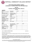 HARTNELL COMMUNITY COLLEGE DISTRICT FACILITIES DEVELOPMENT COUNCIL (meeting as: Facilities Master Plan Planning Group) Minutes Tuesday, January 28, 2014; 2:00 p.m. E-112 MEMBERS Name Alfred Muñoz, Vice President Chair Joseph Reyes, Director Matt Coombs, Vice President John Anderson, Instructor Mary Davis, Instructor Paul Casey, Director DSPS/EOPS Alma Arriaga, HR Specialist Tina Summers, Accounting Assistant-Cashier Ismael Ramirez, Custodian Unassigned Representing Management Present X Management-Facilities Management-Info Tech and Resources Faculty X Faculty Categorical Programs X X Confidential Staff CSEA X X L-39 Assoc. Students X Title or Representing Institutional Planning & Effectiveness Lionakis Lionakis Present X Lionakis X Absent X X X Others Name Brian Lofman, Dean Dave Younger, Principal Jonathan McMurtry, Project Manager Ashley Kenneally, Project Designer/Planner CALL TO ORDER & INTRODUCTIONS Absent X X Alfred Muñoz Meeting called to order at 2:10 p.m. Chair Al Muñoz addressed the importance of attending meetings and arriving on time; stated he will speak to the members not present. Al commented that the facilities master plan (“FMP”) is an all-out effort to get a grasp on the needs of the college now and into the future. Joseph Reyes added that this is an awesome opportunity to meet with all departments and programs to find out where the needs are and the project will help to identify if current space is being effectively utilized. Joseph stressed this is an extensive process and one which will provide the college with a good, readable document that can be referred to in program review. 1 Hartnell College Mission Statement Hartnell College provides the leadership and resources to ensure that all students shall have equal access to a quality education and the opportunity to pursue and achieve their goals. We are responsive to the learning needs of our community and dedicated to a diverse educational and cultural campus environment that prepares our students for productive participation in a changing world. Representatives from Lionakis introduced themselves, as follows: Ashley Kenneally – project designer/planner Dave Younger – principal in charge of the facilities master plan project Jonathan McMurtry – project manager; point of contact; science building project manager Dave Younger pointed out that this group – the planning group – is comprised of the people Lionakis will talk to about day to day operations such as how the campus works. The group will act as liaison with the campus community and will be asked to check in with their constituents regularly. Dave identified three functions of the planning group: (1) Research; (2) Analysis; (3) Synthesis or Solution. Additionally, Dave addressed important points relating to the planning group: Talk to as many people as possible during this process Try to meet on a 2-3 week cycle Report to the Core Group (Executive Cabinet) with ideas and directions; the core group makes critical decisions Meet with the community; provide open forums to involve as many people as possible Engage all three campuses Brian Lofman asked why the project is considered a master plan. Dave responded: The master plan is considered the highest level; it governs everything else that happens beneath it. Anything that has to do with facilities falls under the master plan. Program Definition for Campuses – Interviews with deans / directors are scheduled; Ashley Kenneally and Jonathan McMurtry will conduct the interviews over a three day period in February. Interviews will assist in the understanding of how programs work, what the strengths and weaknesses are, and what it takes to makes facilities better. Problems will also be identified. Adjacencies / Layout – During interviews, inquire if program needs are currently being satisfied. Growth Projections – Discuss growth projections; talk about capacity; explore the growth projections for the community. Talk to community members. Dean of Institutional Planning and Effectiveness will play an integral part in this area. Public/Private Group (community outreach) – Important to not just tell the community what the college is going to do but rather involve the community in what is going to be done. Review Master Plan Process/Schedule – The schedule is fluid right now and some dates might need to be adjusted, however, Dave outlined the schedule as currently envisioned: Meet with core group in early January (completed - 1/8/2014) Interviews with deans and managers in mid-February (scheduled - 2/12, 2/13, 2/14/2014) Report back to core group near the end of February with the results of the interviews (scheduled - 2/26/2014, 8:30 a.m.) In March, conduct forums with the community, students, and faculty Also in March, the planning group should convene again (scheduled - 3/13/2014) At the May 2014 board meeting, provide an update related to data gathered via interviews (5/6/2014) June/July is the period when graphics will be put together, suggestions and solutions illustrated At the end of summer, inform the community Review Current Design Status – What to do with the existing science building? Decisions need to be made. Discussion ensued related to the existing science building. Dave led the members in the first exercise pertaining to strengths, weaknesses, and shortcomings that currently exist. There were many areas identified by the members such as: 2 Hartnell College Mission Statement Hartnell College provides the leadership and resources to ensure that all students shall have equal access to a quality education and the opportunity to pursue and achieve their goals. We are responsive to the learning needs of our community and dedicated to a diverse educational and cultural campus environment that prepares our students for productive participation in a changing world. Exercise #1: Strengths: Safety and security improvements Solar PV system at Alisal Campus which offsets approximately 93% of e