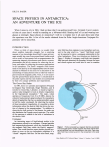 KILE B. BAKER SPACE PHYSICS IN ANTARCTICA: AN ADVENTURE ON THE ICE When I came to APL in 1981, I had no idea what I was getting myself into. Certainly I never suspected that six years later I would be standing on a 160-meter-thick floating shelf of ice and wearing sunglasses at midnight. Space physics in Antarctica? I will try to explain how it all came about and what the experience was like. A few of the results obtained from the Polar Anglo-American Conjugate Experiment will be described. INTRODUCTION When we think of space physics, we usually think about satellites (naturally enough), but a surprising amount of our knowledge about Earth's space environment actually has come from ground-based studies made with a variety of instruments such as magnetometers for measuring magnetic disturbances and electric currents, photometers and all-sky cameras for observing the auroras, and radars for observing the structure and motions in the ionosphere. The Earth's magnetic field focuses much of the activity in the magnetosphere (see the introduction by Mitchell in this issue for a discussion of the terminology of space physics) onto a relatively small region around the magnetic poles. Thus, it is not surprising that ground-based space physics is concentrated in the polar regions and that such studies are accompanied by their own unique problems and requirements. netic field lines that originate in one hemisphere and connect to the solar wind (Le., "open" field lines) would not be expected to show a conjugate relationship in the other hemisphere. These two situations are depicted in Figure 1. Studies of conjugacy could help trace magnetic field lines and determine the boundary between the open and closed regions and could also be used to examine The Goose Bay Radar In 1983, three APL scientists and engineers (Principal Investigator Ray Greenwald, Roger Hutchins, and I) traveled to Goose Bay, Labrador, to install a high-frequency radar designed to look at density irregularities in the high-latitude ionosphere. I The radar, which operates at frequencies from 8 to 20 MHz, detects the coherent backscattered signal produced by ionospheric density irregularities that have a spatial periodicity equal to half the radar wavelength. By observing the motion of these ionospheric irregularities, it is possible to derive information about the electric field that drives the motion of plasma in the magnetosphere. 2 In addition to observing the bulk motion of the plasma, the radar can also determine the Doppler power spectrum. The width of the spectrum is related to the level of turbulence in the electric field. Conjugacy An interesting aspect of high-latitude studies is the phenomenon referred to as conjugacy. Charged particles and magnetohydrodynarnic waves are channeled along the magnetic field lines within the Earth's magnetosphere. One would therefore expect similar physical processes to occur at the two ionospheric endpoints of a "closed" magnetic field line. On the other hand, mag228 Figure 1. Points connected by a magnetic field line are referred to as conjugate points. Closed magnetic field lines channel energy and particles from one hemisphere to the other. Open magnetic field lines connect a point in the ionosphere to the solar wind. fohns Hopkins APL Technical Digest, Volume 11, Numbers 3 and 4 (1990) the roles that solar illumination and ionospheric conductivities play in the formation of ionospheric irregularities and electric field turbulence. When John R. Dudeney, the head of the Geospace Research Group at the British Antarctic Survey (BAS), heard about APL'S plans for the Goose Bay radar, he realized that they could lead to the most ambitious conjugate experiment ever undertaken. The Goose Bay radar is located at a geographic latitude of 53 oN but, because of the tilt of the Earth's magnetic axis, its magnetic latitude is 64 oN and its conjugate point in the Southern Hemisphere is at a geographic latitude of 74 oS, well within the Antarctic circle. Fortuitously, the Goose Bay conjugate point is located very close to Halley Station, an Antarctic research base operated by BAS on the Brunt Ice Shelf in the Weddell Sea. Figure 2 shows the field of view of a Halley radar and the projection of the Goose Bay radar field of view produced by tracing magnetic field lines from the Northern Hemisphere to the conjugate points in the south. The overlap of the two fields of view is very large, and a high-frequency radar at Halley Station would provide unprecedented opportunities for conjugate studies. Thus, almost from the inception of the Goose Bay radar, there were hopes that a similar radar could be installed at the magnetically conjugate location. Because of BAS'S interest in collaborating with APL in a joint project, a member of BAS, Mike Pinnock, joined us in building the Goose Bay radar. He wanted to familiarize himself with the construction in order to determine what could be accomplished at Halley and what potential problems might be encountered in building a similar system in Antarctica. At the time, we hoped to begin the construction of the Halley radar within two years, but budget problems caused a long delay, and it was not until 1987 that we were finally able to build the second radar. THE POLAR ANGLO-AMERICAN CONJUGATE EXPERIMENT Even when the funds to build a radar at Halley became available, they were limited, and a way of maximizing the scientific rewards while minimizing the cost had to be found. The solution was to make the project a joint effort between BAS and APL. A National Science Foundation grant enabled APL to purchase most of the necessary hardware, and BAS provided the remaining hardware and the manpower to build all the components of the radar, install the radar at Halley Station, and operate it. The joint project was called the Polar AngloAmerican Conjugate Experiment (PACE) (see Fig. 3). The Halley Radar Although BAS was to bear the responsibility for the construction and operation