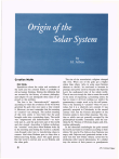 Creation Myths Old Myths Speculation about the origin and evolution of the earth and the celestial bodies is probably as old as human thinking. During the millennia that are covered by the history of science, philosphy, and religion we can distinguish three types of approach to this problem. The first is the "theocratic-myth" approach, according to which the evolution of the world was governed by gods who once upon a time created it. However, we must remember that the meaning of "creation" has changed. The earliest meaning of this term seems to have been that the gods brought order into a preexisting chaos. The world was "ungenerated and indestructible"-as Aristotle puts it-and the gods were part of this world and also eternal. According to Indian mythology the "creation" took place when Brahma woke up in the morning and, finding the world in a chaotic state, brought order into it, transforming chaos to cosmos. And when Brahma goes to sleep after a billion-year-Iong Kalpa, chaos will again prevail. But the world is eternal, just as are Brahma and the other gods. 2 The rise of the monotheistic religions changed this view. When one of the gods got a higher status than others (who in some cases became demons or devils), he continued to increase in prestige and power until he became the Supreme Lord, the undisputed ruler of the whole world. Then it was not enough for him to create the world in the sense of organizing a preexisting chaos; he had to create it all from nothing (ex nihilo) by pronouncing a magic word or by his will power. This is the meaning of "creation" when we use it today, but it is a relatively new concept. It was generally accepted in Christianity in the second century A.D. but the Genesis description of the Creation seems to have either meaning. The creation ex nihilo was not generally accepted by the philosophical-scientific community until the synthesis by St. Thomas of Christian dogma and Aristotelian philosophy. In the theocratic mythologies the gods created the world and ruled its evolution according to their whims. We read in The Odyssey how Neptune was angry with Odysseus and generated storms to destroy him but how Pallas Athena saved him by producing other natural phenomena. In a similar way the actions of their parents or grandparents APL Technical Digest (Zeus-Jupiter and Chronos-Saturn) had led to the creation of the world. There was no obvious reason why the world should be as it is. It was merely an accidental result of the activities of the gods. In the monotheistic religions God was sometimes thought to be a despot who did whatever He liked, and it was not allowed to question or analyze His acts. Mathematical Myths With the rise of philosophy and early science, the gods became less despotic and increasingly philosophically and scientifically minded. The creation of the world and its evolution were parts of a master plan, and it was not unreasonable that man should be able to understand the plan. A breakthrough in this thinking came with the Pythagorean philosophy. The Pythagoreans discovered how beautiful and powerful mathematics was. They found that musical harmonies could be explained as ratios between integers, and they demonstrated that there were five and only five regular polyhedra. I think there are few if any scientific discoveries that surpass these in beauty. With such achievements it was quite natural that the Pythagoreans applied the same methods to other scientific and philosophical problems, one of them being the macroscopic structure of the world. They tried to explain it in terms of simple numerical relations and of logically and mathematically beautiful concepts. They considered the sphere to be the most "perfect" of all bodies and uniform motion to be the simplest and most beautiful type of motion. Thus the stars and the planets must be located on crystal spheres that revolved around the Earth with a uniform motion. The basic idea was that the macroscopic world must be structured according to simple mathematical laws-just like musical harmonies and geometrical figures. Such views were not necessarily in conflict with religion. No one who studies mathematics can avoid the impression that the theorems have a beauty that may be called divine. Hence one could expect the gods to structure the world according to some mathematically and logically beautiful principles. It was the task of philosophers and scientists to find what these cosmological principles were. When they were found, the cosmological problem was solved. We need only one principle, one formula, in order to understand the whole world. This second approach may be called the "matheVolum e 15, Numb er 1 Fig. 1- Relation between regular polyhedra and planets as demonstrated in a 1597 model of the universe. (The outermost sphere is Saturn's.) matical myth" approach, developed during the centuries into the Ptolemaic cosmology. It is impressive in its logical reasoning and mathematical beauty. For example, it was demonstrated that there should be seven planets, including the sun and moon, revolving around the earth. For seven was a holy number, there being seven days in a week, seven tones in the scale, and so on. And excluding the sun and moon there were just as many planets as regular polyhedra (Fig. 1). However, a comparison between this cosmology and observations led to a number of discrepancies. In order to account for the observed motions of the celestial bodies it was necessary to introduce a series of epicycles and other factors that made the system increasingly complicated. This did not diminish the credibility of the theory-it just demonstrated that the material world is imperfect. Empirical Approach In the sixteenth and seventeenth centuries the Ptolemaic system broke down, and a new celestial mechanics was introduced that constitutes the third, "empirical", approach. It was based especially on the investigations of falling bodies by Galilei and the very accurate astronomical o