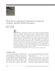 D. C. GRIFFITH Phase Error Compensation Technique for Improved Synthetic Aperture Radar Performance Dale C. Griffith R adar data contain phase errors whose sources include uncompensated platform motion and transmitter and receiver phase errors. Achieving theoretical resolution from a pulse compression system requires a method to minimize those phase errors. This article discusses a method of estimating and correcting phase errors in synthetic aperture radar data. The method requires that one or more stationary point targets be included in the data. The phase history of each reference target is estimated for the period in which the target is in the view of the radar. The phase error, computed as the deviation from the theoretical phase function, is estimated and removed from the raw data. Unfortunately, conventional continuous phase measurement requires high signal-to-noise ratio. To increase the effective signal-to-noise ratio of the raw reference target data, the targets are extracted after matched filtering, and the resulting data are inverse matched filtered. In one test data set, this phase correction method improved the synthetic aperture radar image resolution by 50%. (Keywords: Inverse filtering, Phase error correction, Synthetic aperture radar.) INTRODUCTION Since 1983, the Submarine Technology Department has been developing and applying a synthetic aperture radar (SAR) processor. This system can process data from many SAR systems: Seasat, SIR-A (shuttle imaging radar), SIR-B, Jet Propulsion Lab DC-8 SAR, Environmental Research Institute of Michigan CV580 SAR, Naval Air Defense Center (NADC) P-3 SAR, and Canadian Centre for Remote Sensing C-IRIS SAR. The processor was adapted to three different 358 computer systems: DEC VAX 785 with FPS-164 array processor, DEC uVAX II with numerix array processor, and DEC uVAX II. Over the processor’s history, the resolution of SAR images improved 10-fold because of the increased bandwidth of the SAR systems. The improved resolution necessitated improving SAR processing. The initial processor was created to process data from Seasat, a relatively low resolution satellite system.1 The final JOHNS HOPKINS APL TECHNICAL DIGEST, VOLUME 18, NUMBER 3 (1997) PHASE ERROR COMPENSATION TECHNIQUE incarnation could process data from the NADC P-3 SAR, a high-resolution airborne system. Both the higher resolution and the airborne platform make processing the data more difficult. Higher resolution requires the processor to have greater precision. Unlike satellites, airborne systems, such as airplanes, are buffeted by wind and turbulence, which cause them to stray slightly from the desired path, a straight line, during the image formation aperture. Nonlinear motion is accounted for by adding a motion-compensation algorithm into the processing chain. One approach to compensate for platform motion is to estimate and then correct for the phase errors introduced by the motion. Phase error correction algorithms include map drift,2 phase difference, phase gradient algorithm,3 spatial correlation algorithm, prominent point processing (PPP),4 and inverse filtering.3 Map drift and phase difference form multiple subsets of data and correlate the corresponding images to form a polynomial estimate of the phase error, where the order of the polynomial equals the number of subsets. The spatial correlation and phase gradient algorithms are adaptations of the shift-and-add algorithm, from speckle interferometry within astronomy, where data from each range form a low SNR estimate of the phase error. The estimates for each range are combined in a least-squares sense to estimate the phase error. In PPP, an operator adjusts the raw data so that strong targets match their expected response. Inverse filtering infers the phase error by deconvolving the blur associated with a strong target from the response of the target. All of these methods require some structure within the scene. PPP and inverse filtering are not automatic and can only be applied to scenes containing strong, stationary point targets. This article discusses an algorithm to measure a radar’s phase error, using a combination of the inverse filtering phase estimation method and PPP. The algorithm can be viewed as a stripmap SAR implementation of either PPP or inverse filtering. (A stripmap is an image of a long narrow area of terrain parallel to the flight path.) The phase error estimates have been used to correct the SAR image. The resulting image quality improvements are also discussed. of the scene as a function of the range and azimuth location. SAR achieves high resolution by forming a very long virtual antenna array. The virtual array is created using a single array element and moving that element to the location of each synthetic array element to collect the data for that synthetic element. This is typically accomplished by placing the real element on an airplane or satellite and collecting data while the platform is moving. The SAR image is created by beamforming the data from the array. High-resolution SAR beamforming occurs in the near field. However, the elements of the virtual array are directional so the array can only form a beam in a single direction. For the purpose of discussion, this beam is assumed to be pointed broadside to the flight path. The array dimensions are determined by the flight and radar parameters. One notable feature of SAR is that the resolution is independent of range. This is quite an advantage over conventional radars whose resolutions are determined by the antenna beamwidth, which is inversely proportional to the antenna size and results in a crossbeam (azimuthal) resolution dependence on range. The constant azimuthal resolution of a SAR is achieved by synthesizing a longer array for greater range viewing, in contrast to a real array radar whose number of elements is fixed, thereby causing the antenna beamwidth to be fixed and the azimuth resolution to degrade with range. The i
