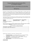 Program Planning and Assessment (PPA) for Academic Programs Comprehensive Review, Annual Review & Action Plan Spring 2014 The purpose of Program Planning and Assessment at Hartnell College is to obtain an honest and authentic view of a program and to assess its strengths, opportunities, needs, and connection to the mission and goals of the college. The process is based on the premise that each academic program reviews assessment data and uses these data to plan for improvement. The results of these annual cycles provide data for a periodic (every five years) comprehensive review that shows evidence of improvement and outlines long-range goals. The Program Planning and Assessment process will improve and increase the flow of information about student learning, student success and student behavior at Hartnell College. The result of the process will also improve institutional effectiveness. Program/ Discipline AIT (Agricultural and Industrial Technology) Date Completed (must be in final form by 3/31/14)* Date Submitted to Dean *Please note that you should work with your colleagues and dean to ensure that this report is completed, revised as needed, in its final form and submitted no later than the end of March. List of Contributors, including Title/Position Albert Graham- AIT Instructor Tom Pinkerton- Adjunct, Fehr Engineering Co. This PPA report is organized in 3 sections and 11 subsections as follows: I. II. III. Comprehensive Review – a. Overall Program Effectiveness, b. Instructional Staffing, c. CTE Programs – Labor Market & Achievement, and d. Program Goals. Annual Review – a. Course Data & Trends, b. Teaching Modality, c. Curriculum, d. Outcomes, and e. Previously Scheduled Activities. Annual Action Plan – a. New Activities and b. Resource Requests. INSTRUCTIONS è For programs/disciplines scheduled for comprehensive review in spring 2014, please complete Sections I, II, and III. è For programs/disciplines scheduled for annual review, please complete Sections II and III. I. COMPREHENSIVE REVIEW Please complete this section for programs/disciplines scheduled for comprehensive review in spring 2014. Go to Section II for programs/disciplines scheduled for annual review in spring 2014. A. OVERALL PROGRAM EFFECTIVENESS 1. Describe your program in terms of its overall effectiveness over the past several years. Agricultural and Industrial Technology (AIT) is an inter-disciplinary program designed to prepare the student for or for positions of employment requiring a general background in the application of technology or for transfer to the state university system. The introductory program in industrial mechanics is intended to allow students to acquire a solid base of skills in a variety of mechanical areas. More advanced skills can be learned in courses leading to the Industrial Technician certificates. Typical careers in the area of Agricultural & industrial Technology might include: farm shop and equipment dealer mechanic, processing facility maintenance worker or supervisor, part technician, or fabrication shop worker. Please consider the questions below in describing your program/discipline/area. · How are students/employees served by the program? Students that are in the AIT department are able to get real world applications in working in a shop fixing, maintaining or altering equipment. · What are the unique aspects of the program? The AIT program is unique in a couple of aspects: - Classes are on a 9 week long - The classes are large amount of hands on actives - Students can take a wide verity of classes · How does the program relate to the needs of the community? With so many industrial and agricultural shops in the valley there is a large need for basic shop skills from basic fabrication, hydraulic, tractor driving, and electricity. · How does the program interface/collaborate with other programs on campus? The AIT works very closely with the Welding program. · What is working well in the program/discipline? The 9 week course seams to works well for students that go to Yuma for the winter, and come back in the early spring. 2|P ag e · If there is a sequence of courses in your program, what process or framework is used to ensure alignment? At this time there is no sequence of course in the AIT program · How is consistency maintained between/among multiple sections of a single course? At this time there are not any multiple sections taught of one course per semester. · Has the program explored alternative scheduling approaches? After looking at some of the courses there was a change of scheduling for four different classes for the Fall 2014; AIT-180, AIT-169, AIT-70, and AIT-172. The first two courses (AIT-180 & AIT-169) we taught in the pass for 9 weeks, meeting for only once a week for 2 hours. It was changed for the fall to be twice a week. After looking at the students’ scores it was seen that if a student misses one class they miss 1/9th of the class. So be making 2 days a week for 9 weeks the students won’t be too far behind if they miss a day. The next two courses (AIT-70 & AIT-172) we taught during the day time. It was changed in the Fall 2014 so the classes would be night class. The program is trying to increase the numbers the though was employees would have more time to make it to a night class. · Do prerequisites, co-requisites and strongly recommended skills continue to meet program needs? Are there special considerations regarding capabilities of incoming students? At this time there are no prerequisites of any of the classes in the AIT department. This needs to change so students or more equipped to work in the fabrication shop. · 3|P ag e What professional activities have faculty recently (last three years) participated in? o Fluid Power Training Institute (Winter 2013) § Practical Hydraulics and Safety o IVES Training Group, now a Certified Trainer in; (Spring 2014) § Aerial Boom Lift § Aerial Work Platform § Counterbalanced Forklift § Rou
