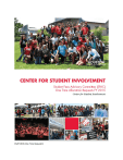 CSI/FY2015 One Time Request/1 FY2015 One Time Funding Requests Center for Student Involvement The Center for Student Involvement respectfully submits five requests for FY2015 One Time Funding. All of the requests will support student opportunities and experiences in leadership and civic engagement. A cost summary of all five requests is included at the end. Thank you for your consideration of these requests. Community Action Break: Spring Break Volunteering – Texas/Louisiana Community Action Break (CAB) developed from the Alternative Spring Break program offered by the Center for Leadership &Fraternity and Sorority Life in 2012 with their service trip to New Orleans. In addition to offering a Houston-area CAB each year in 2015, CSI plans to offer a Texas/Louisiana regional service experience. This trip would be designed for up to 20 participants. CAB can provide an opportunity for students to develop skills, travel, participate in service and develop a stronger sense of citizenship all while positively representing the University of Houston. Students who participate in an immersion service projects, and particularly the cross-cultural interactions with community members and students different from themselves, report development in their awareness of appreciation of other cultures, awareness of issues of poverty and social justice, and the needs of at-risk populations. CAB trips will also include an introduction to concepts of community engagement social justice and change. Regional trips can be held in nearby cities such as San Antonio, Corpus Christi or New Orleans which all offer service opportunities and cultural and fun experiences. Because the costs listed below are estimates, actual costs may vary and could be higher than the estimates. If the costs are higher, students participating in the trip will have to fundraise or pay a fee to make up the difference. The CAB trip will be co-lead by trained students and supported by full-time staff, similar to the student lead Outdoor Adventures program on campus. The regional Community Action Break trip supports the following Division of Student Affairs and Enrollment Management Strategic Initiatives and Action Steps: DSAES Strategic Initiative #1: Create new opportunities for student success through learning, engagement, and discovery. Action Step 1.6: Develop new service learning Initiatives that create opportunities for self-discovery and application of academic disciplines for students. DSAES Strategic Initiative #3- Foster the creation of a global learning community that actualizes and embraces inclusion while preparing students to become active citizens. Action Steps: 3.2: Establish co-curricular globally focused initiatives that provide students with opportunities for engagement on campus in our surrounding environments and beyond. Funding Request Transportation Costs $1,000 Lodging and Meals at service site $1,000 Marketing and Supplies $1,000 6% Administration Fee $ 180 Total $3,180 CSI/FY2015 One Time Request/2 Ignite Leadership Program Second Level: Sophomore - Senior In 2010 the Leadership Development Task Force was created by the Division of Student Affairs. The final report presented a three-tiered approach to teaching leadership at the University of Houston and the Ignited Leadership Program Second Level fits the middle level: “Engaged Leaders – The focus is more specifically on how individuals can positively contribute to organizations and engage their peers in creating effective leaders and organizations.” The second level will focus on working in teams, building relationships, and participants’ assessment of their leadership competencies. The program will be open to no more than 50 students who have completed the first level of Ignite or other comparable experiences. Participants will: • Learn the Social Change and Student Leadership Challenge models of leadership. • Explore leadership through teambuilding, group dynamics and the stages of team development. • Complete a leadership competency assessment and learn about Emotional Intelligence • Apply their developing leadership skills in an organizational setting. The second level of Ignite will include the following activities/requirements. • 12 – 14 workshop meetings, assignment to a small group with an Ignite Mentor, Leadership retreat, social and community service events, and a role in a Registered Student Organization or non-profit organization The Ignite Second Level program will impact the campus in the following ways: • Provide a cadre of students with leadership skills to be impactful in the classroom, in the residence halls, and in student organizations across campus • Stronger leadership in student organizations will result in more events, stronger campus life, and possibly more student organizations being formed and active at the University Ignite Leadership Program Second Level supports the following Division of Student Affairs and Enrollment Services Strategic Initiatives and Action Steps: DSAES Strategic Initiative #1: Create new opportunities for student success through learning, engagement, and discovery. Action Step 1.3: Develop a multi-year co-curricular leadership experience for students utilizing the concepts of leadership theory and self-discovery in partnership with Academic Affairs. Funding Request Peer Mentor Training Marketing First meeting food Binders Handouts and Printing One Night Retreat Community Service supplies Activities Budget Service Project Budget Graduation Ceremony 6% Administrative Fee Total CSI/FY2015 One Time Request/3 $ 300.00 $ 500.00 $ 250.00 $ 150.00 $ 200.00 $5,350.00 $ 200.00 $ 500.00 $ 500.00 $1,300.00 $ 555.00 $9,755.00 Leadership & Civic Engagement Learning Community The Leadership and Civic Engagement Learning Community (LCE-LC) would be a collaborative effort between the Center for Student Involvement, the Leadership Studies Minor (sponsored by the Honors College,) and Student Housing and Resident