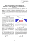 ELECTROMAGNETIC INERTIAL GENERATOR FOR VIBRATIONAL ENERGY SCAVENGING COMPATIBLE WITH Si TECHNOLOGY A. Pérez-Rodríguez1, C. Serre1, N. Fondevilla1, J.R. Morante1, J. Montserrat2, J. Esteve2 EME/CEMIC/CERMAE – Departament d’Electrònica, Universitat de Barcelona, Martí i Franquès 1, 08028 Barcelona, Spain. 2 Centre Nacional de Microelectrònica CNM-CSIC, Campus UAB, 08193 Bellaterra, Spain 1 Abstract: This work reports the design and optimisation of an electromagnetic (em) vibrational generator for energy scavenging applications, compatible with Si technology. The device has a simplified structure formed by a fixed coil and a movable magnet onto a resonant vibrational membrane. The design is based on the calculation of the em damping coefficient [1], performed by Finite elements analysis (ANSYS). The results obtained point out the compatibility of this simple device structure with the generation of powers ranging between some µW’s to some hundreds of mW, for fres in the range between 10 Hz and 5 kHz. Keywords: Power microgenerators, electromagnetic inertial generators, vibrational energy scavenging 1.- INTRODUCTION Planar coil The autonomy requirements of modern microsystems for wearable, ubiquitous and self-powered applications have raised an increasing demand for the development of power supplies suitable for their integration with next the generation of micro and nanosensors. For these applications, an interesting option is the use of inertial microgenerators for energy scavenging from the vibration in the environment [1,2]. These devices constitute perpetual energy sources without the need for refilling, thus being well suited for abandoned sensors. This work describes the design and optimisation of an electromagnetic inertial microgenerator. This device constitutes an inertial velocity damped resonator, which is suitable for harvesting of mechanical energy from vibrations induced by operating machines and engines. These vibrations are characterised by a well defined frequency and low displacement amplitudes [3]. Adjusting the resonant frequency of the system to that of the vibrations allows to amplify these low amplitude displacements. For these applications, the use of an electromagnetic device has the potential advantages of a high level of compatibility with Si Microsystem technology, as well as the possibility of relatively high electromechanical coupling with simple designs. The device proposed in this work is formed by a fixed coil and a movable magnet mounted on a resonant structure. Figure 1 shows a schematic representation of this design. Assuming a resistive load, the device behaves as an inertial resonator if the inductive component of the coil impedance is much lower than the resistance in the circuit. In this case, the power generated at resonant conditions is given by [1]: Pres = ζ g Yo2 ω n3 m 4 (ζ g + ζ p ) 2 rnucl z rmag h Membrane Figure 1. Schematics cross section of the device where Yo is the amplitude of the vibrations applied to the device and ωn is the natural frequency of the resonator with inertial mass m. ζg is the normalised electromagnetic damping factor: ζg = 2 1 dφ 2 m ( RC + RL )ω n dz (2) with Rc and RL the coil series and load resistances, respectively. (dφ/dz) is the magnetic flux rate through the coil due to the magnet displacement. This model also takes into account the existence of a parasitic damping ζp, related to air resistance and hysteresis loss effects in the mechanical resonator. From (2), it can be derived that one condition leading to a maximum value of Pres, is ζg = ζp. However, the power dissipated in the coil series resistance determines that only a fraction of the power given by (1), PL, is available at the load resistance. Deriving this power in relation to RL it is possible to determine the optimum value of RL which maximizes PL: (1) RLopt = 57 2 dφ + RC 2 m ω n ζ p dz 1 (3) which gives the following expression for the maximum power dissipated at the resistive load: PLopt ζc Yo2 ω n3 m = 16 ζ p ζ c + ζ p (z), and of the dependence of on rmag has been performed for both circular and square shaped configurations, and assuming the same value of Lext for the diameter of the outer turn. The results indicate that i) (dφ/dz) increases with the magnet size, and the optimum case is obtained when the magnet fills the whole nucleus area and ii) that there is a maximum value of the flux rate when the upper surface of the magnet is located in the plane of the coil. This corresponds to z ~ h/2 in fig.1. Finally, the analysis of the flux rate as a function of the number of turns in the coil is shown in Fig. 2. The value for which the highest flux rate is achieved corresponds to the coils with 29 turns and a nucleus of 8x8 mm2. This figure also shows the existence of a higher flux rate for the square shaped coil. This has lead to the selection of this design for the implementation of the device prototype. ( 4) where ζc corresponds to the electromagnetic damping obtained with RL=0. This function increases monotonously with ζc which, in turn, is inversely proportional to RC. According to this, the maximum power, obtained when Rc→0, is PLmax = [(Yo2 ωn3 m)/(16 ζp)]. Then, the optimum design in terms of the generated power corresponds to a minimum value of both RC and ζp. On the other hand, the generated voltage is given by the time derivative of the magnetic flux. At resonant conditions, the voltage amplitude at the load is given by: Yo ω n RL dφ ( RC + R L ) 2 (ζ g + ζ p ) dz (5) circular (dφ /dz)max (Wb/m) Vo = In this case, the voltage increases with the value of RL, and tends asymptotically to Vomáx: Vo max = Yo ω n dφ 2 ζ p dz ( 6) This implies that, in relation to RL, the conditions leading to a maximum voltage (RLÆ∞) do not agree with those corresponding to the maximum output power (RL = RLopt). In this last case, the amplitude of the generated voltage is half the value of the maximum voltage g